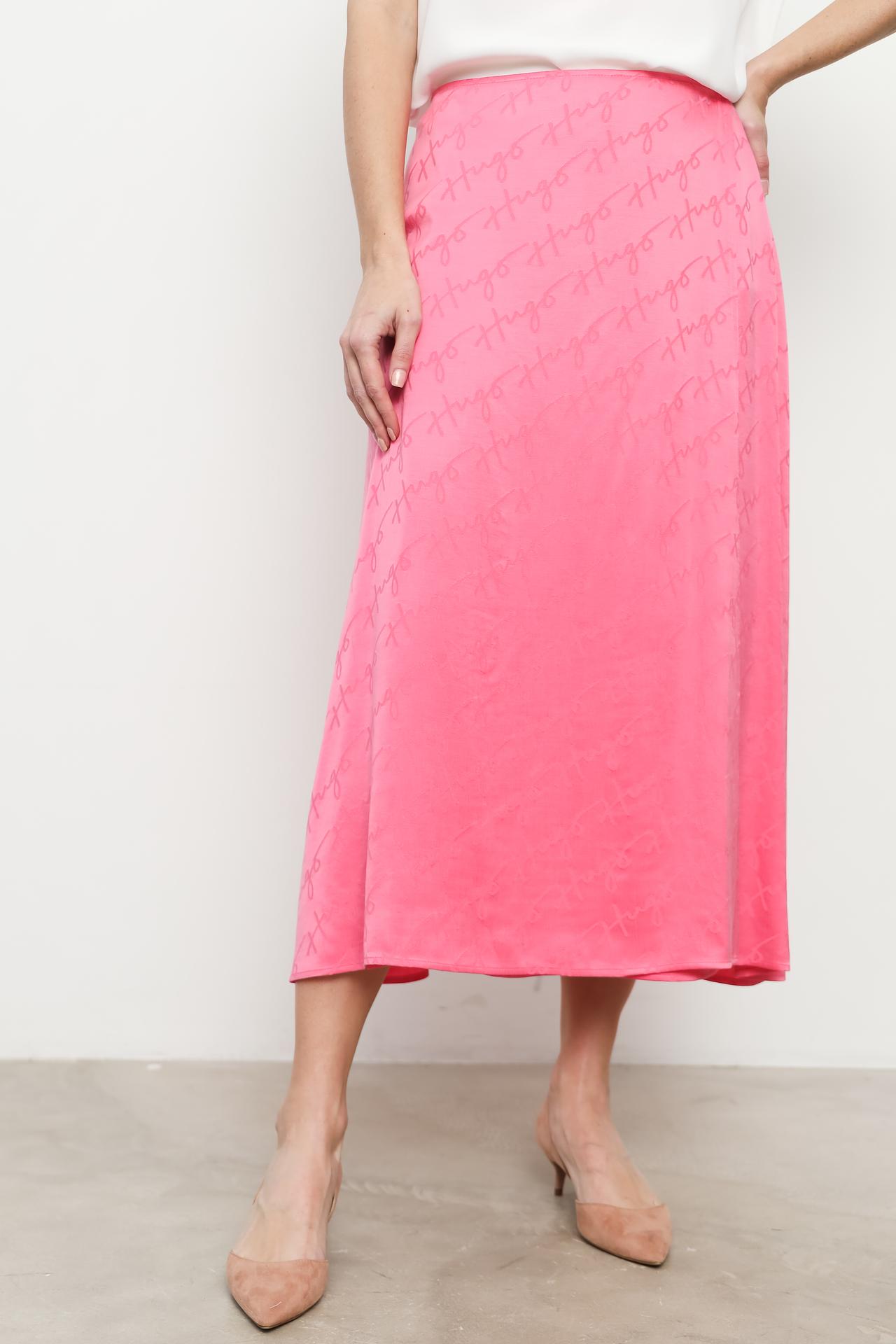 Очаровательная юбка Hugo миди длины, выполненная из ткани премиального качества с составом 40% вискоза и 60% купро. Эта модель сочетает в себе элегантность и комфорт, идеально подходя для создания женственных образов. Нежный розовый оттенок и изящный принт добавляют юбке неповторимый шарм, делая её прекрасным дополнением к вашему гардеробу.