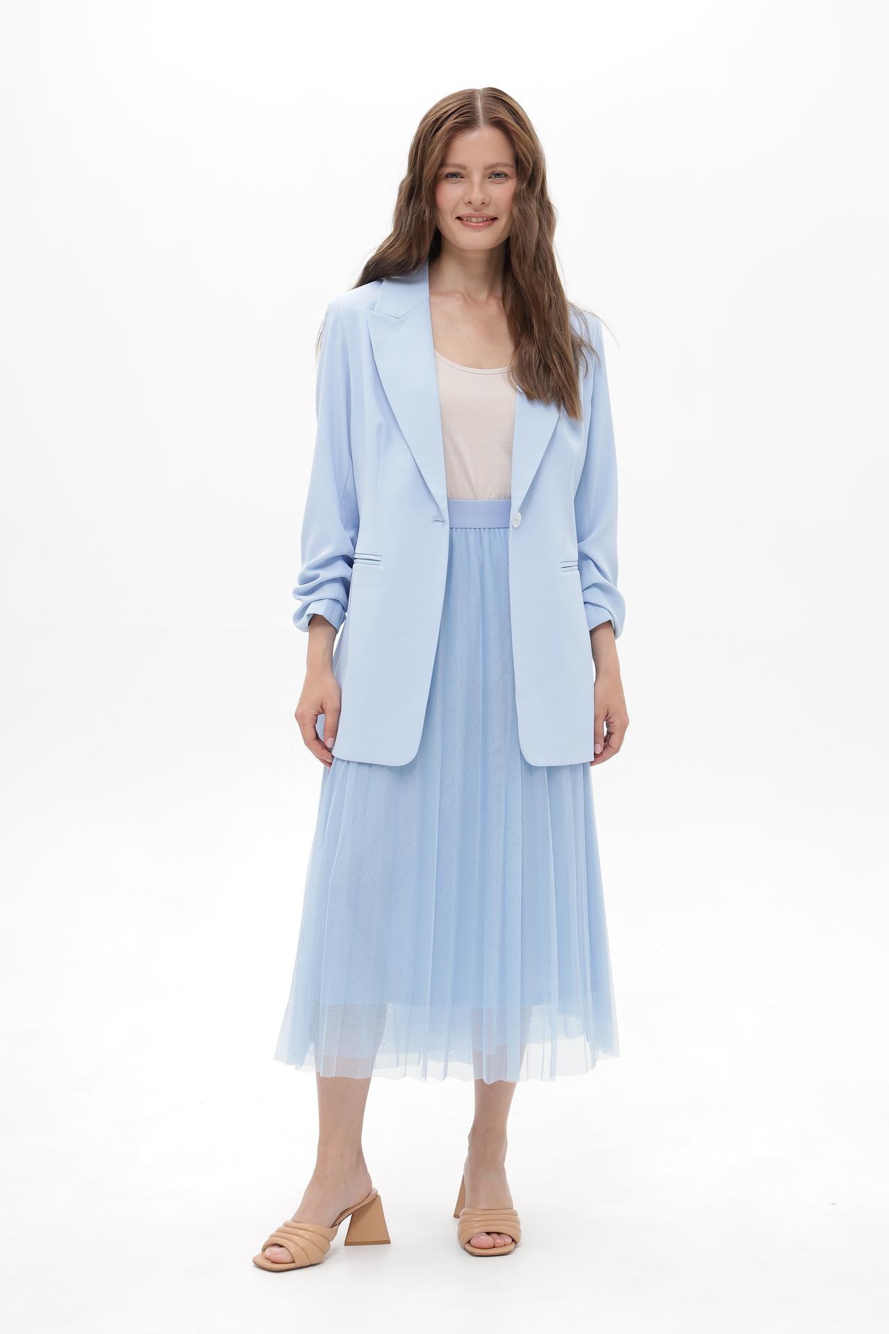 - Дизайн: Плиссировка придает юбке особую структуру и объем, создавая эффектный внешний вид. Длина миди делает модель универсальной и подходящей для любого возраста.
