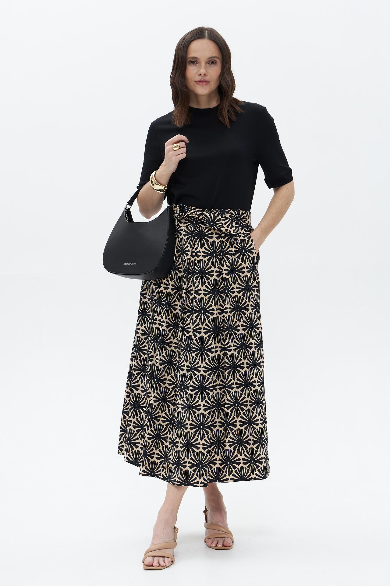 Элегантная юбка миди от MORE and MORE с изысканным узором станет украшением вашего гардероба. Изготовленная из высококачественной ткани с содержанием 97% хлопка и 3% эластана, юбка обеспечивает комфорт и идеальную посадку. Прекрасный выбор для создания женственных и стильных образов. Эта юбка отлично подойдет для любого случая, от повседневных прогулок до особых мероприятий.