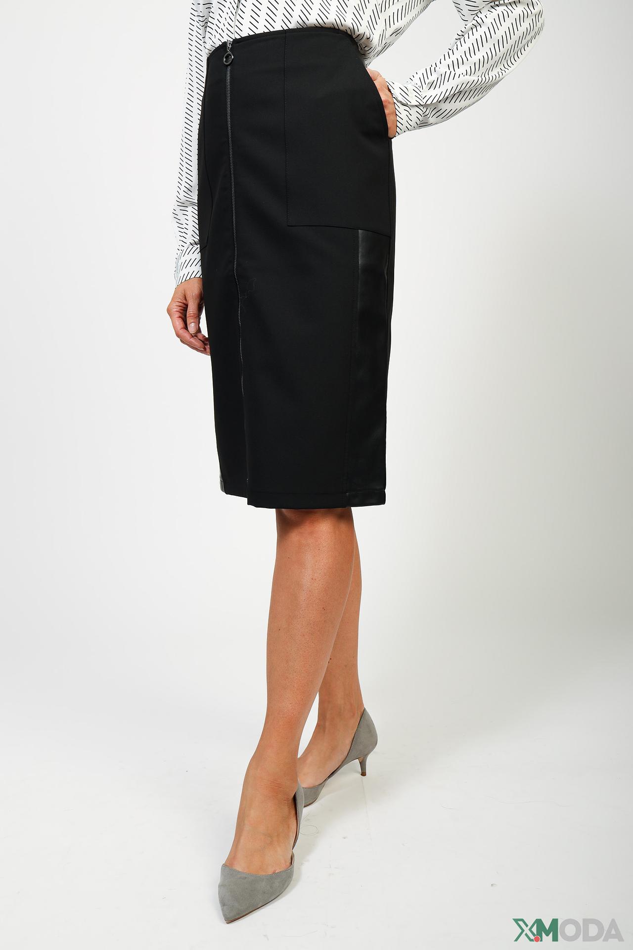 Юбка изготовлена из качественной смесовой ткани, включающей вискозу, эластан, полиэстер и переработанный полиэстер. Такое сочетание материалов гарантирует комфорт при носке, отличную посадку по фигуре и долговечность изделия. Современный дизайн подчёркнут контрастной молнией спереди, которая добавляет нотку актуальности и функциональности.