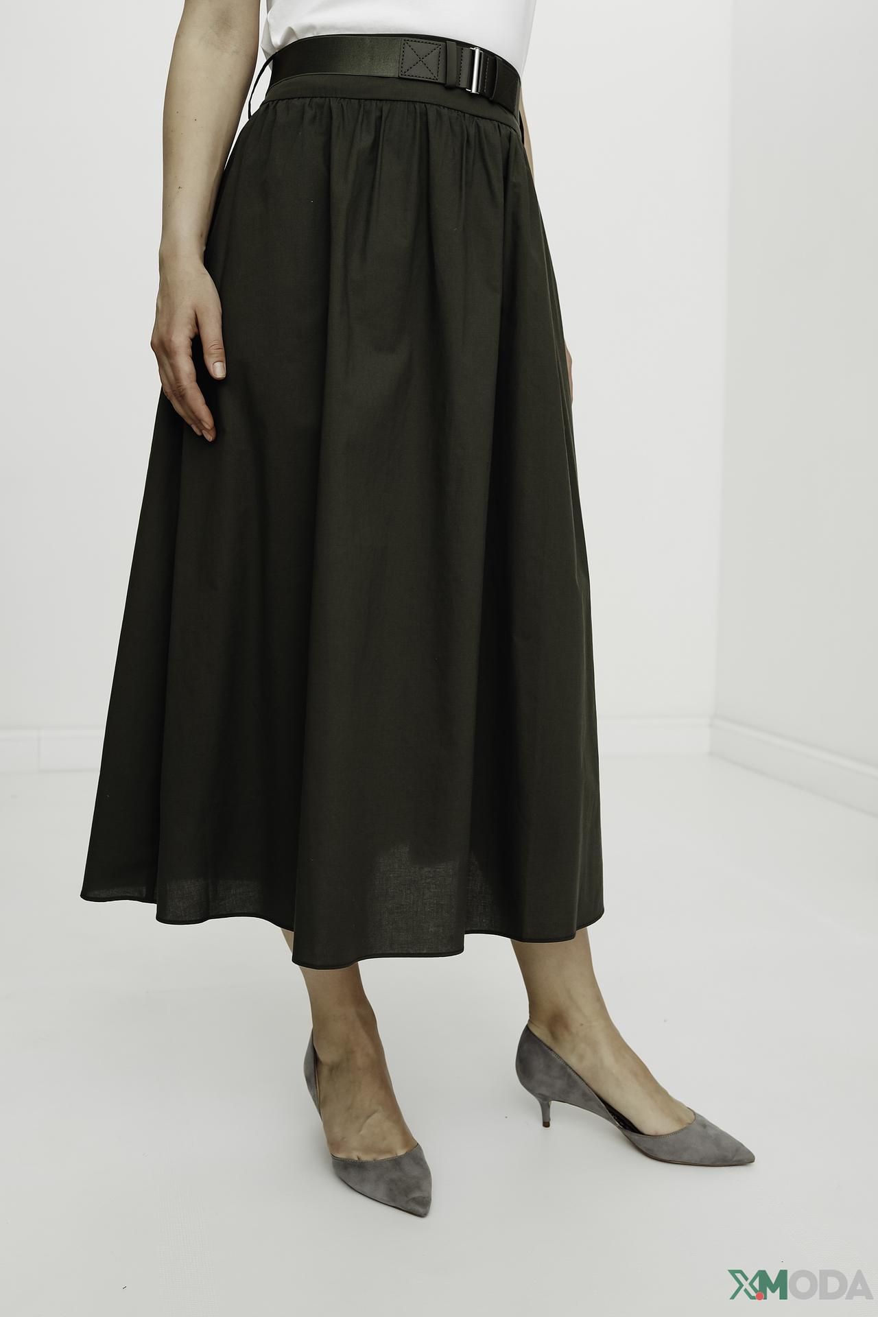 - Элегантный силуэт: А-образный крой миди длины создает универсальный и всегда актуальный образ. Свободный подол дарит свободу движений и струящийся эффект.