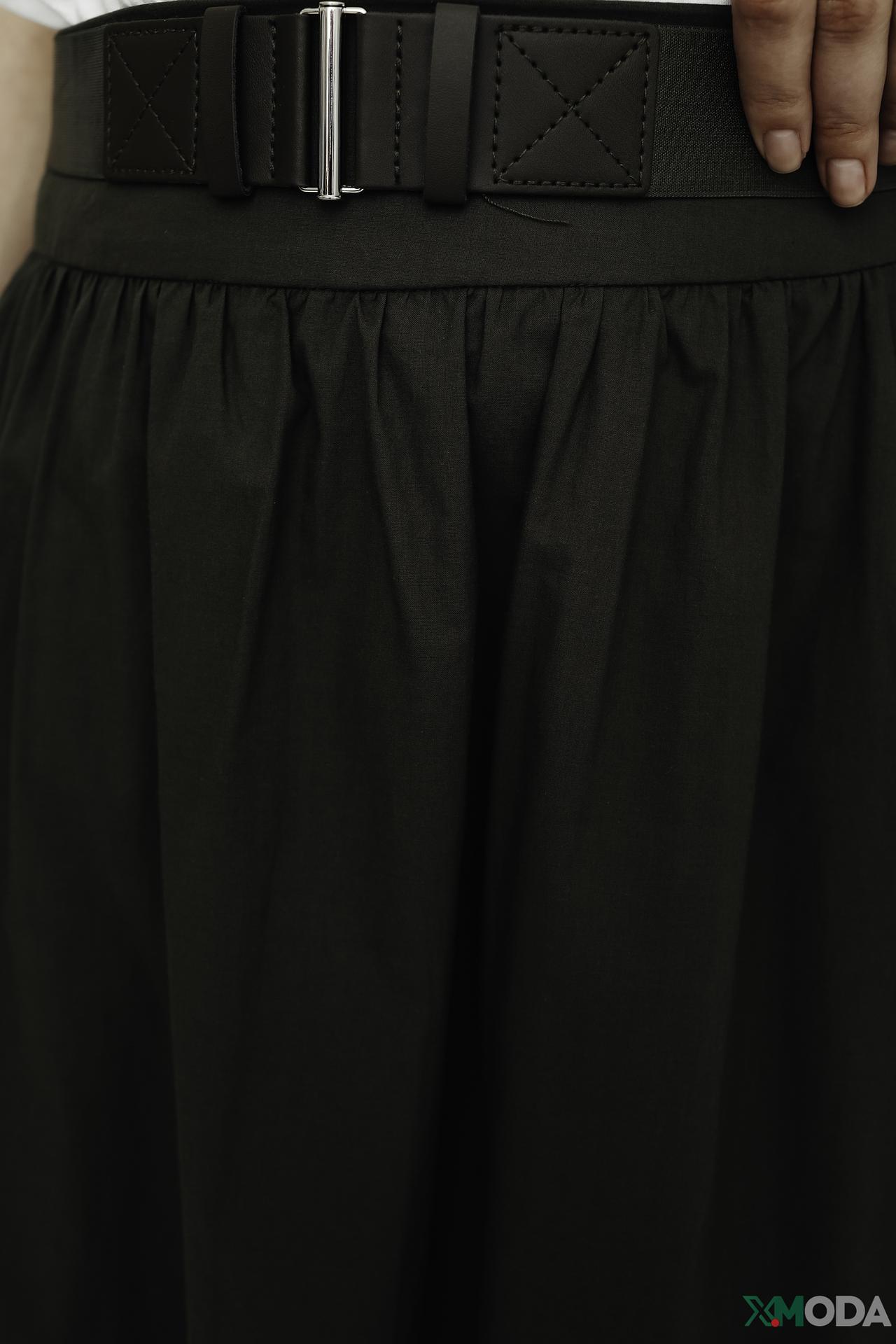 - Детали дизайна: Пояс в тон с металлической пряжкой выгодно подчеркивает талию, добавляя акцент и завершенность образу. Сборки на поясе придают дополнительный объем и изысканность.