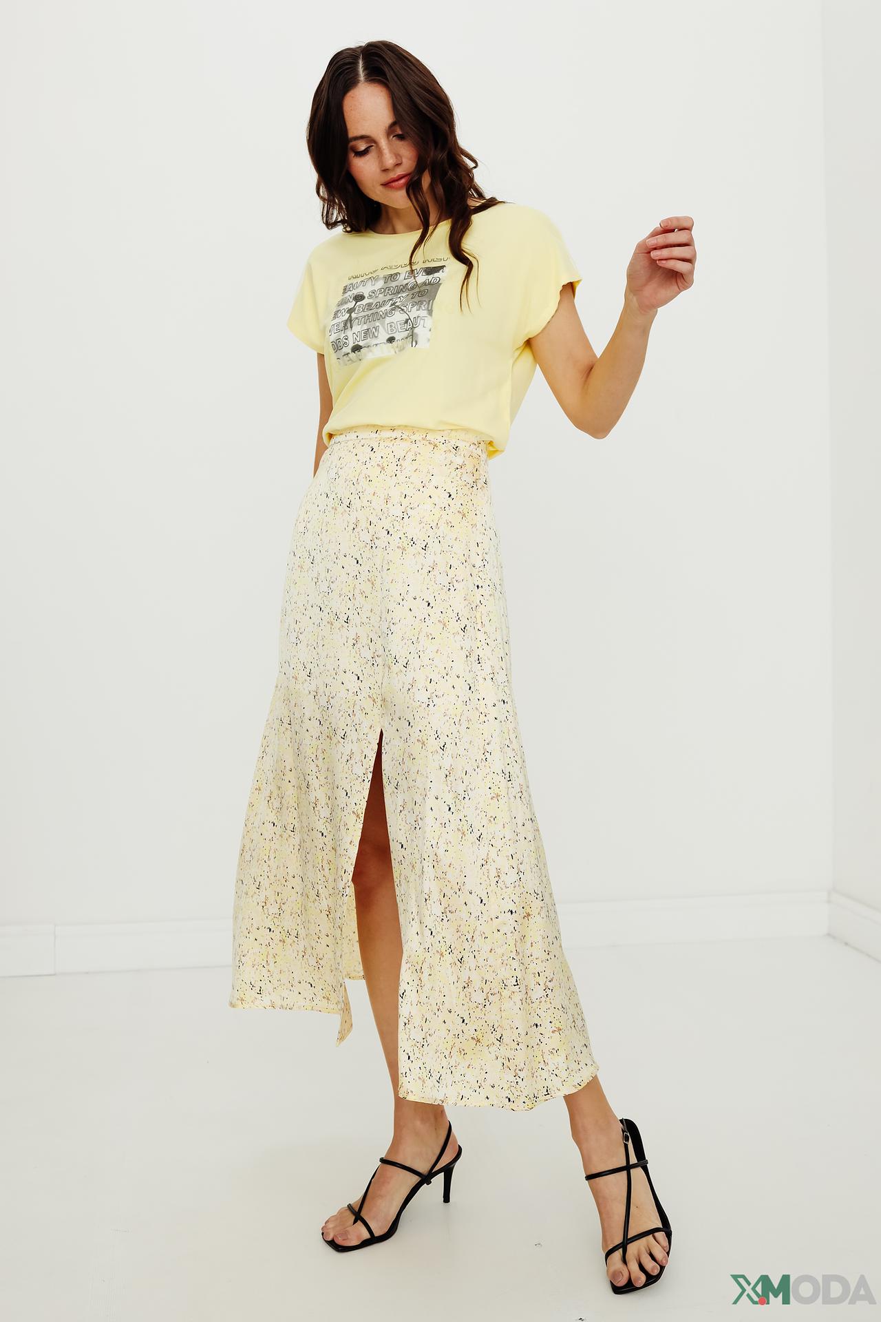 - Дизайн: Юбка с цветочным принтом и разрезом добавляет женственности и изысканности.