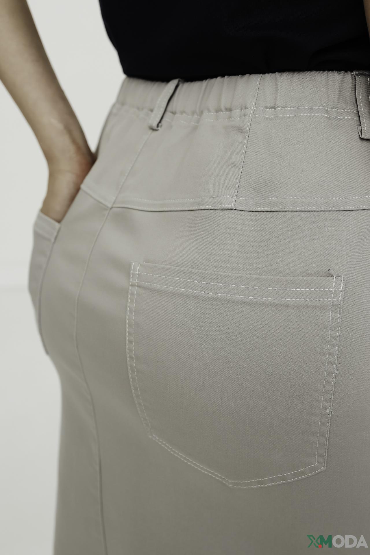 - Универсальность: Модель легко сочетается с различными блузками, топами и жакетами, позволяя создавать разнообразные стильные комплекты. Нейтральный серый цвет гармонично вписывается в любой цветовой гардероб.