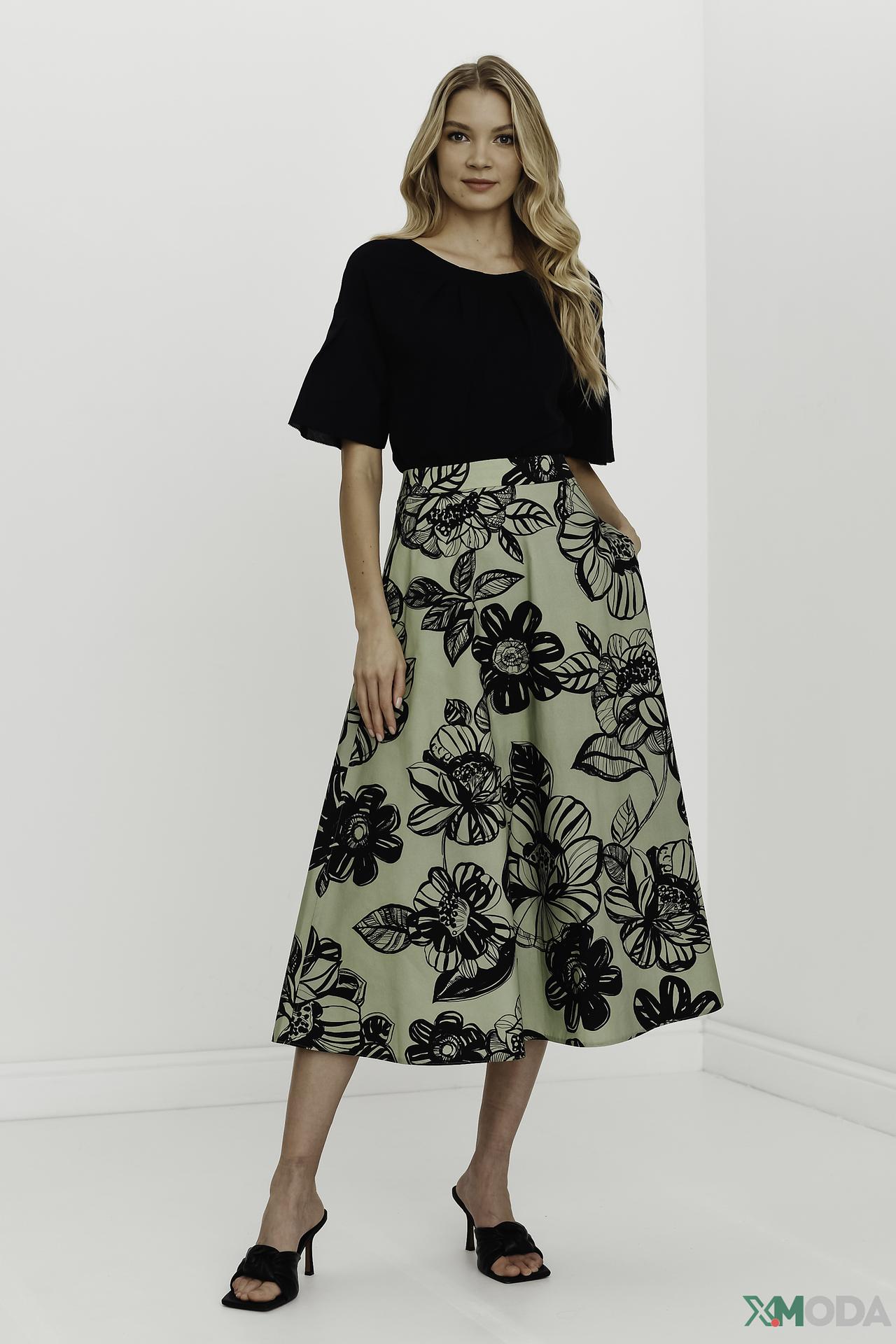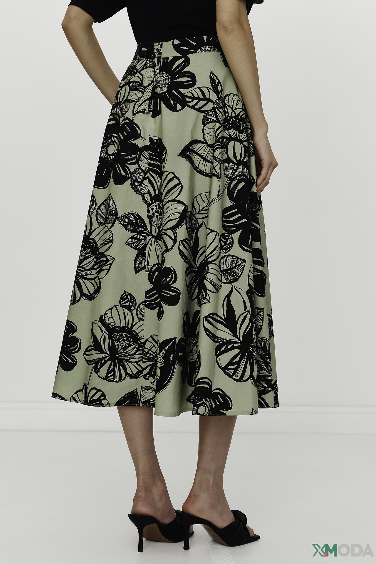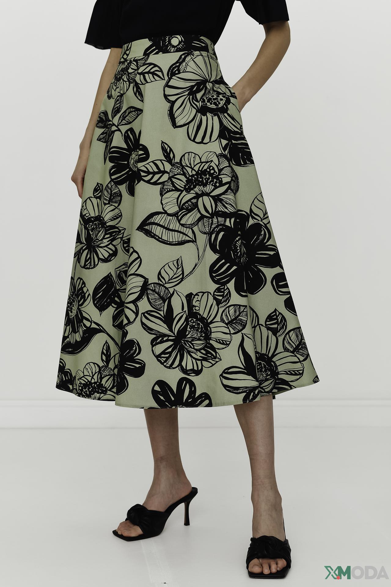 - Элегантный дизайн: Силуэт трапеция и длина миди делают эту юбку универсальной, подходящей для различных типов фигур, а эксклюзивный цветочный принт придает образу неповторимую изысканность.