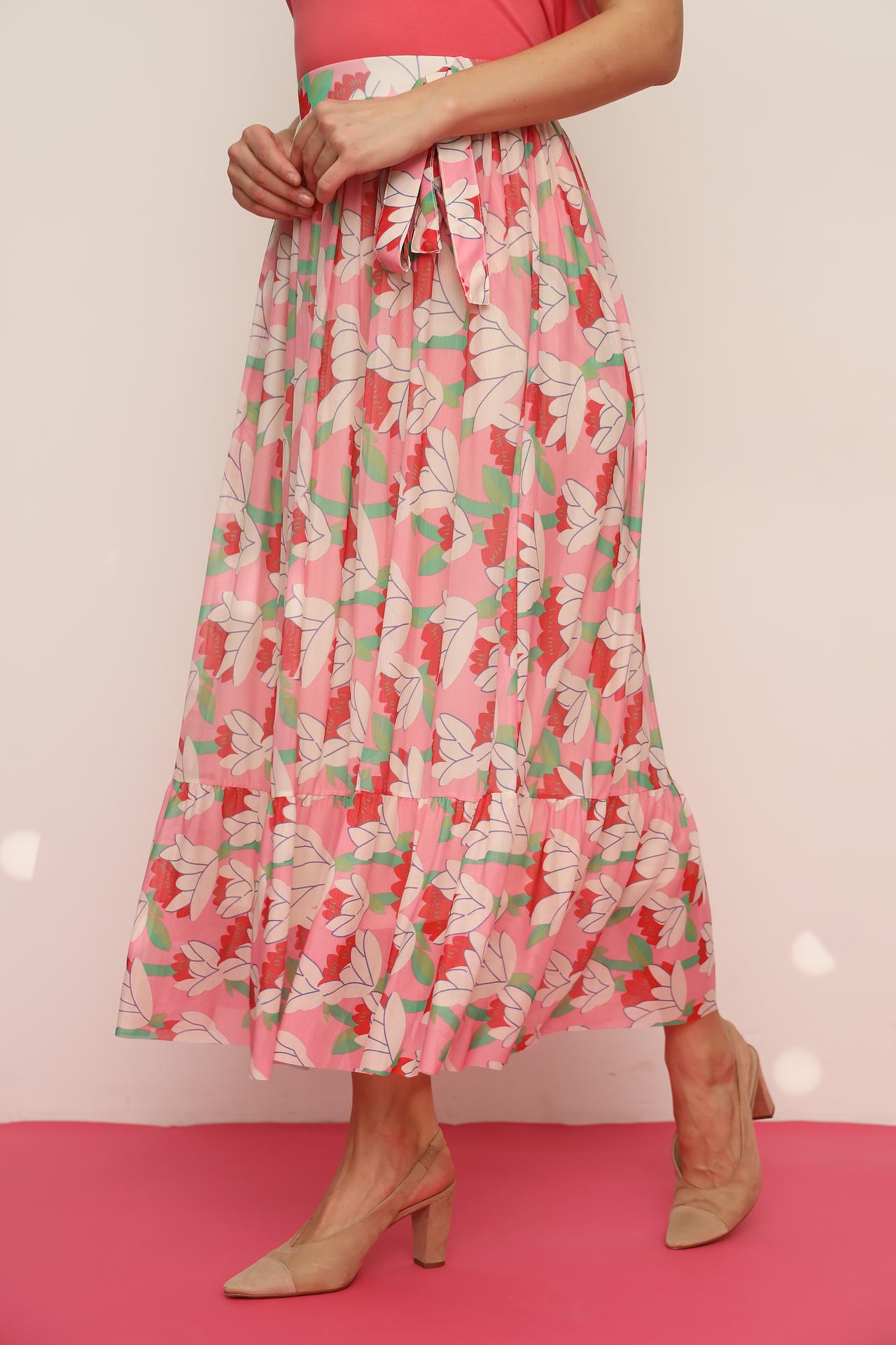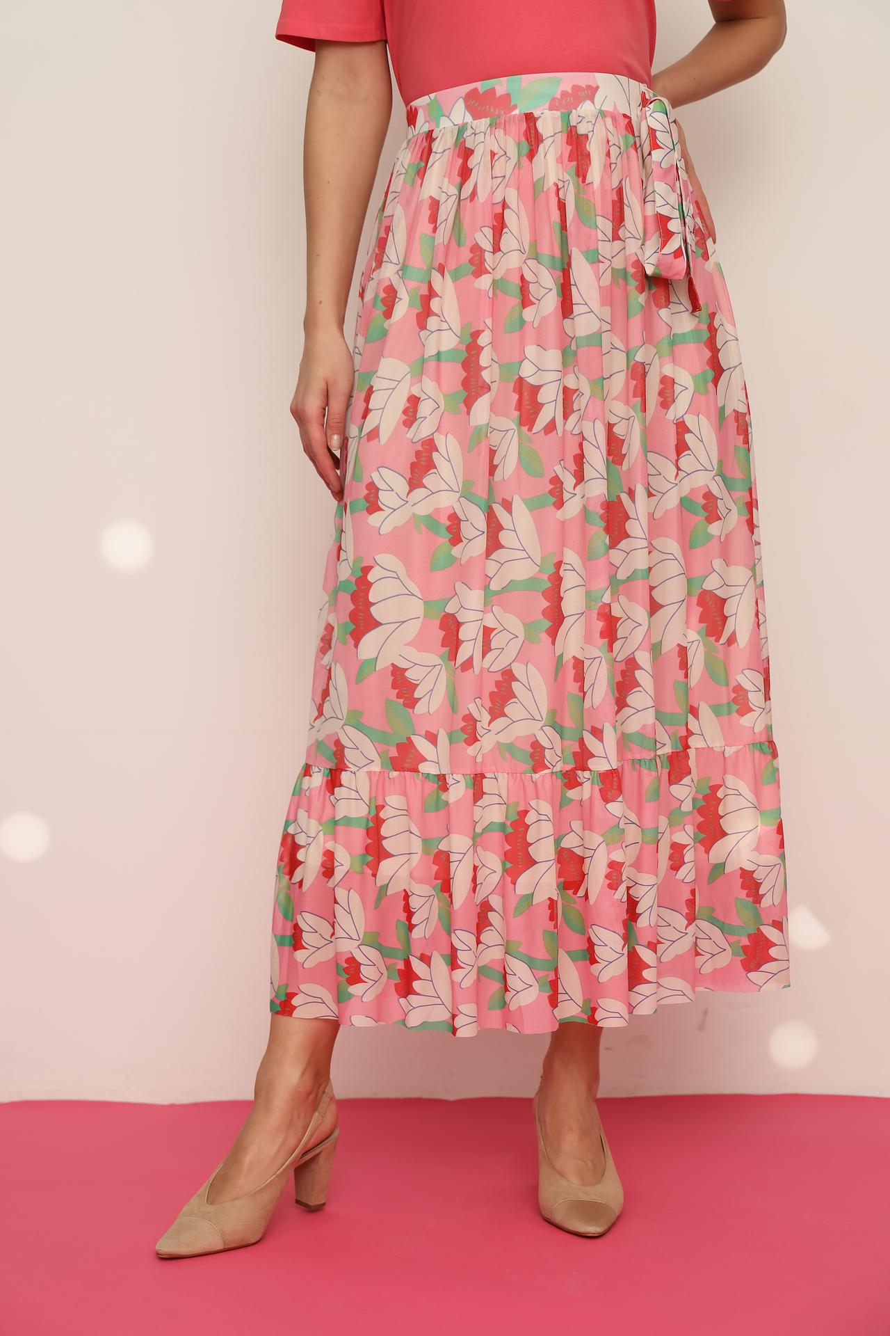 Юбка Rich and Royal розовая с цветочным принтом и поясом