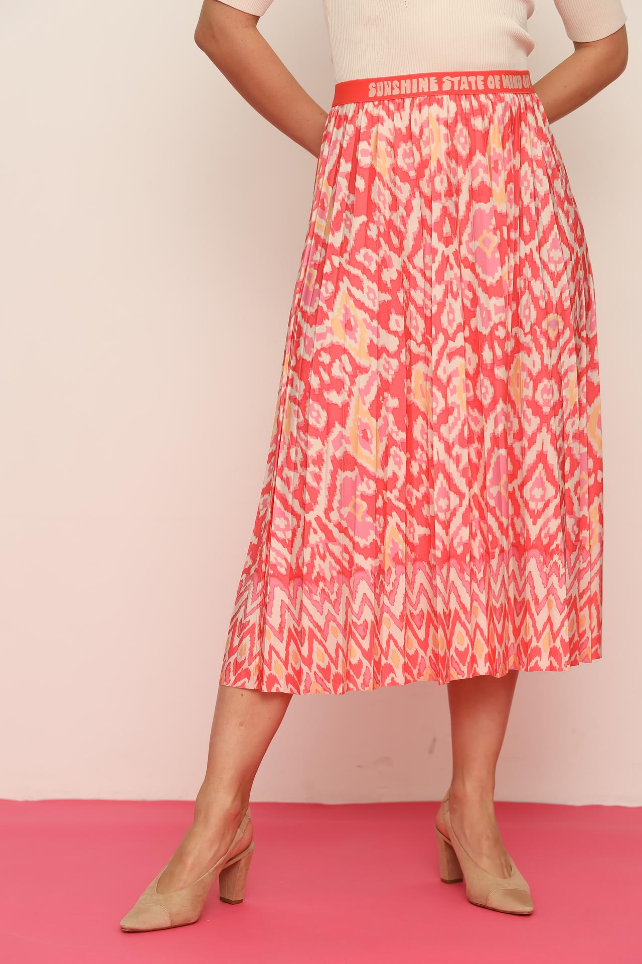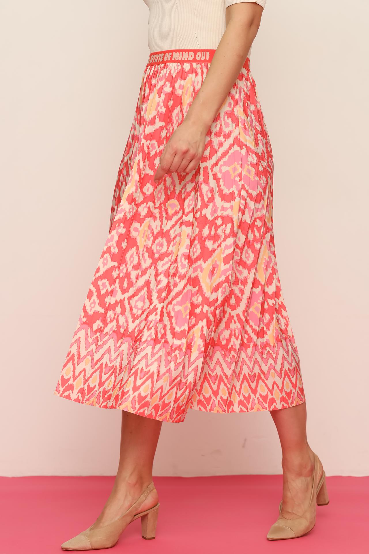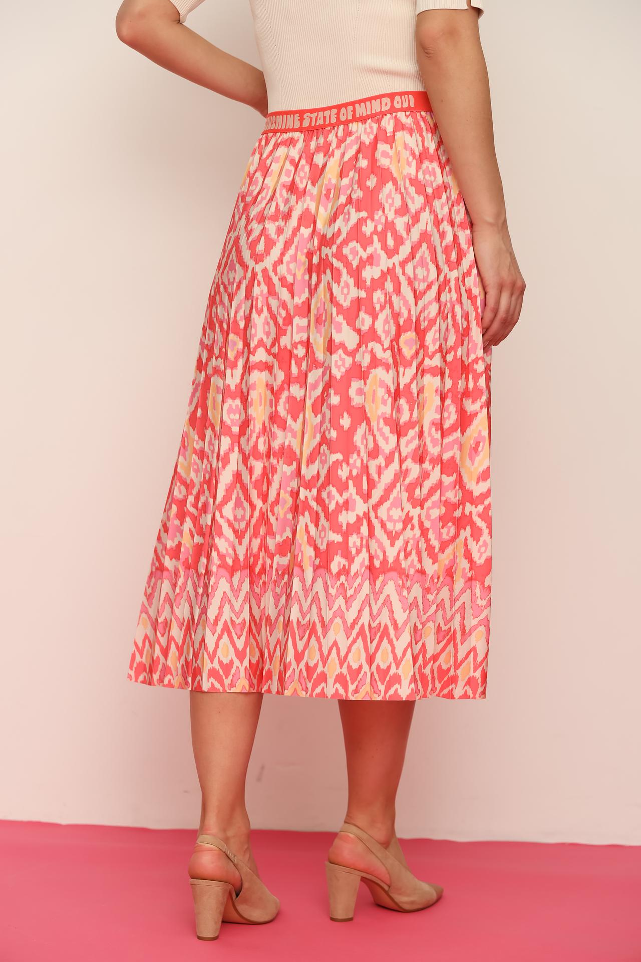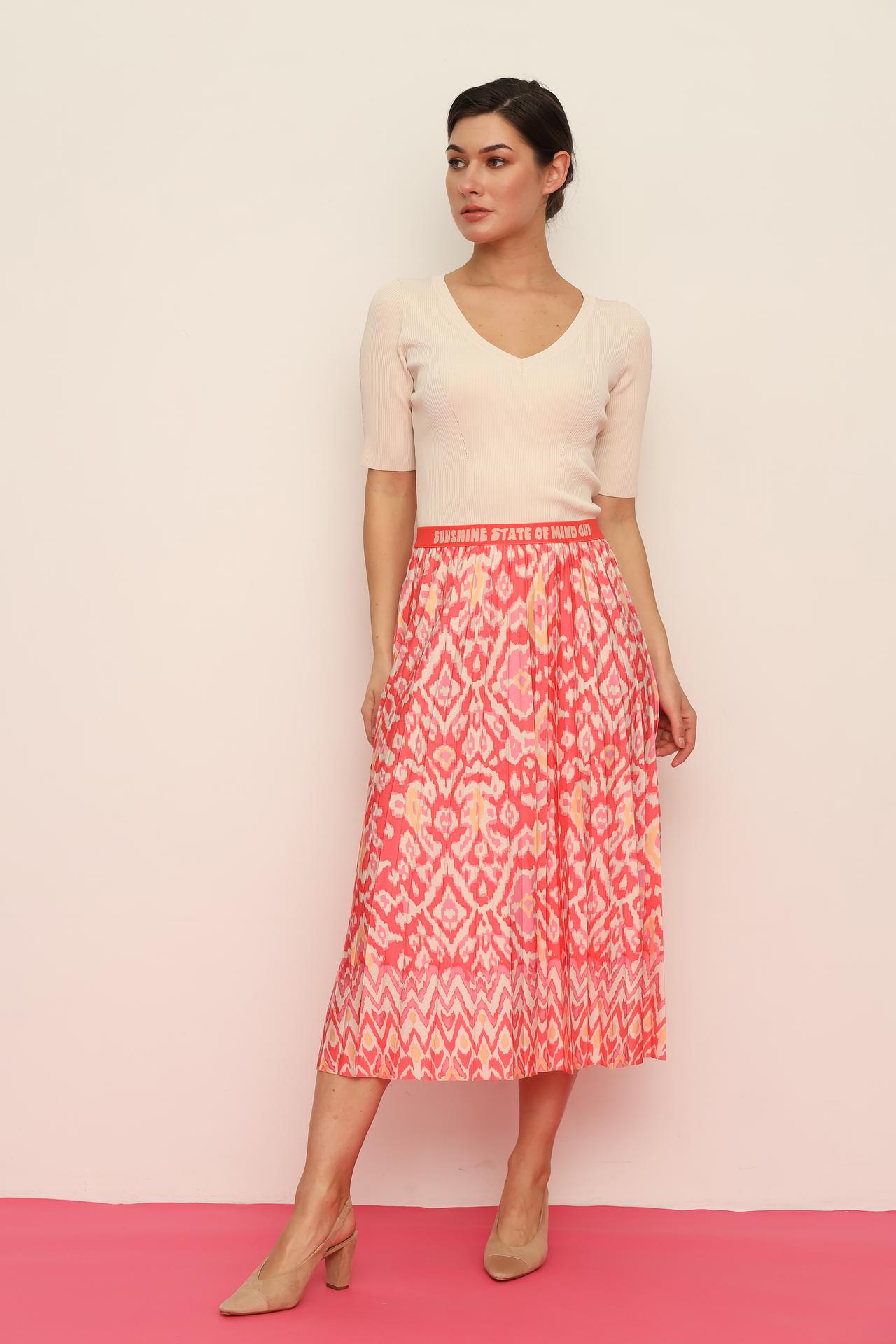 Плиссированная юбка Oui миди кораллового цвета с принтом