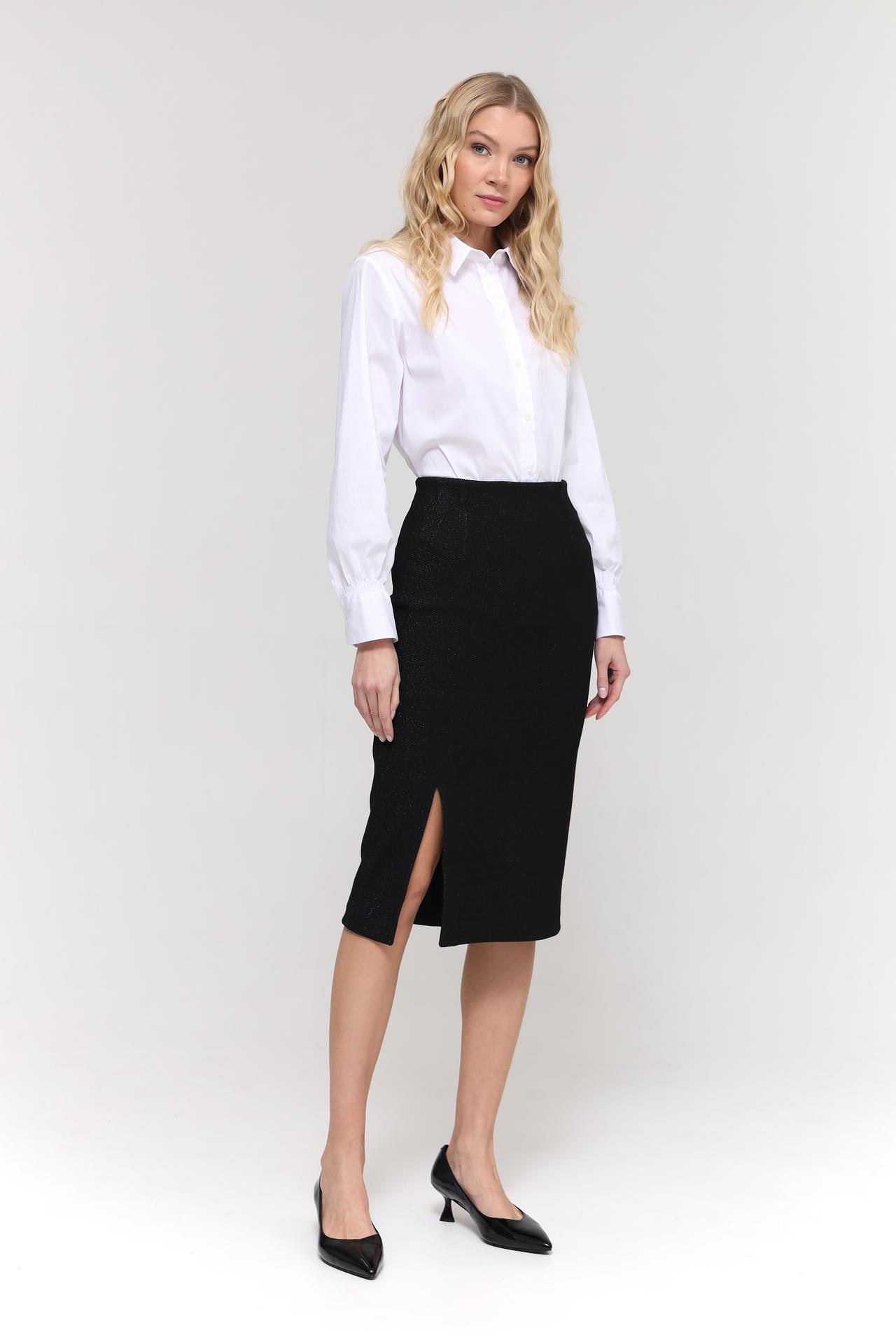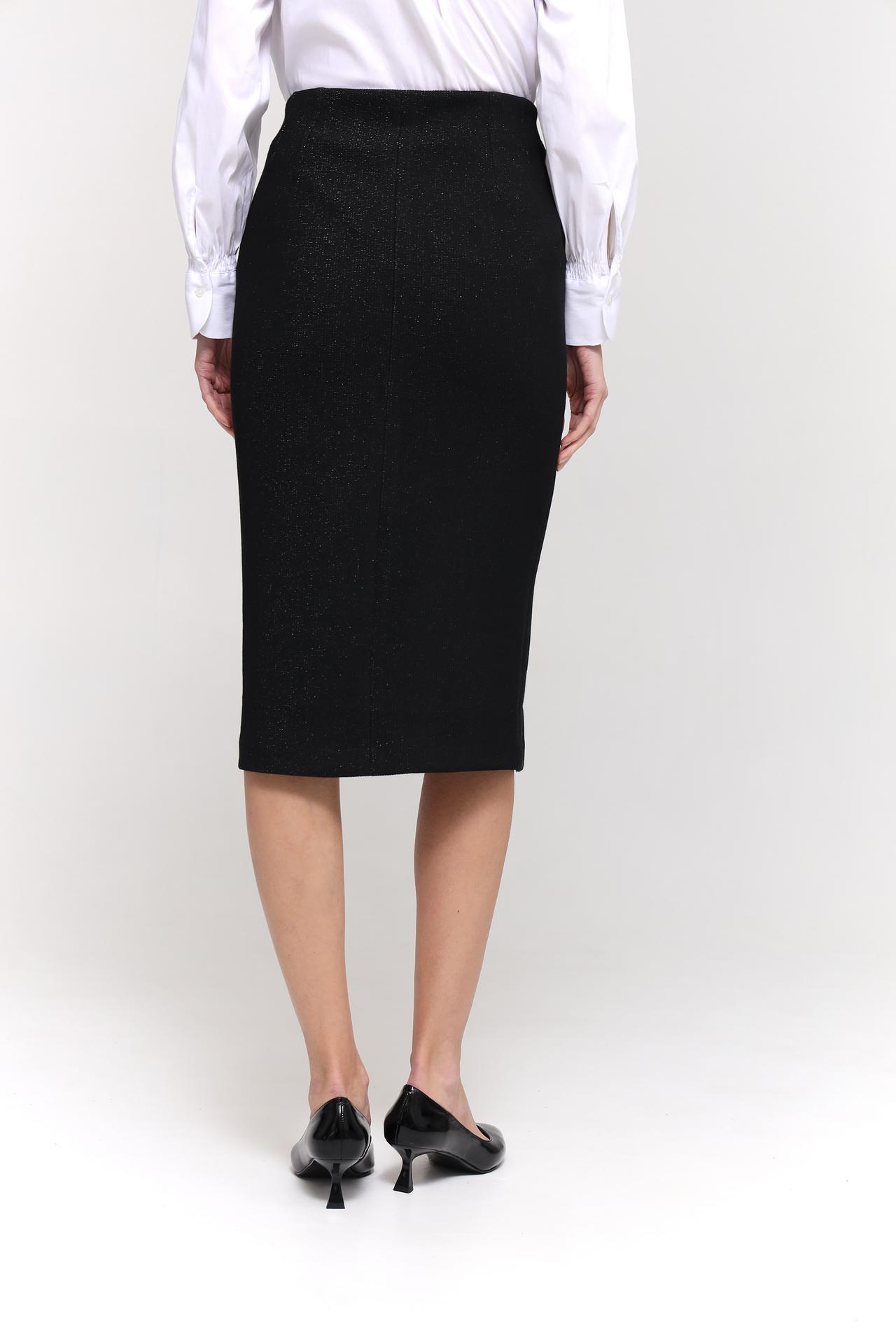 - Дизайн: Юбка прямого кроя длиной до колена с элегантным разрезом спереди. Классический крой подчеркивает достоинства фигуры и создает утонченный силуэт.