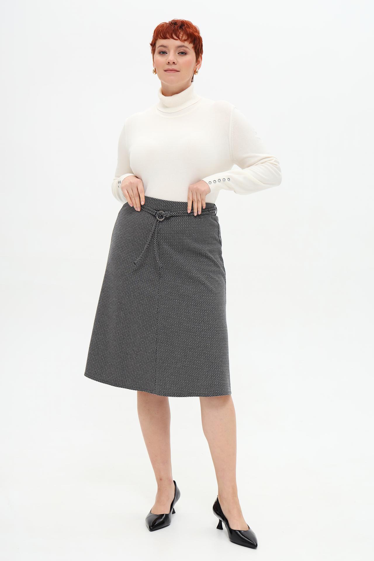 Юбка Frank Walder серая в мелкий узор с поясом
