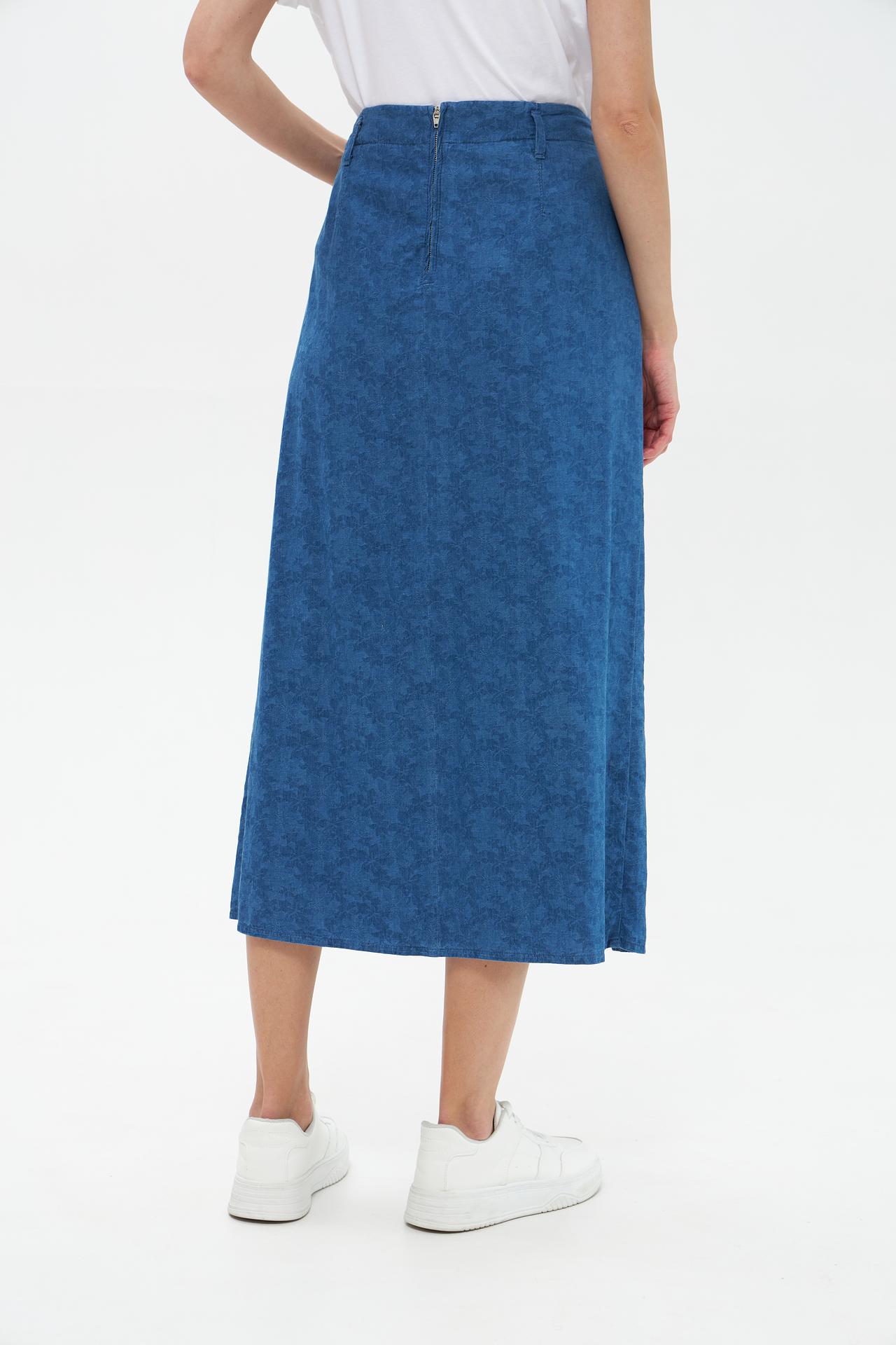 - Универсальный дизайн. Насыщенный синий цвет с тонким узором легко интегрируется в различные стили, от кэжуал до более формального. Эта модная женская юбка станет основой для множества ансамблей.