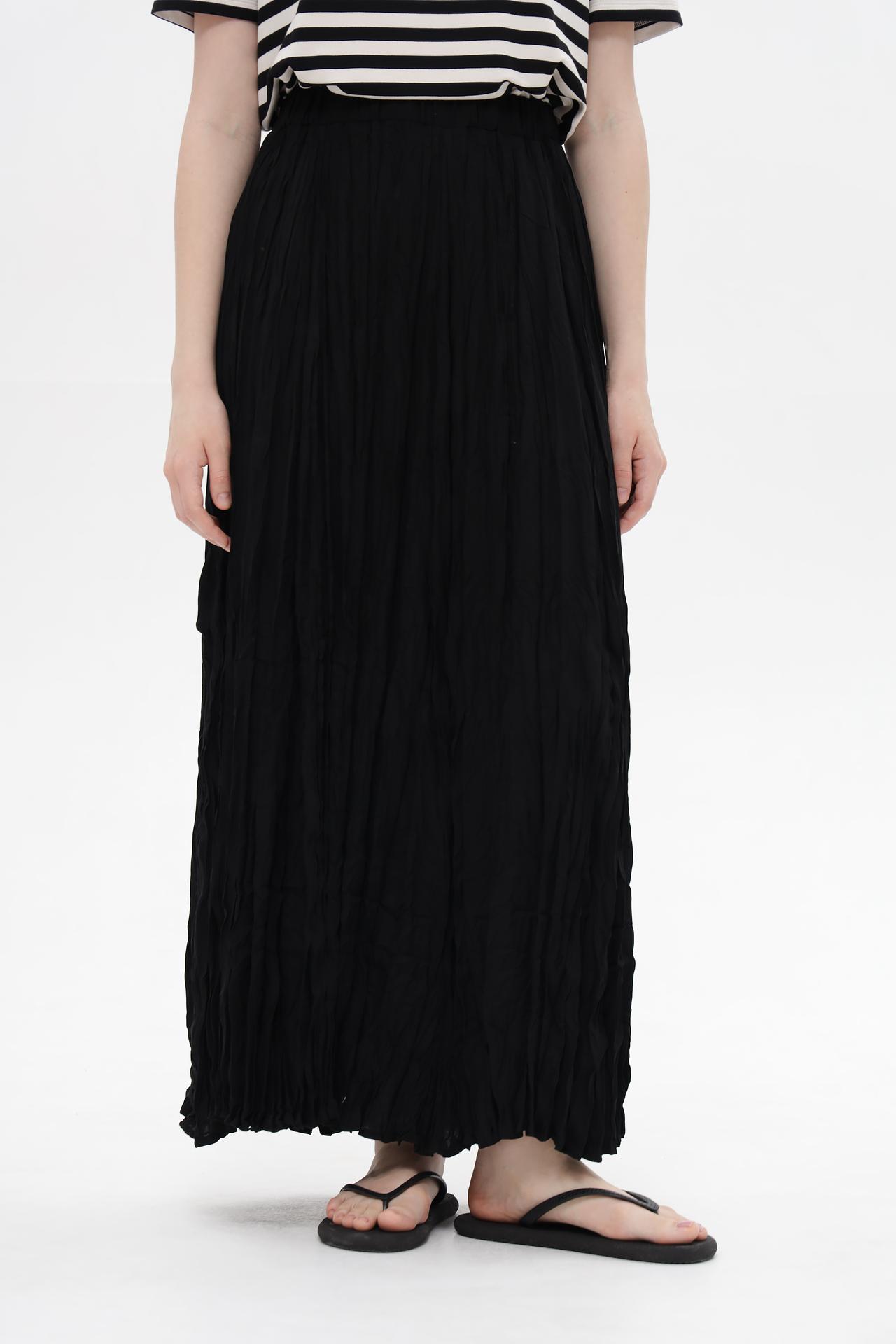 Элегантная макси-юбка Monari выполнена из 100% вискозы, что обеспечивает исключительный комфорт и приятные тактильные ощущения. Модель чёрного цвета отличается фактурной поверхностью, создающей эффект плиссировки, который придает изделию динамичность и оригинальность. Расклешенный крой юбки дарит свободу движений и визуально удлиняет силуэт, делая образ более утонченным. Такая юбка станет универсальным элементом гардероба, легко сочетаясь как с повседневными, так и с более нарядными топами и блузами. Идеальный выбор для создания стильных летних образов.