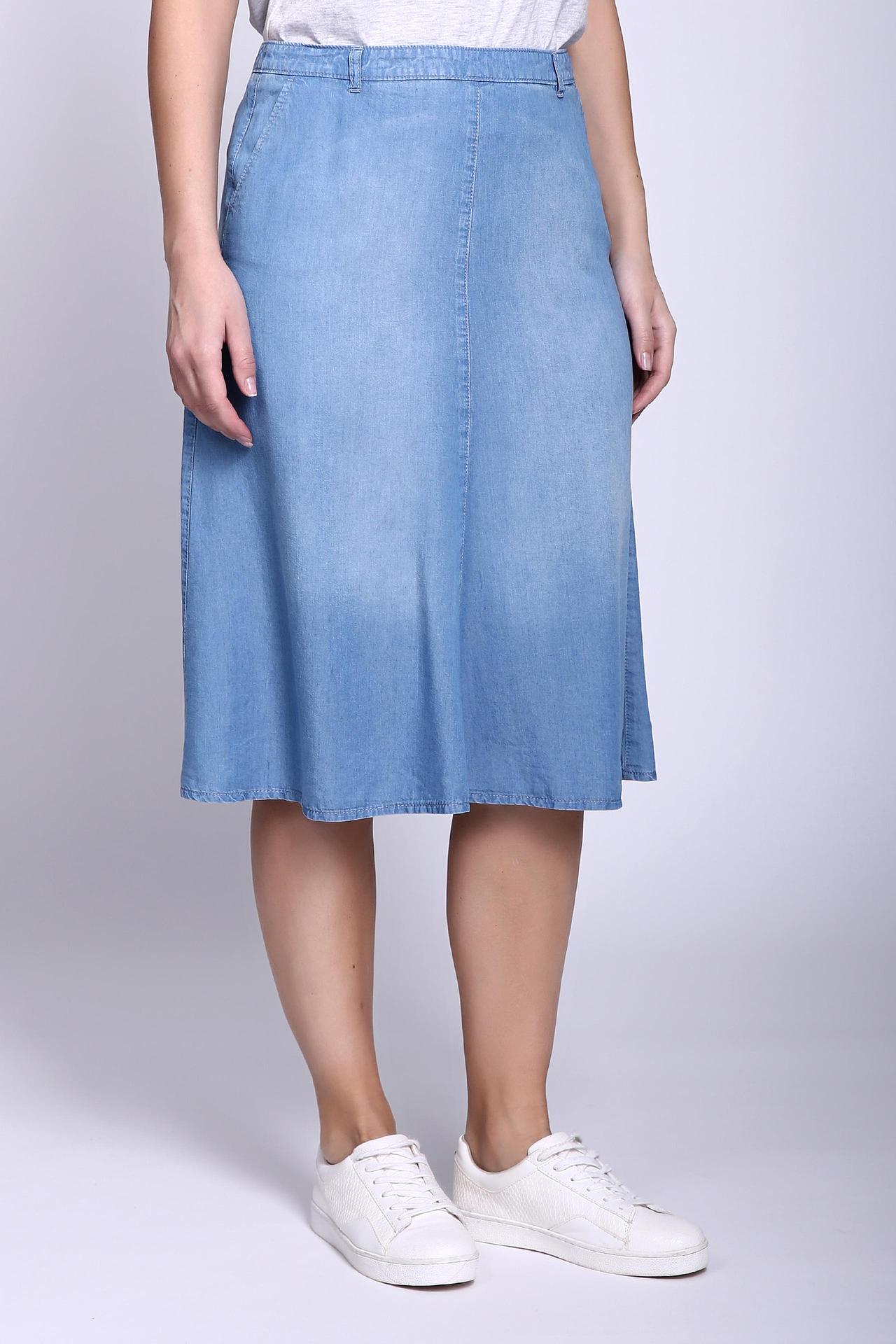 Юбка голубого цвета фирмы Gerry Weber. Ткань состоит из 100% лиоцела. Модель выполнена А - силуэтом. Изделие дополнено поясом со шлевками для ремня, застежка молния, расклешенными клиньями, вытачками. Юбка подойдет высоким женщинам. Удобна и женственная подойдет для различных мероприятий.