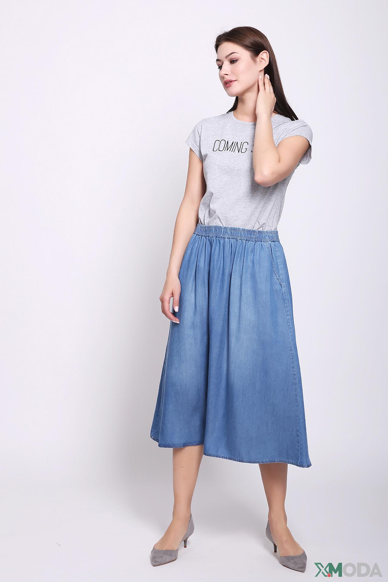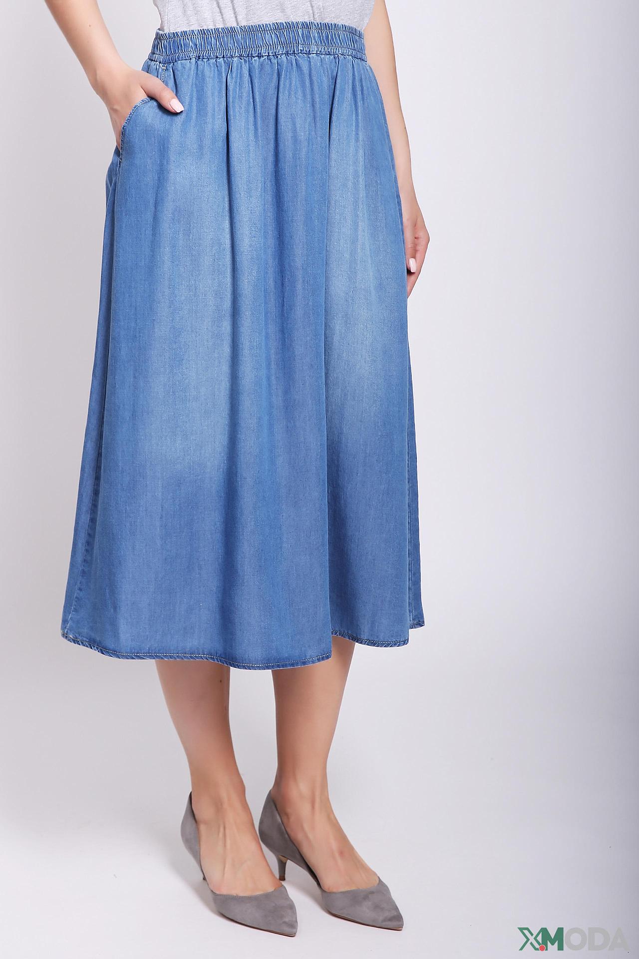 Юбка женская синего цвета бренда Gerry Weber. Модель выполнена расклешённым фасоном. Изделие дополнено пришивным поясом с эластичной лентой, боковыми карманами. Длина юбки ниже колен. Такая модель подойдет высоким женщинам. Ткань состоит из 100% тенсель. Сочетать можно с различными блузами, футболками, пуловерами.