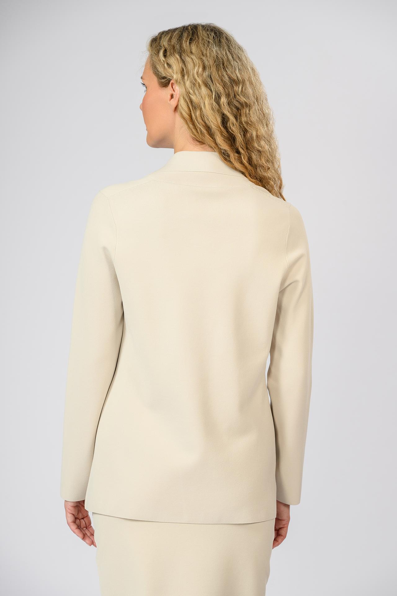 Жакет изготовлен из высококачественной смеси 86% вискозы и 14% полиамида, что обеспечивает превосходную посадку, приятные тактильные ощущения и долговечность изделия. Материал сохраняет форму и цвет, гарантируя комфорт на протяжении всего дня.