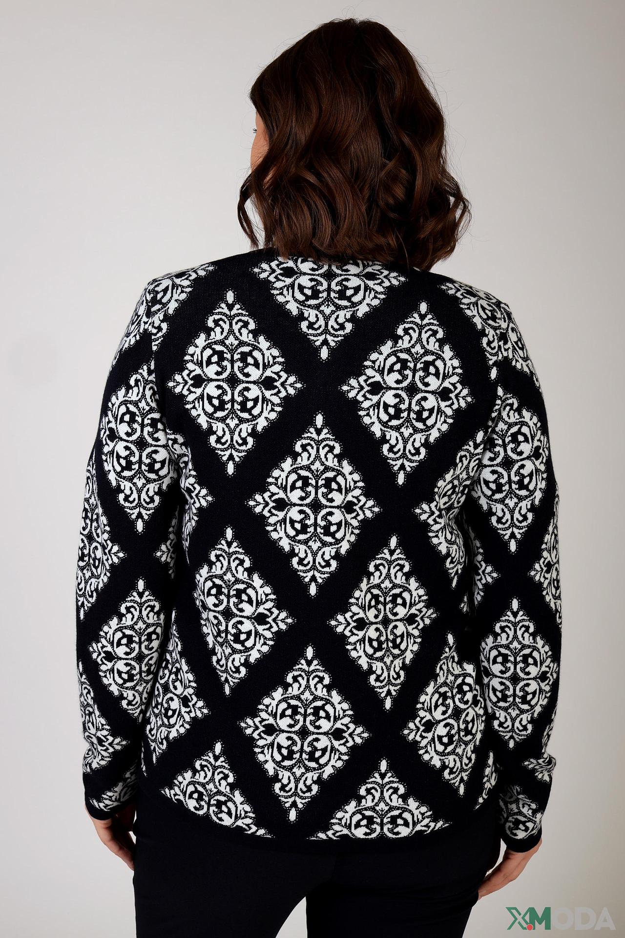 - Дизайн: Жакет с круглым вырезом и без застежки, что делает его универсальным элементом одежды. Оригинальный узор в виде ромбов с цветочным орнаментом подчеркивает ваш вкус.