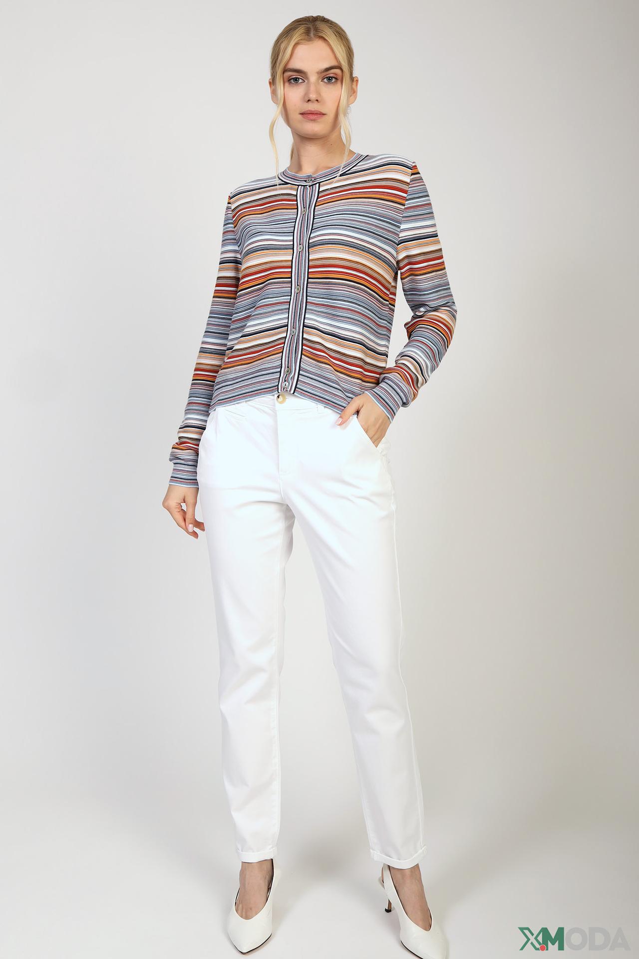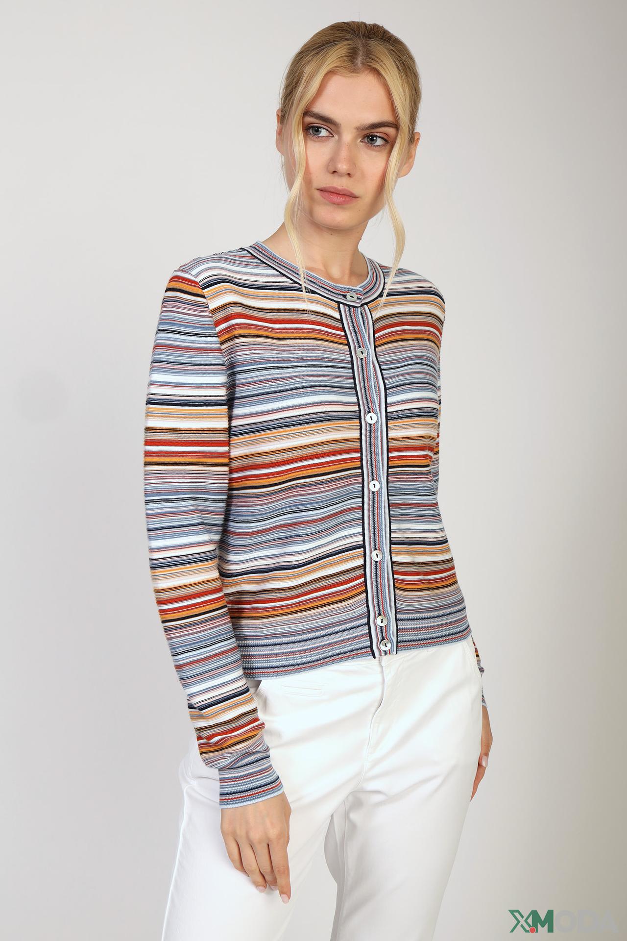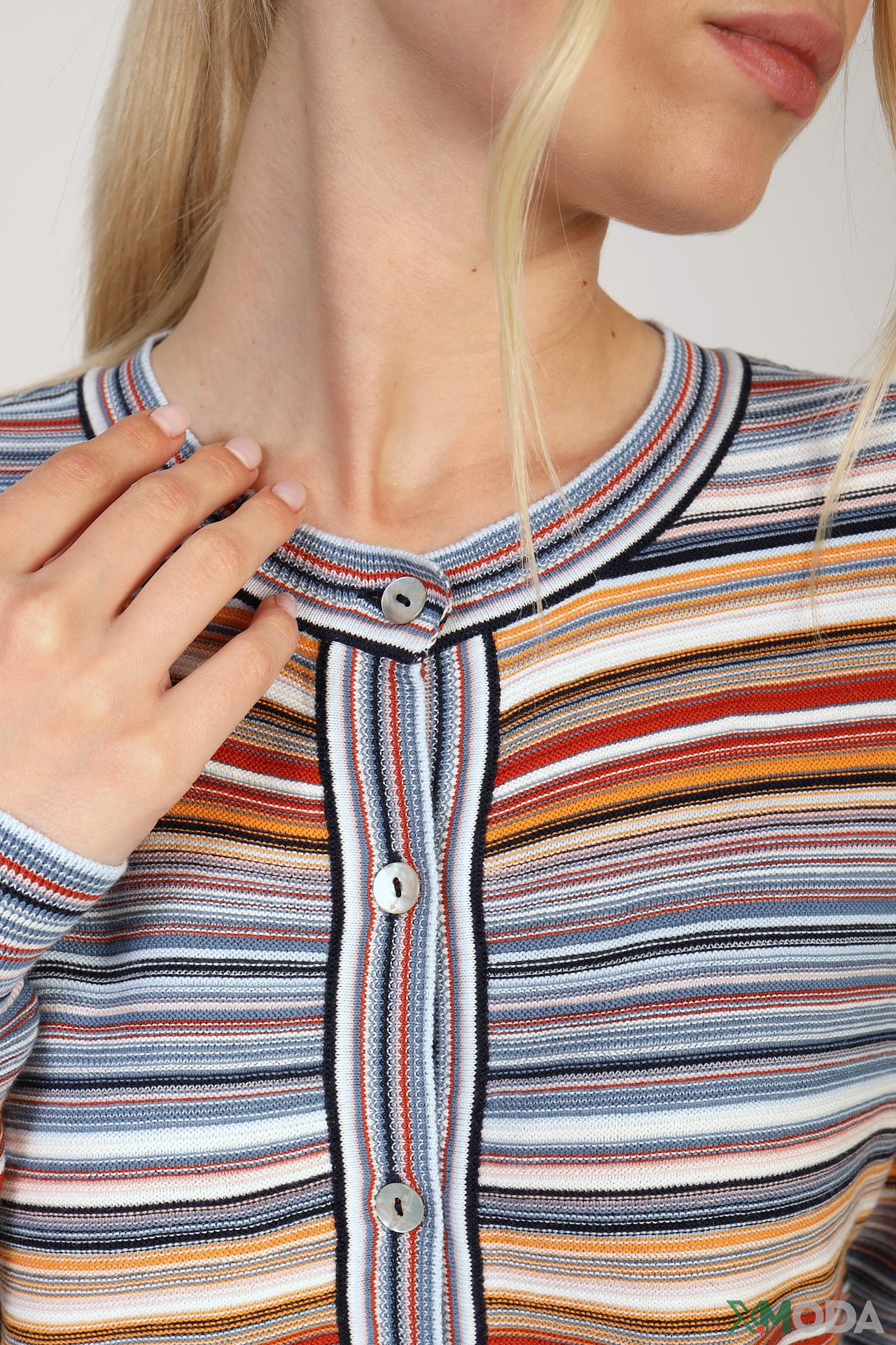 - Цвет: Яркая комбинация цветов в полоску делает этот жакет акцентным элементом образа.