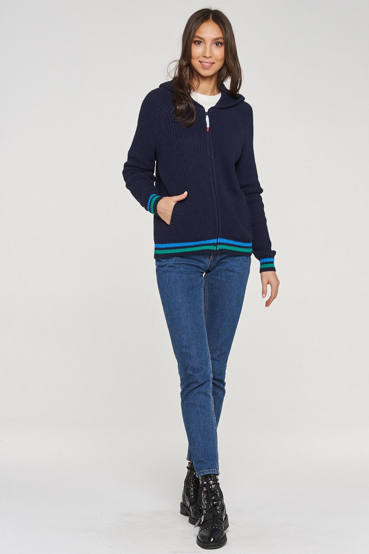 Синий вязаный жакет BE YOU с капюшоном на молнии