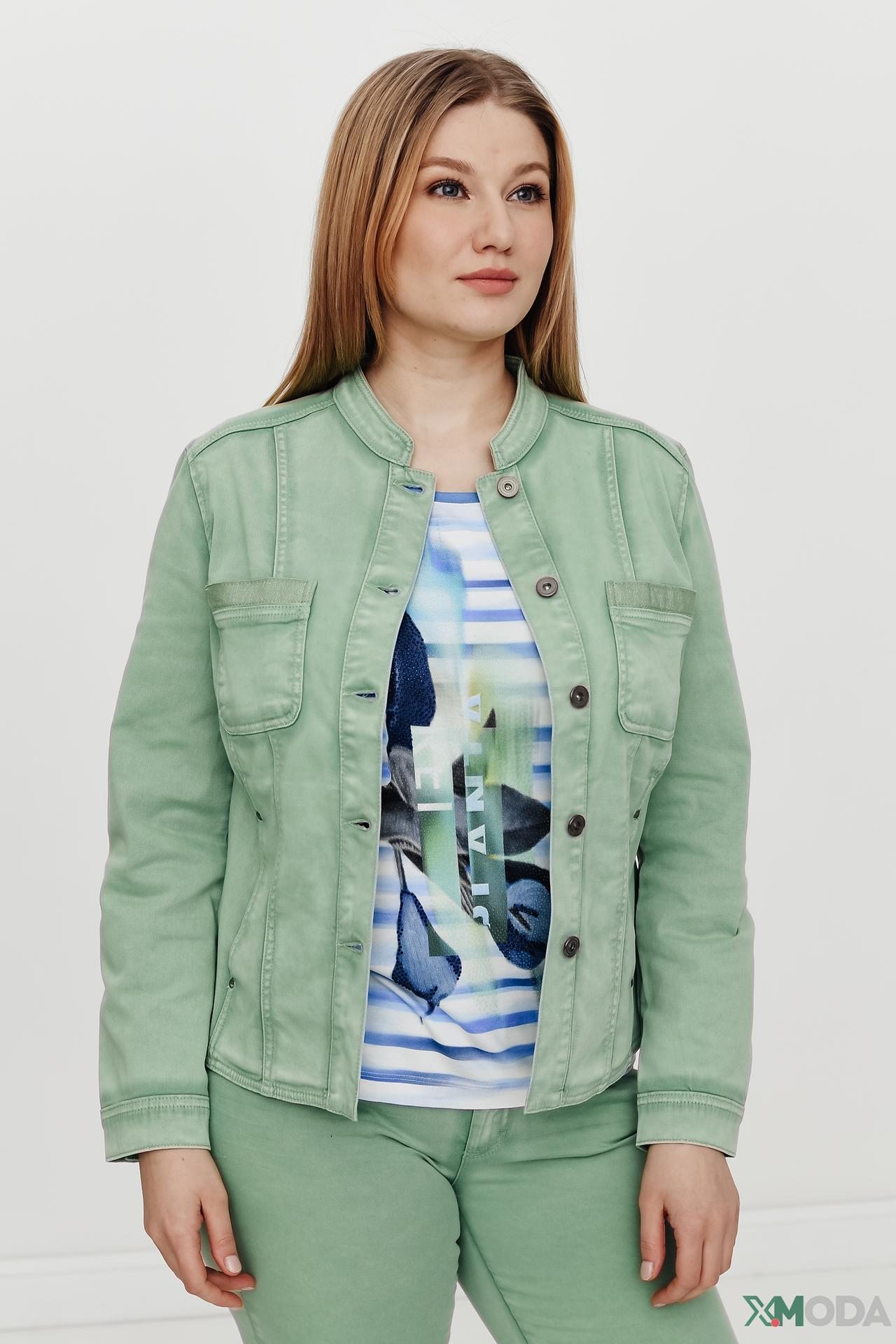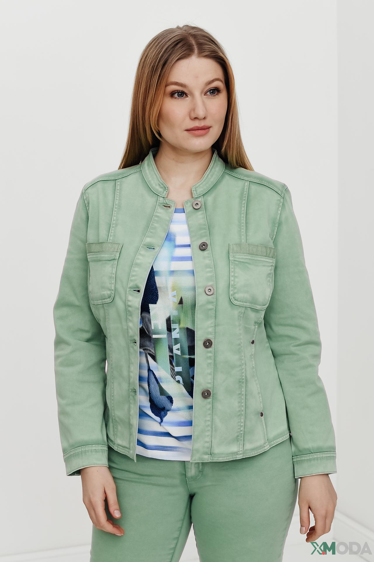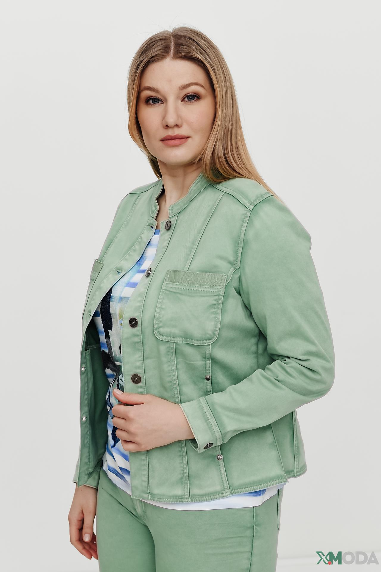 Жакет приглушенного зеленого цвета с лаконичным дизайном отлично сочетается с различными стилями одежды. Ткань приятна на ощупь и хорошо держит форму. Модель с застежкой на пуговицы и удобными накладными карманами.