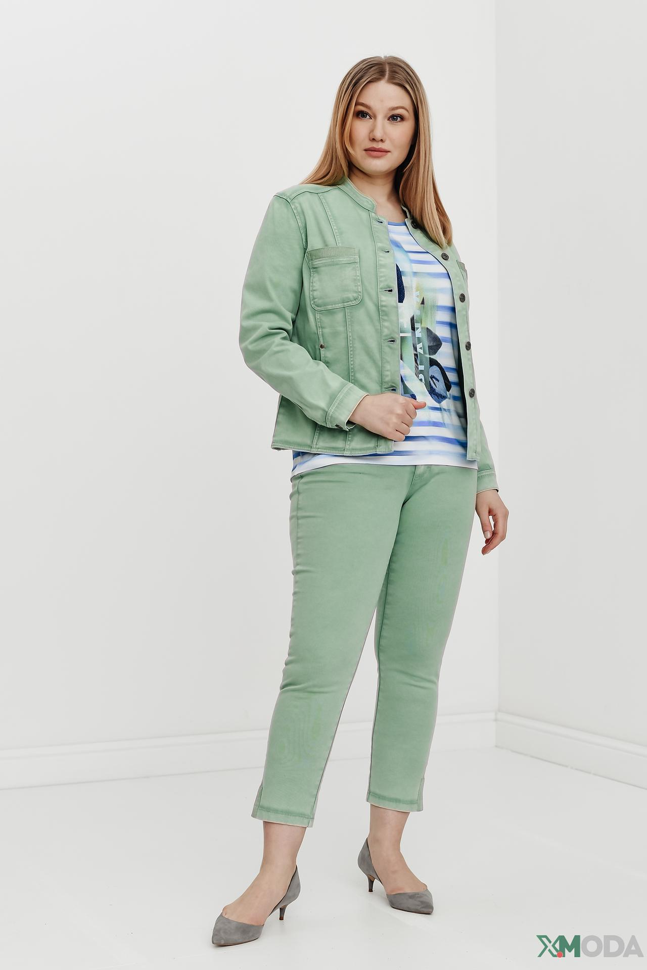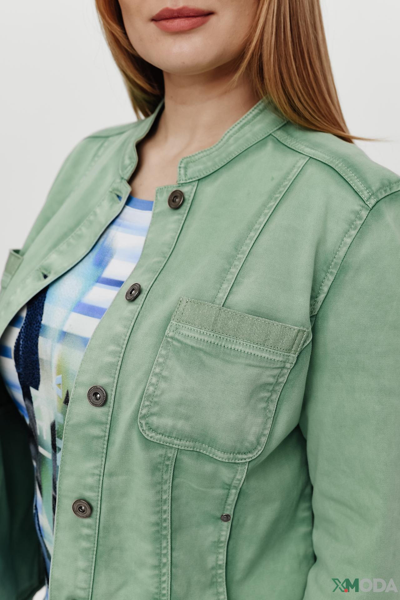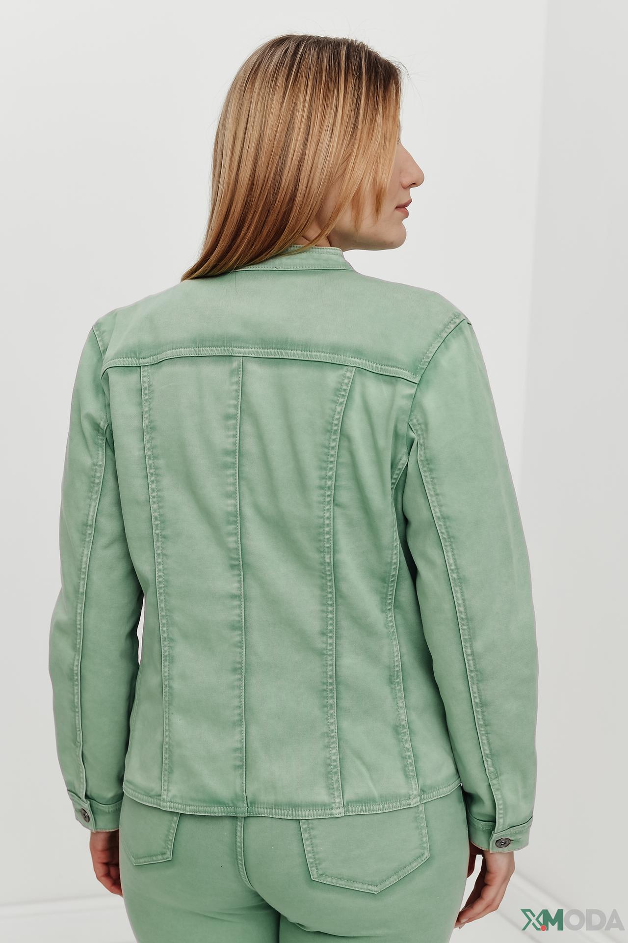 Жакет приглушенного зеленого цвета с лаконичным дизайном отлично сочетается с различными стилями одежды. Ткань приятна на ощупь и хорошо держит форму. Модель с застежкой на пуговицы и удобными накладными карманами.