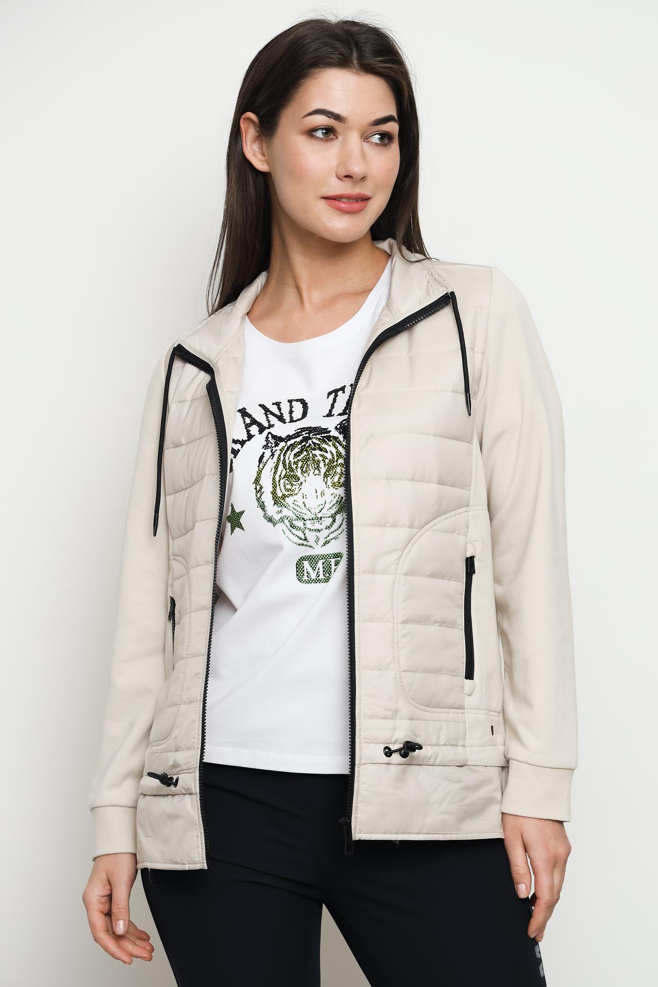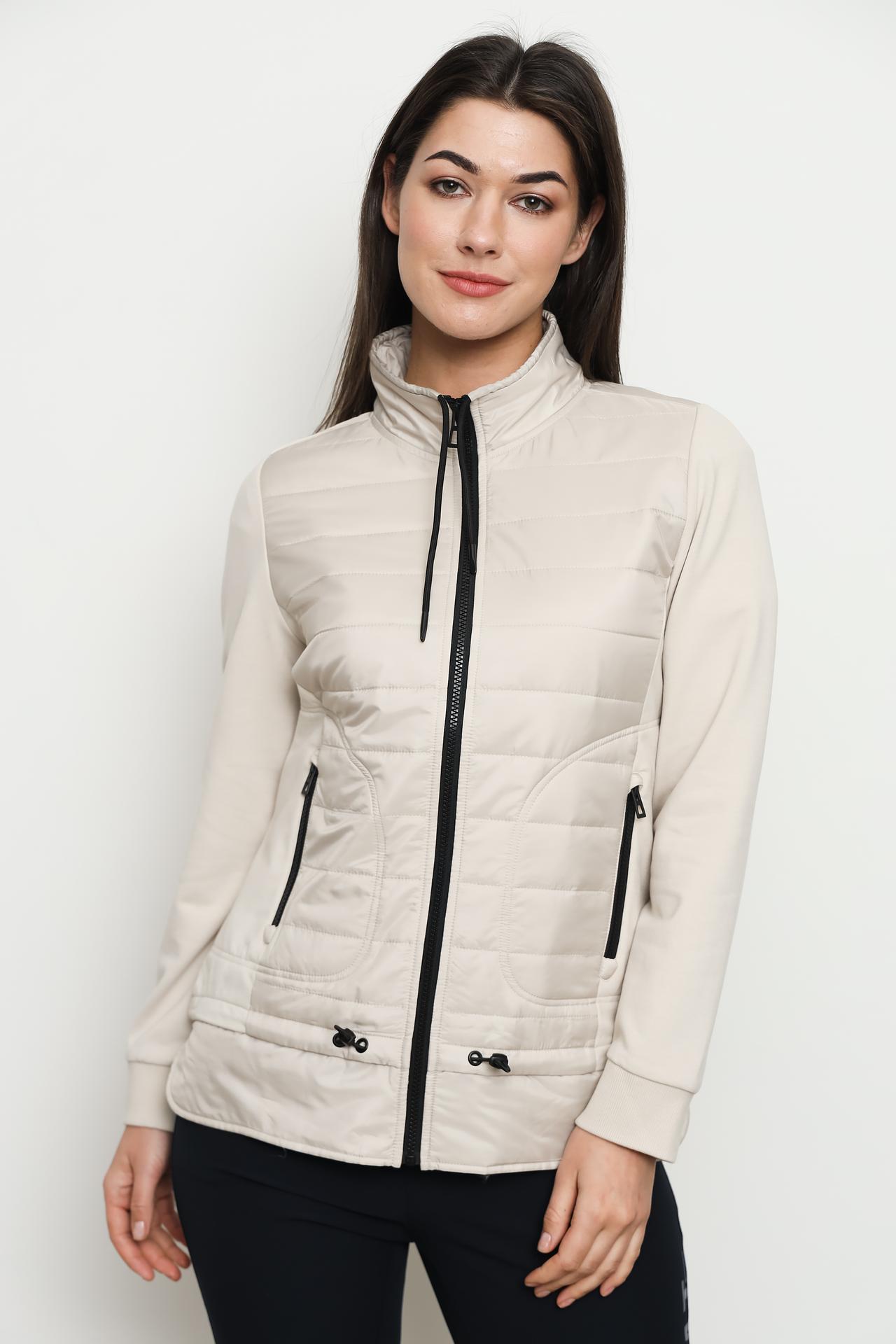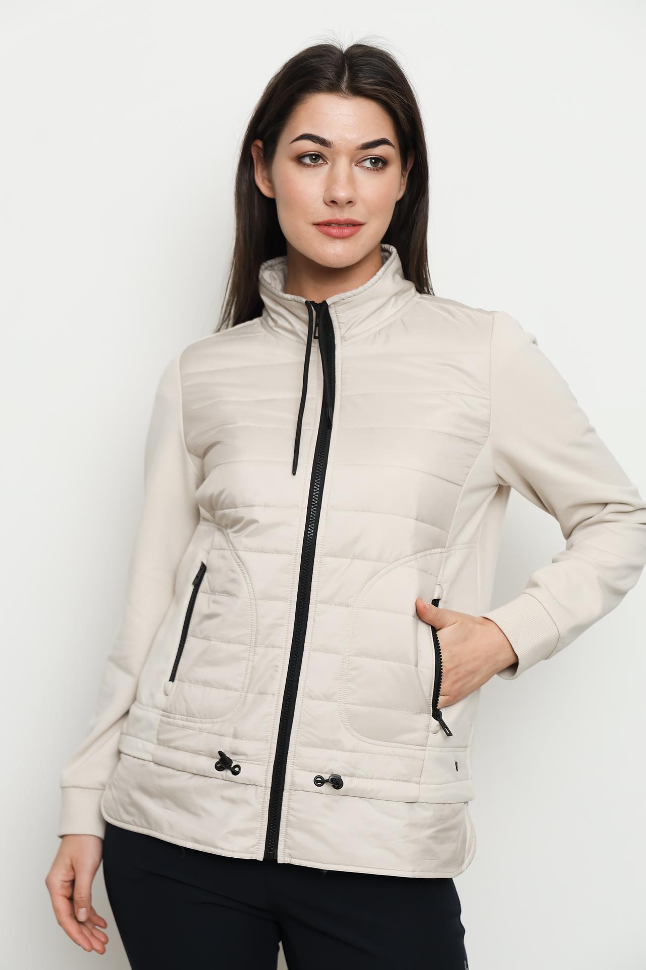 - Комбинированный дизайн: Передняя часть жакета выполнена из стеганого материала, а рукава и спинка – из гладкого трикотажа, что создает интересный визуальный эффект и обеспечивает свободу движений.
