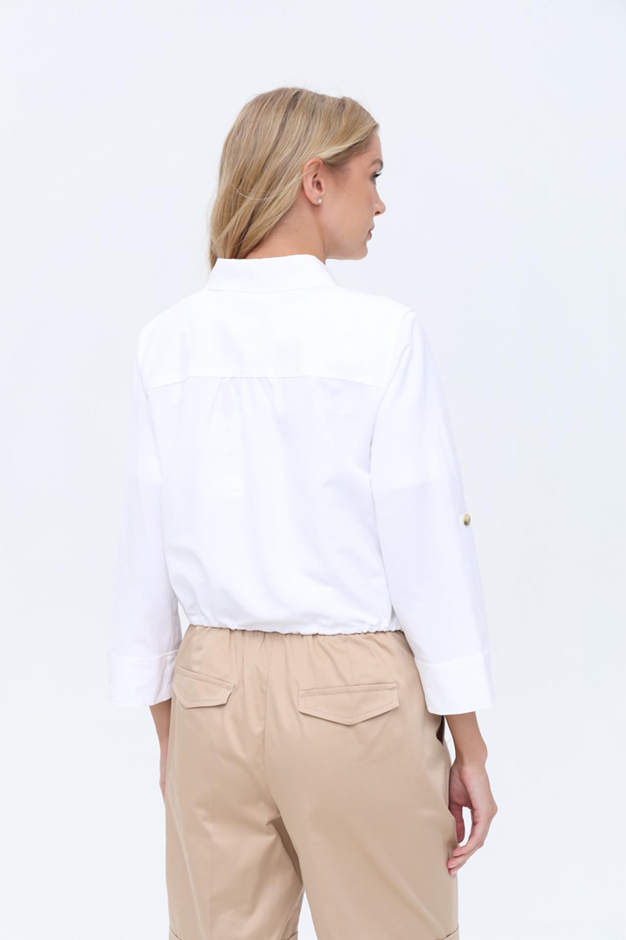 - Универсальный дизайн: Укороченный фасон и нейтральный белый цвет позволяют легко комбинировать жакет с джинсами, брюками или юбками, создавая множество стильных ансамблей для любого случая.