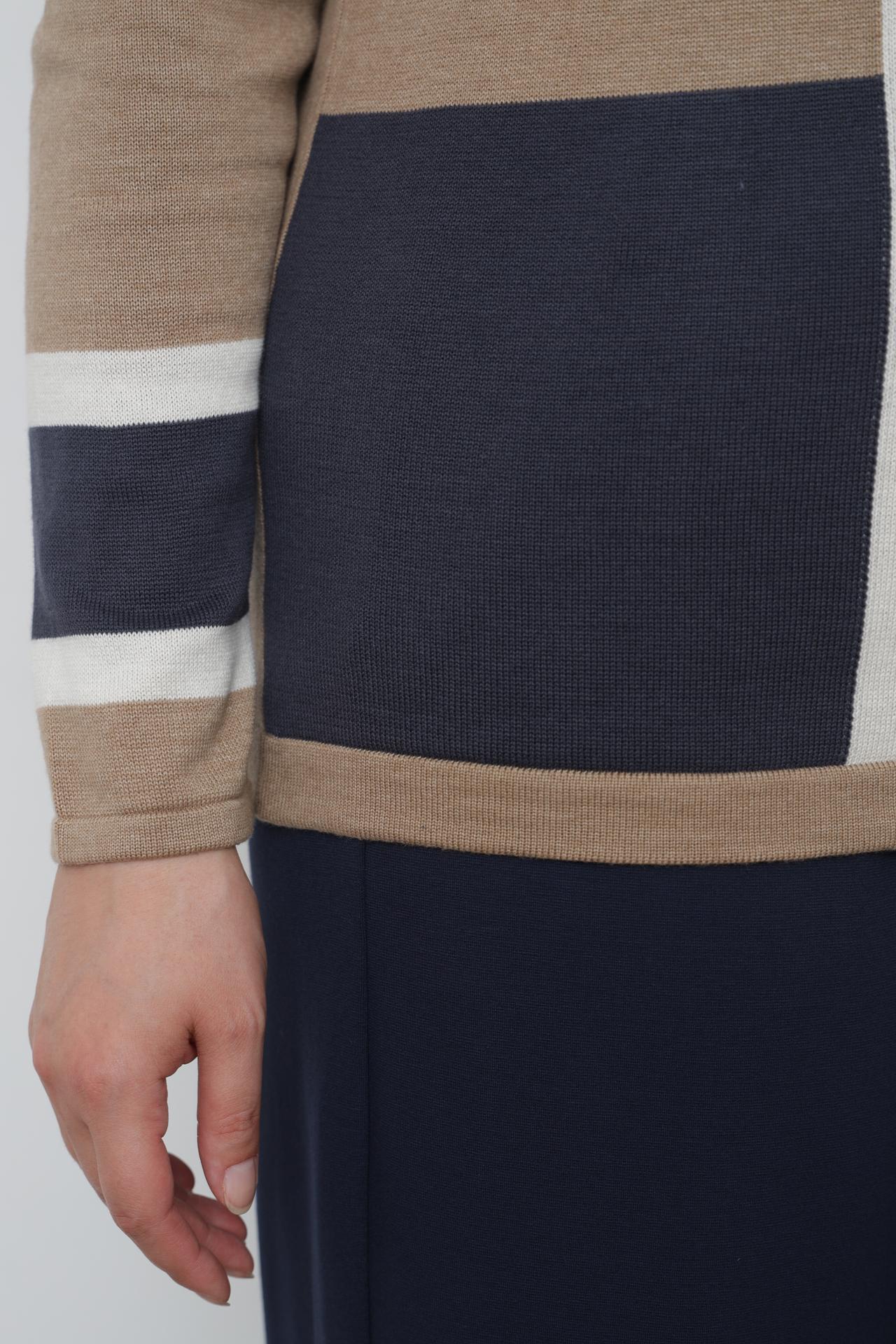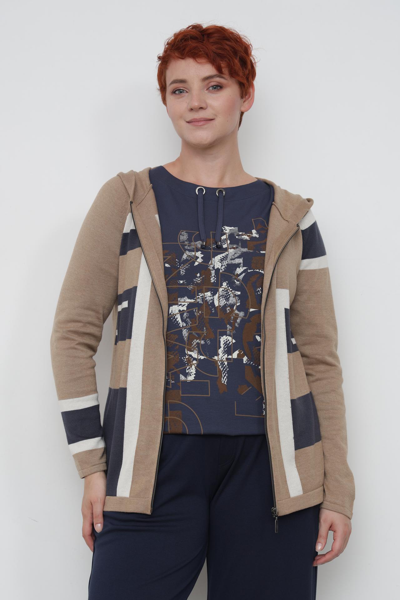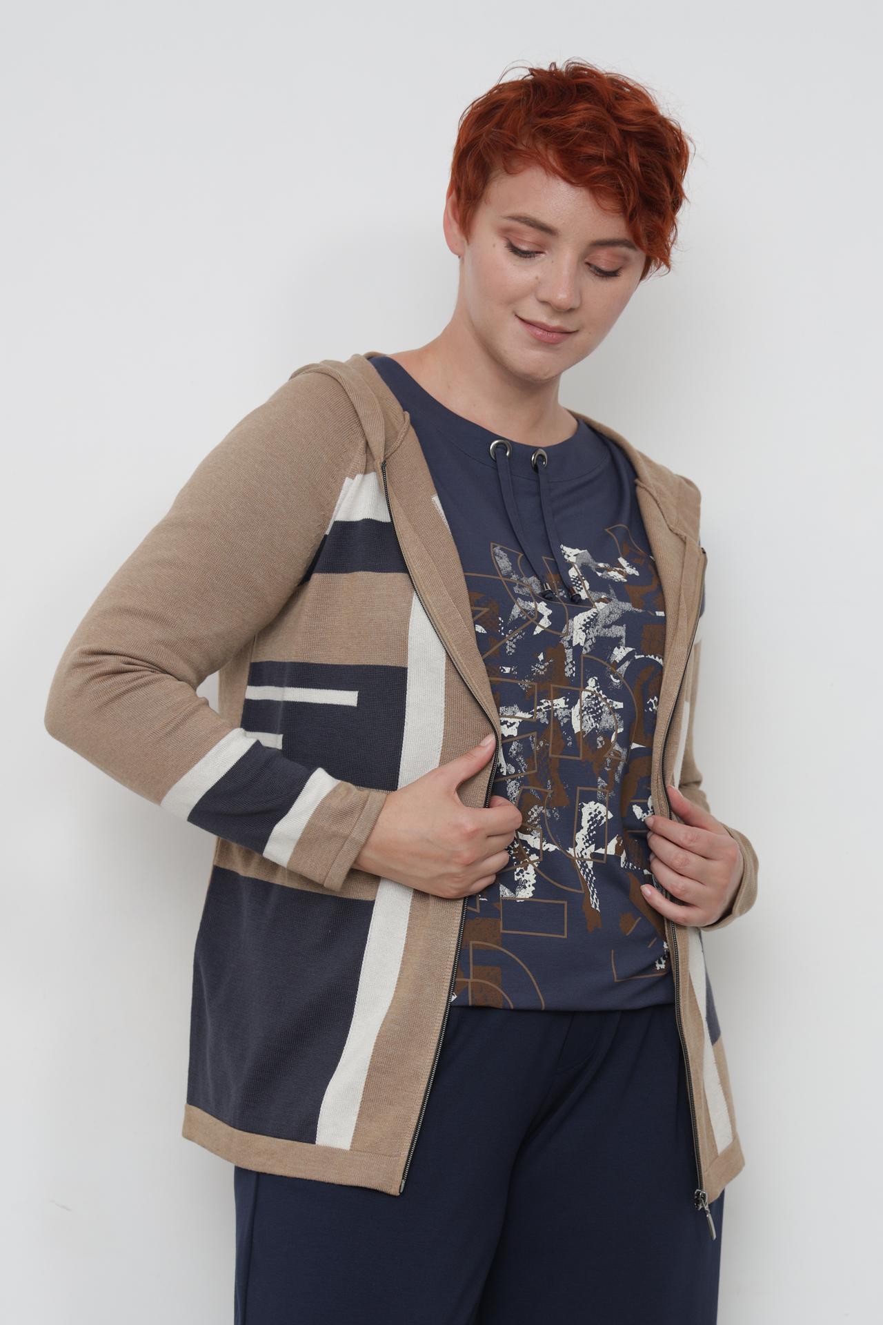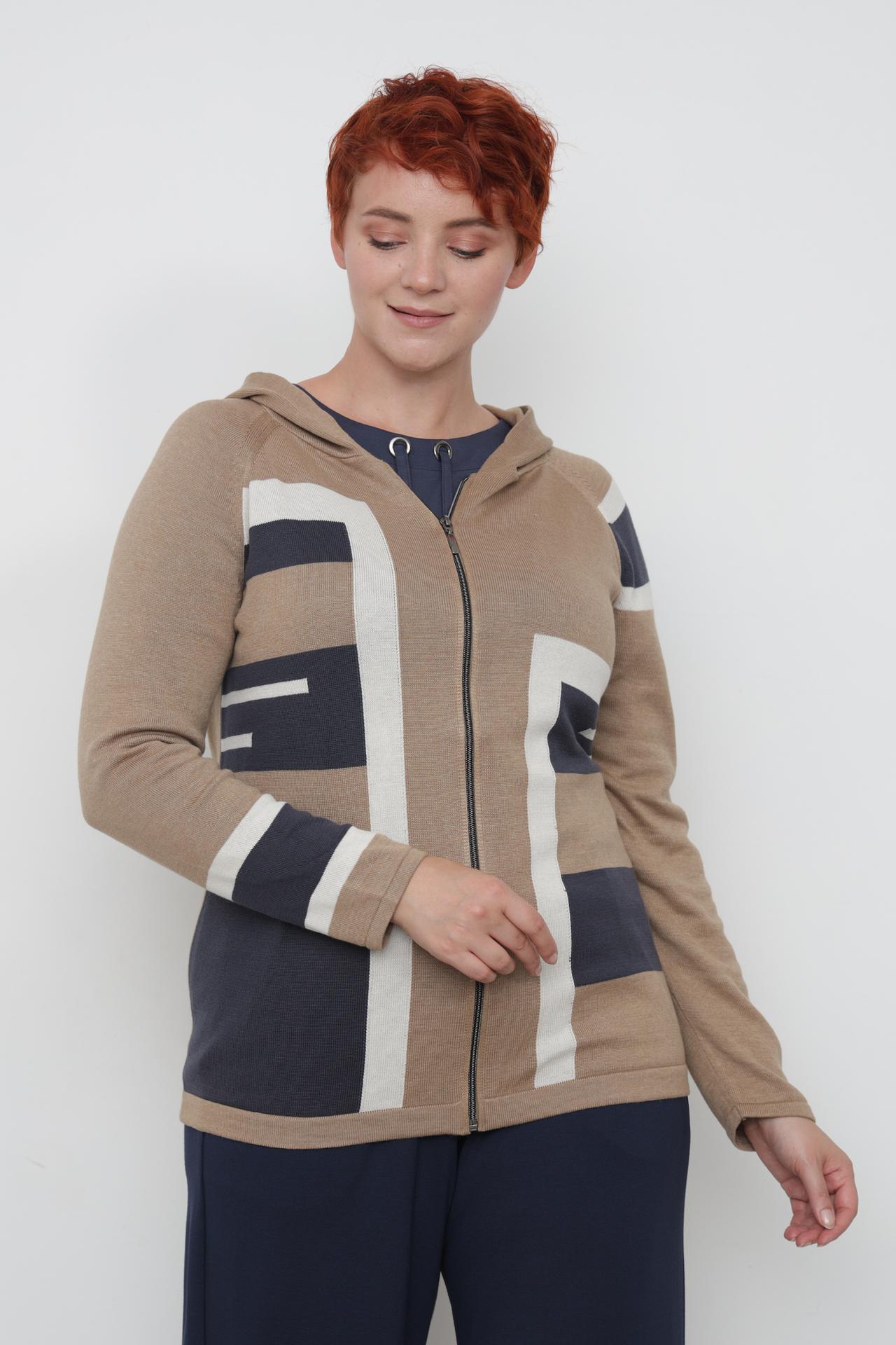 Жакет застегивается на молнию, что обеспечивает удобство и функциональность. Блочный дизайн в бежевых, синих и белых тонах придает модели современный и стильный вид. В этом жакете вы будете чувствовать себя уверенно и комфортно в любой ситуации.