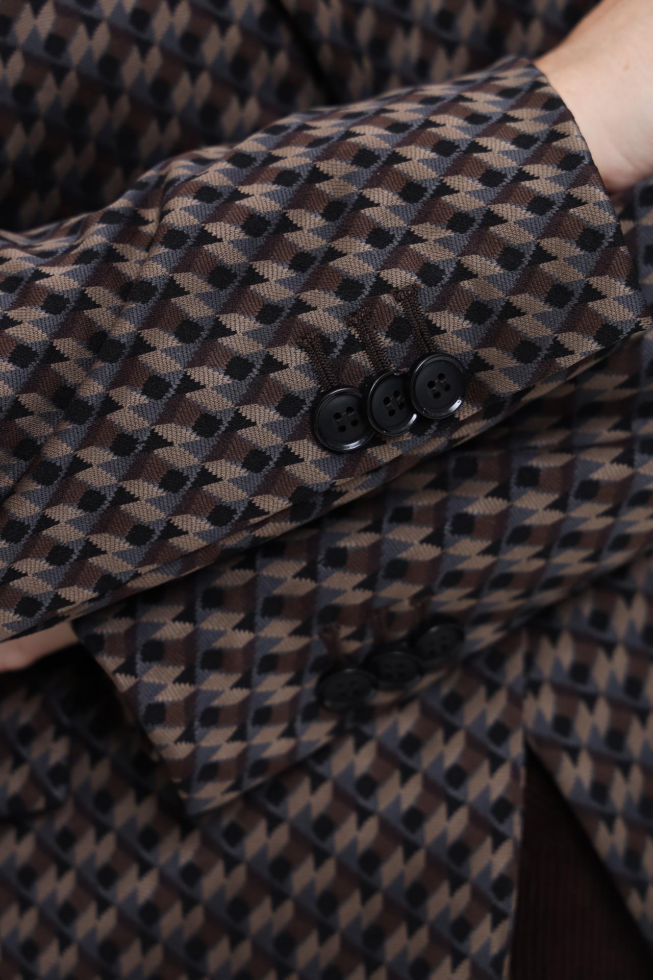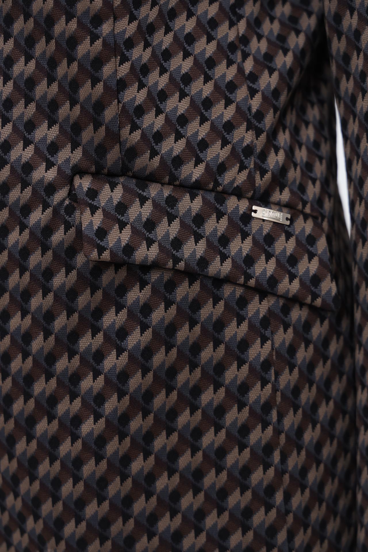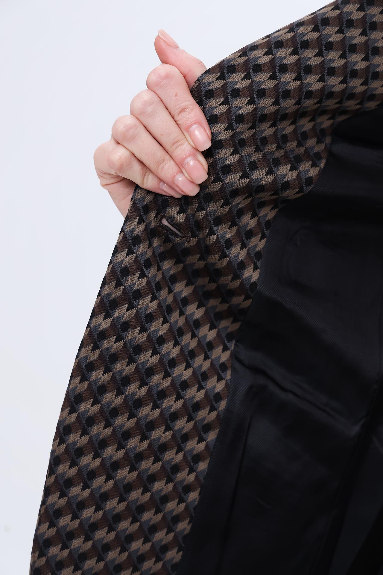 - Универсальный дизайн: Классический жакет с утонченным геометрическим узором легко сочетается как с деловыми брюками и юбками, так и с джинсами, позволяя создавать разнообразные ансамбли для любой ситуации. Это идеальное решение для офиса и элегантного повседневного стиля.