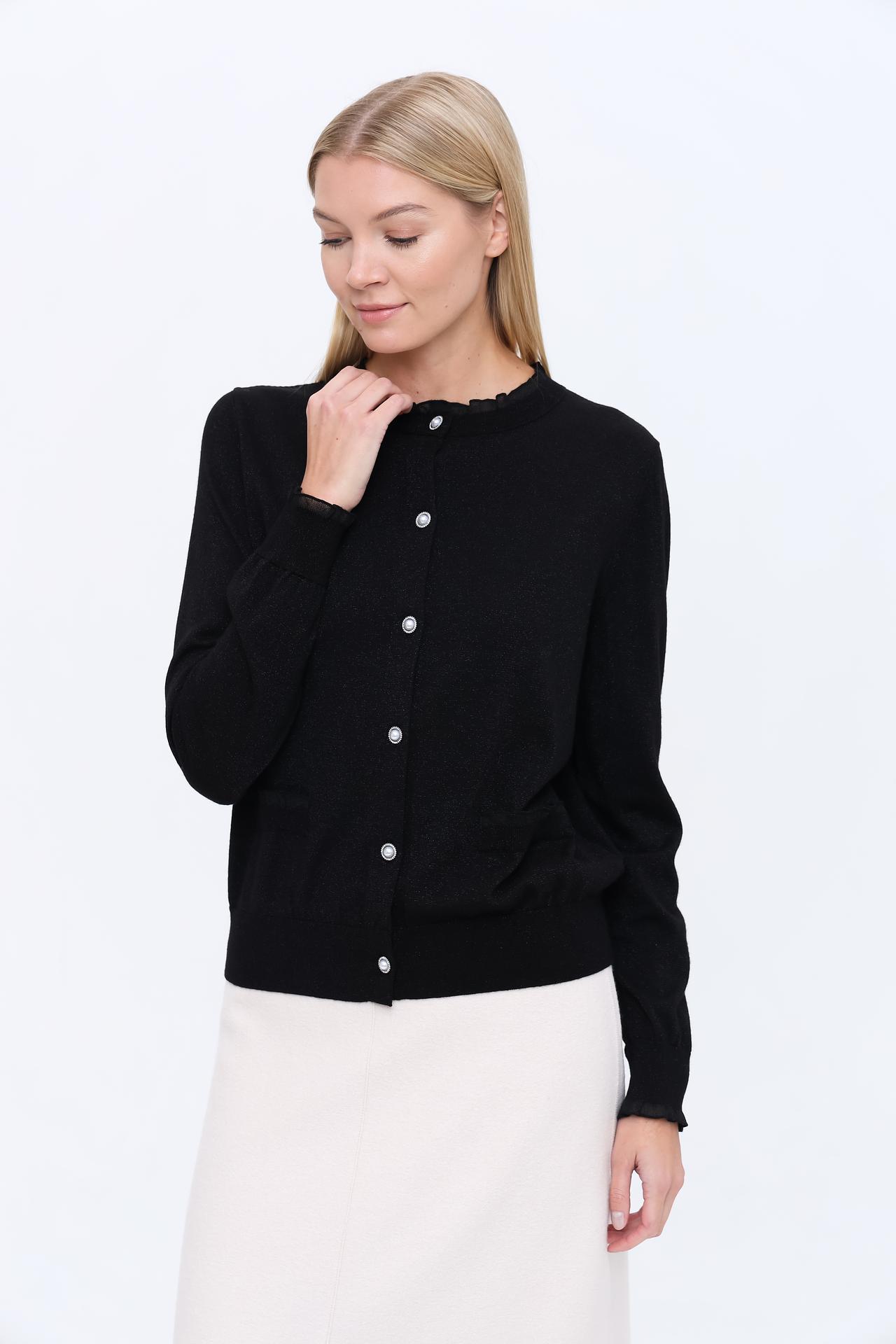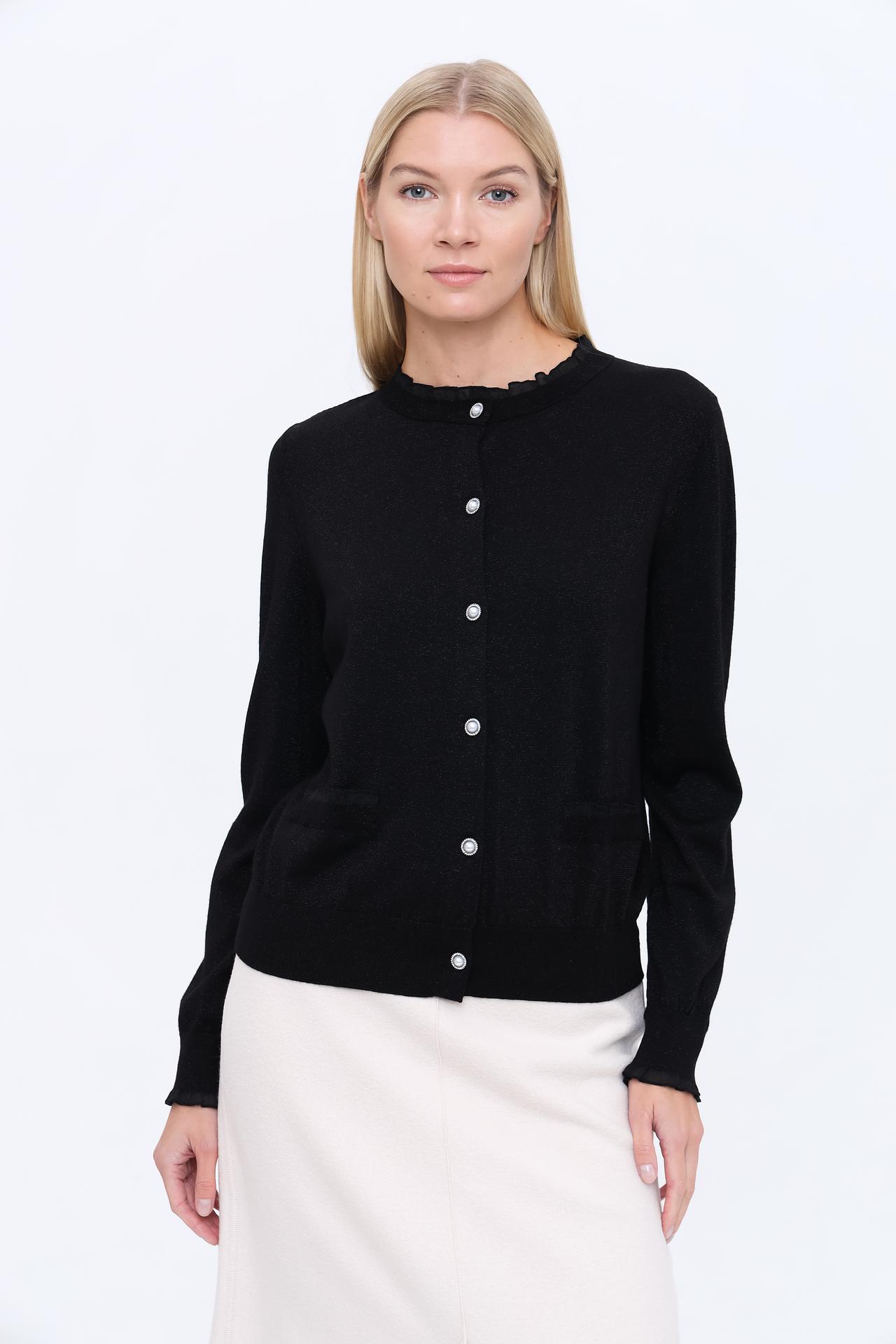 Жакет Marc Cain чёрный с жемчужными пуговицами и рюшами