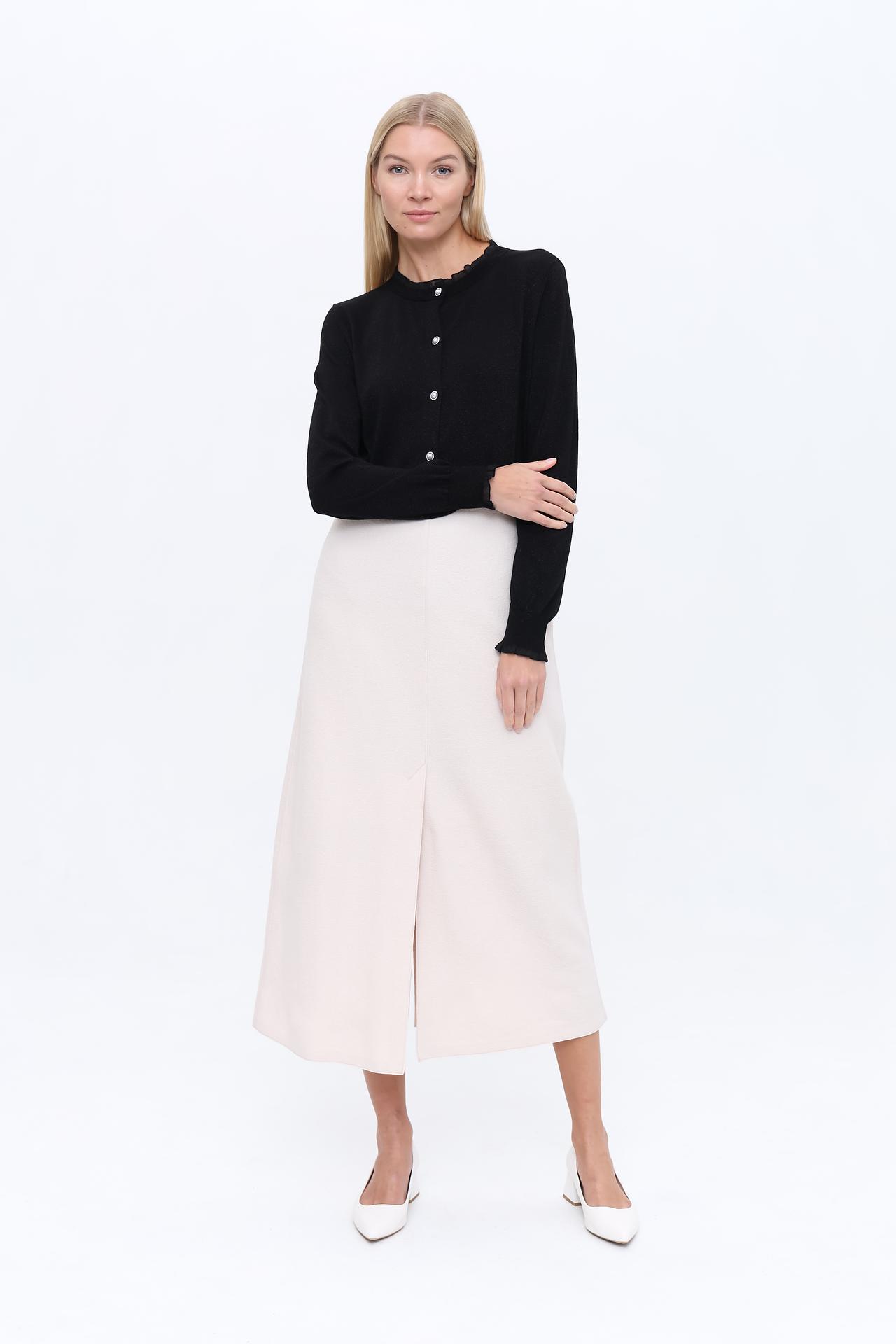 - Роскошные детали: Жемчужные пуговицы с серебристой окантовкой придают модели особый шик и благородство. Изящная рюша по вороту и на манжетах добавляет деликатную женственность.