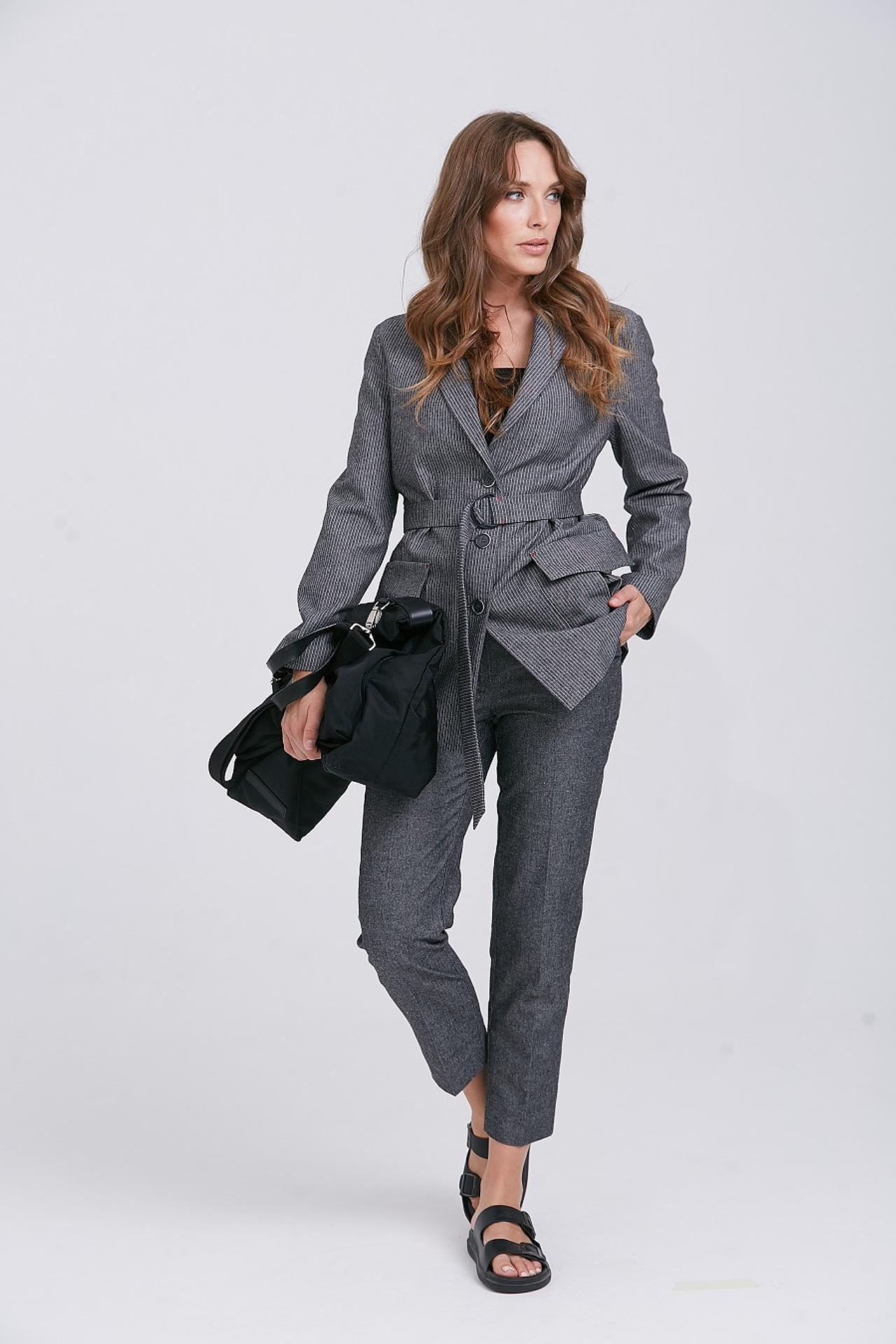 - Классический узор "полоска": Тонкая вертикальная полоска не только визуально стройнит, но и является timeless-принтом, который всегда актуален. Она придает жакету респектабельный и модный вид.