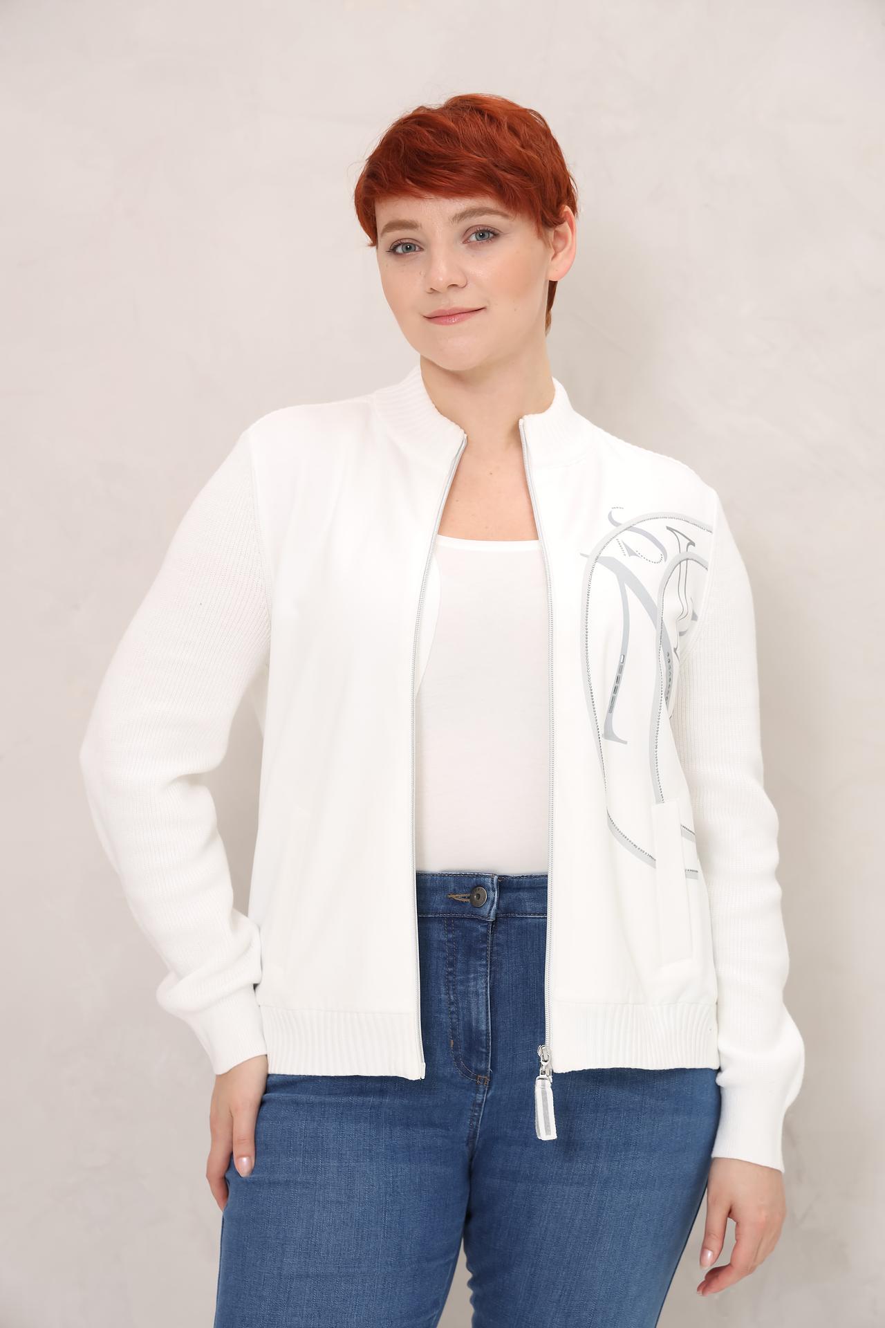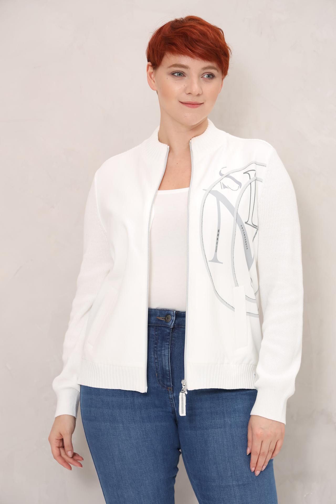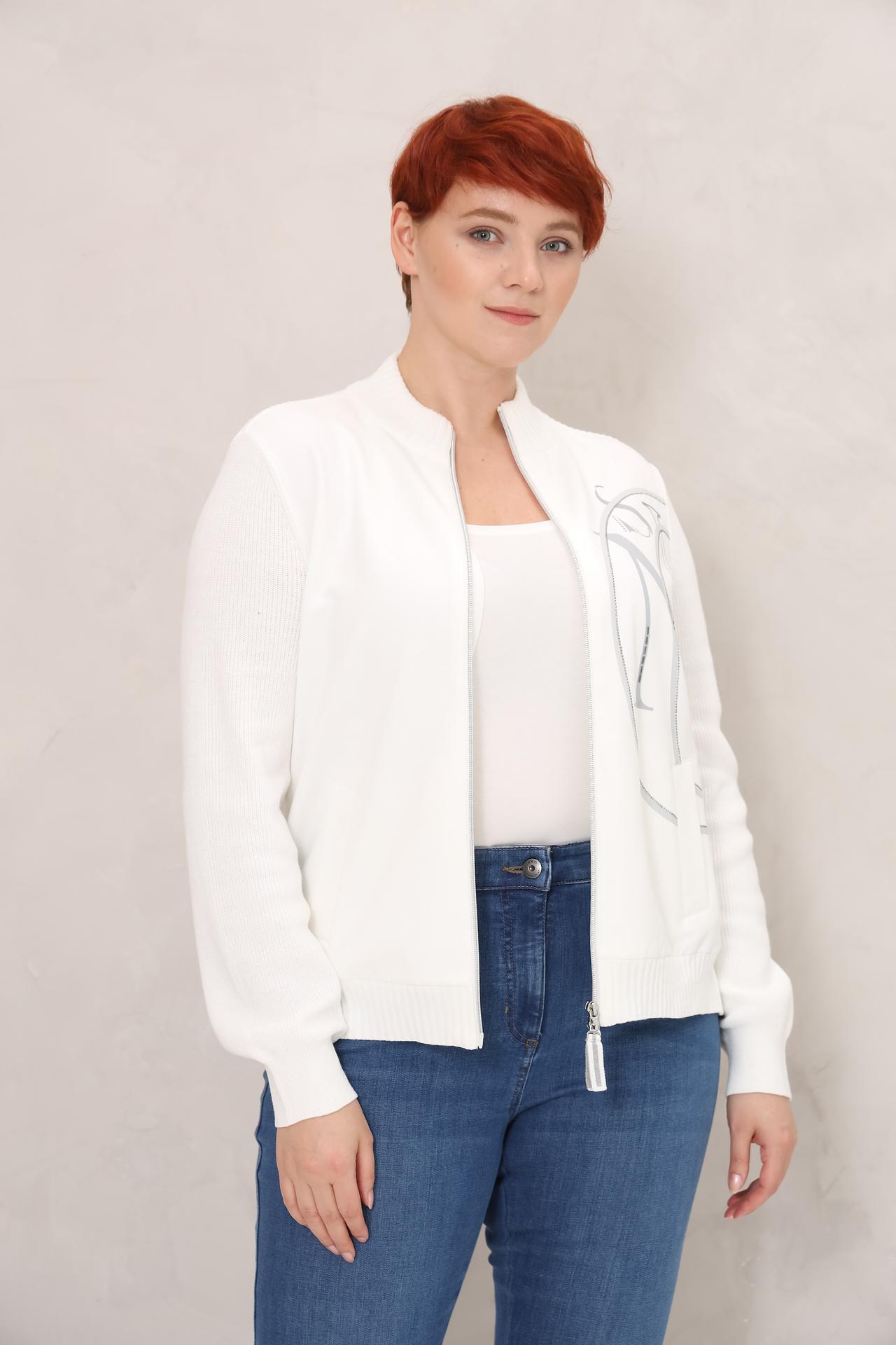 Белый жакет Olsen на молнии с декоративным принтом