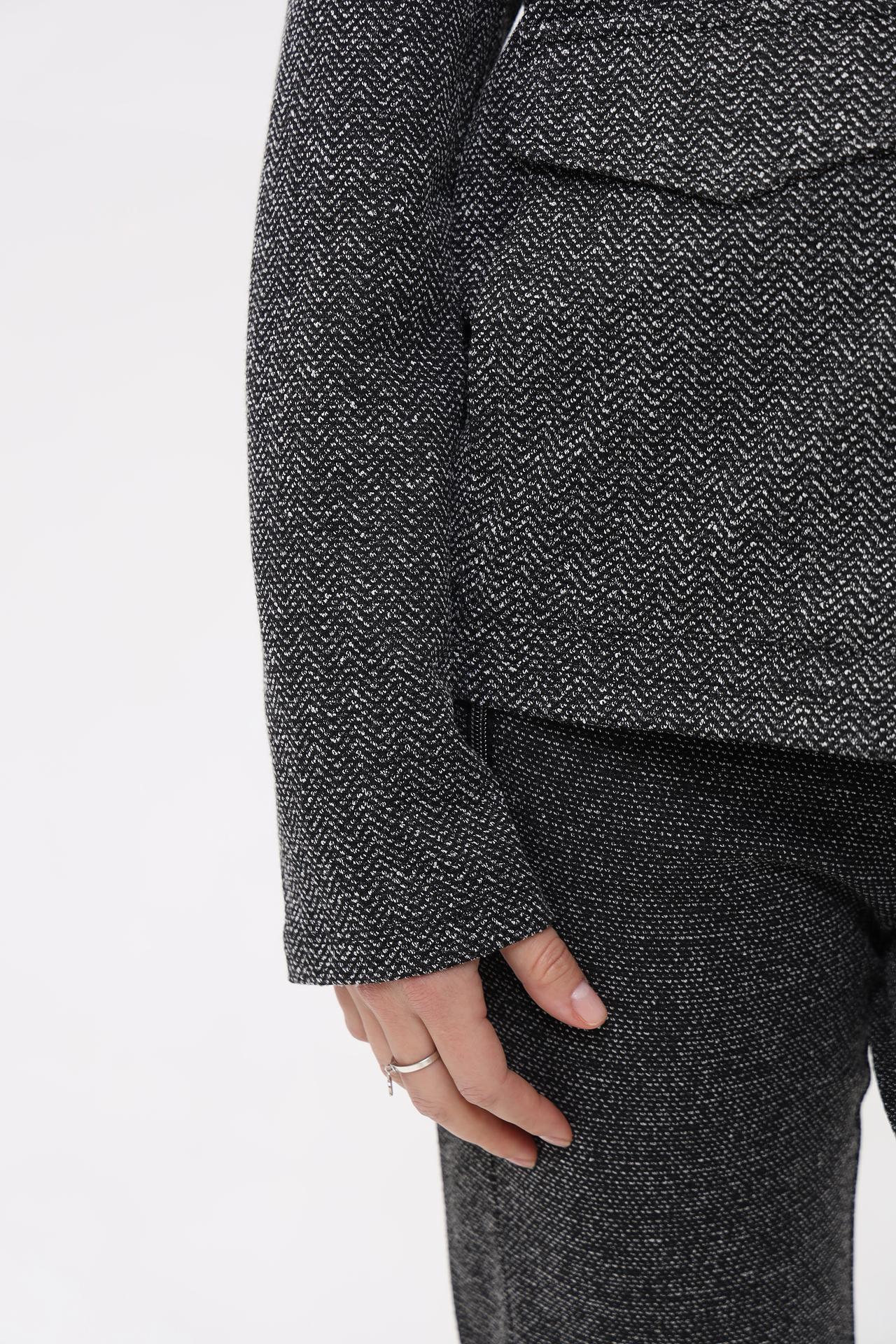Состав ткани (80% полиэстер, 20% вискоза) обеспечивает долговечность изделия, легкость в уходе и приятные тактильные ощущения. Жакет прекрасно держит форму и не мнется, что особенно важно для активных женщин.