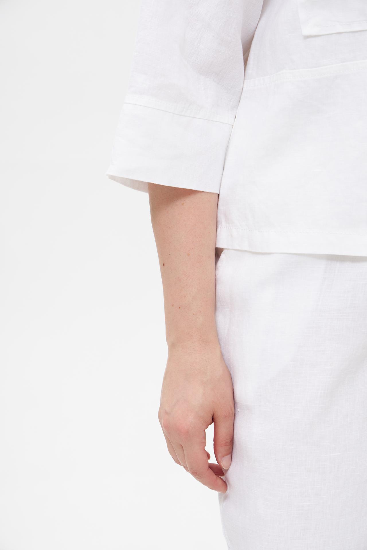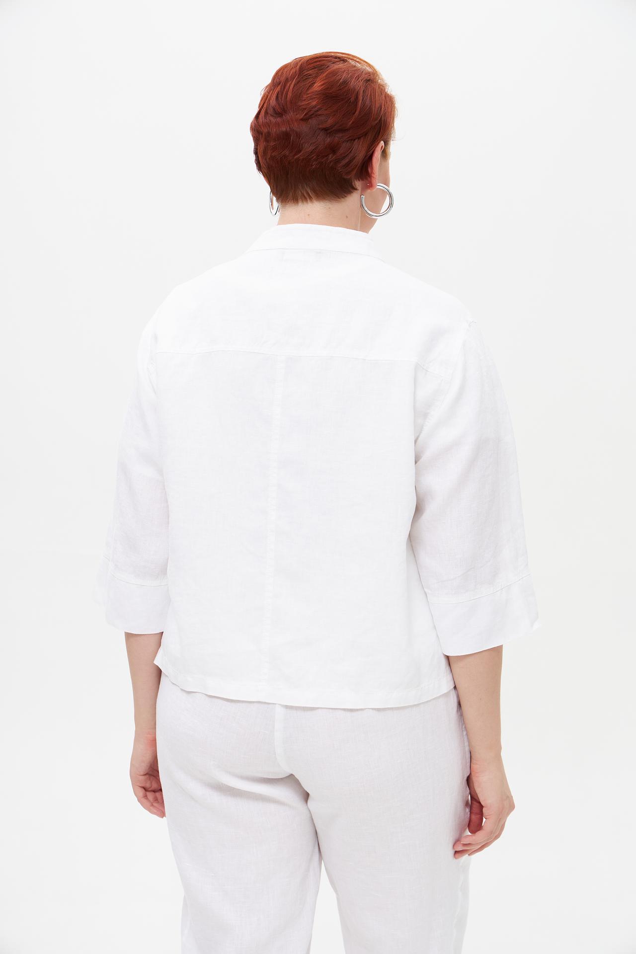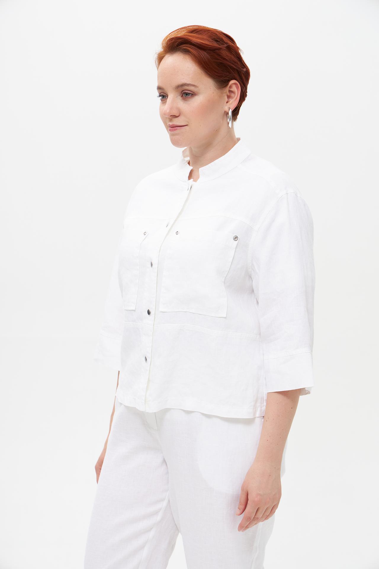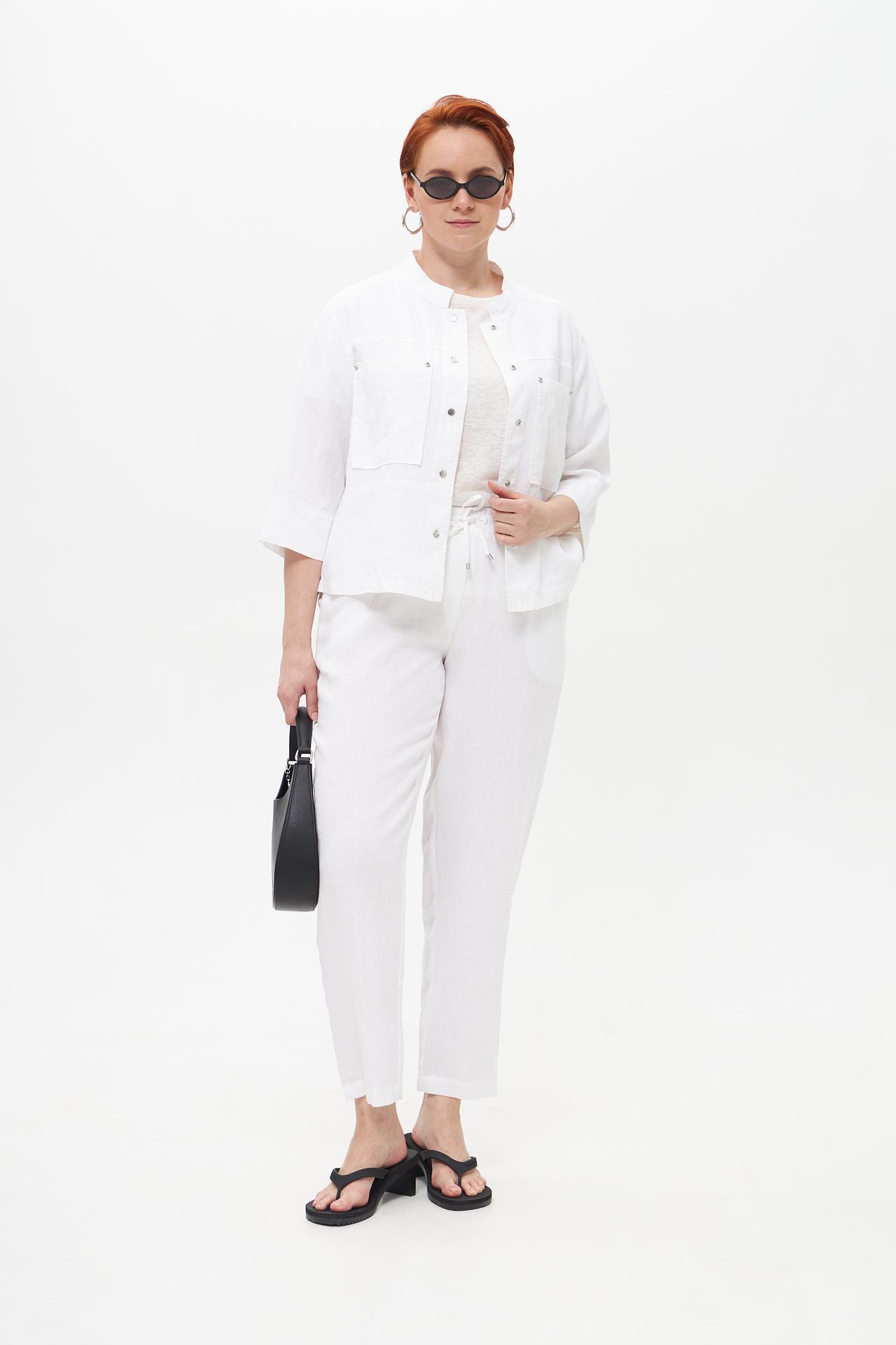 - Универсальность образа. Белый льняной жакет легко комбинируется как с классическими брюками и юбками, так и с джинсами для создания повседневного или нарядного ансамбля. Прекрасно подходит для городских прогулок и курортного отдыха.