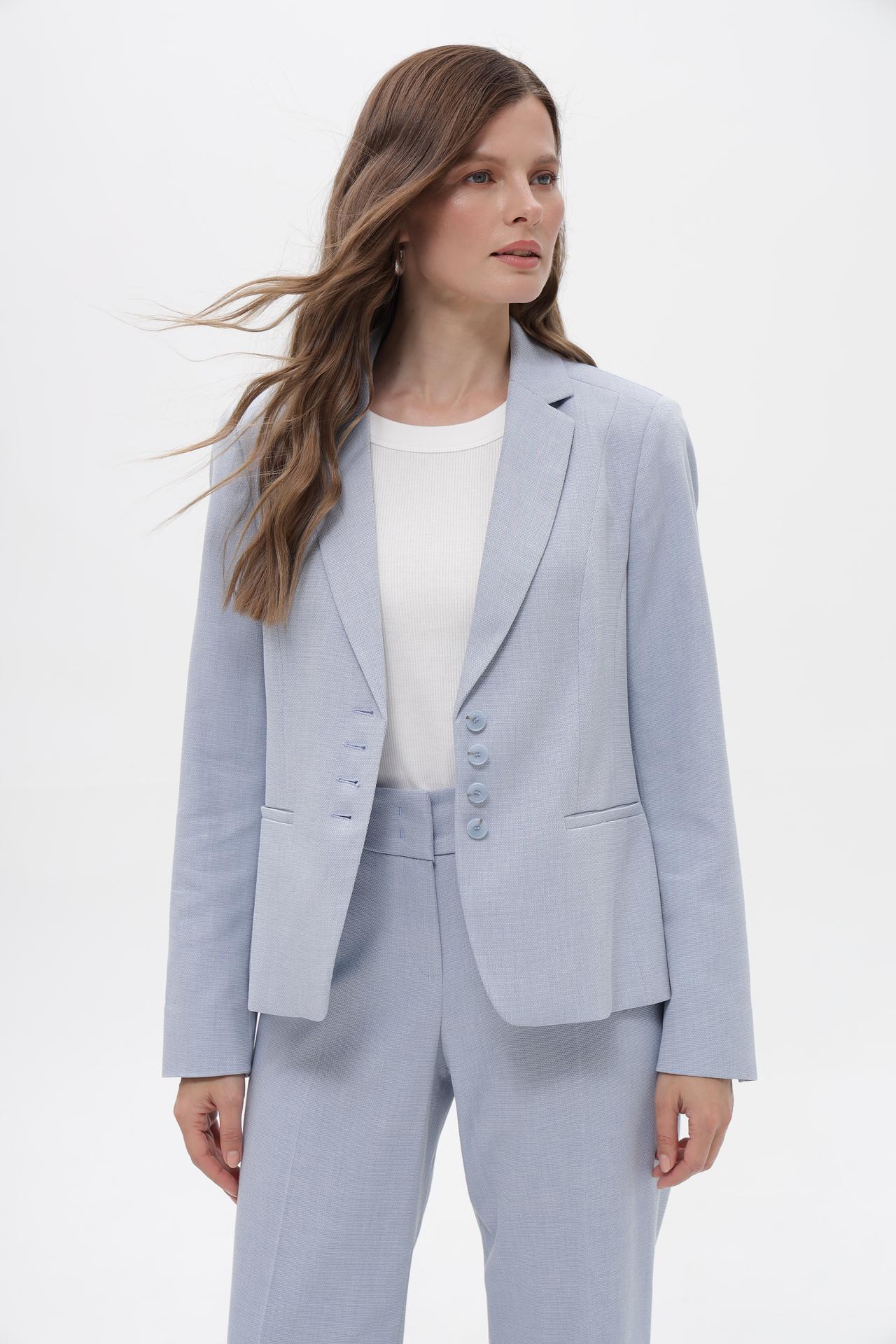Элегантный жакет Bianca – идеальное дополнение к вашему деловому или повседневному гардеробу. Этот классический женский жакет выполнен из высококачественной смесовой ткани, обеспечивающей комфорт и долговечность. Благодаря своему утонченному голубому оттенку, он легко впишется в различные стили, создавая безупречный и актуальный образ.