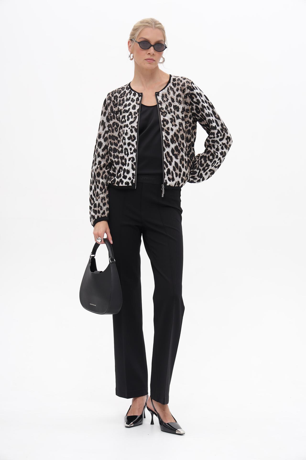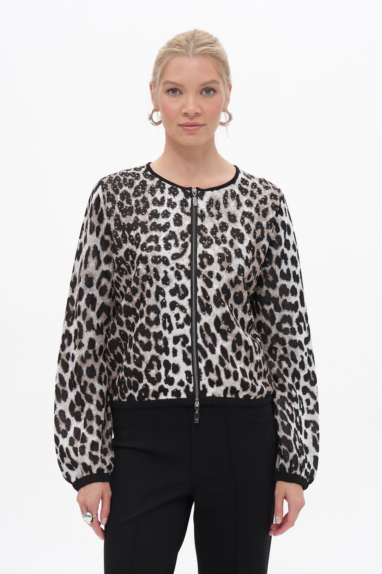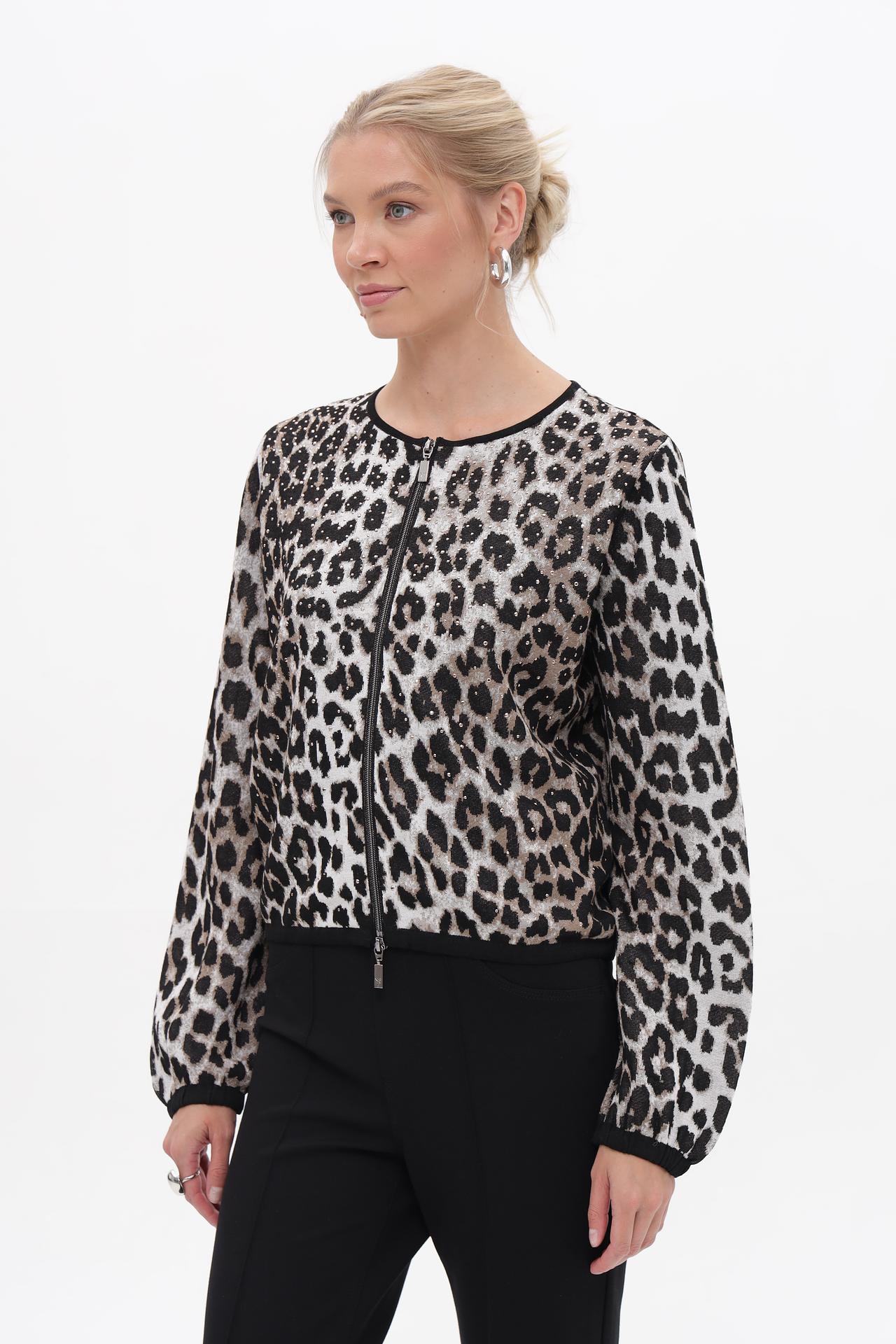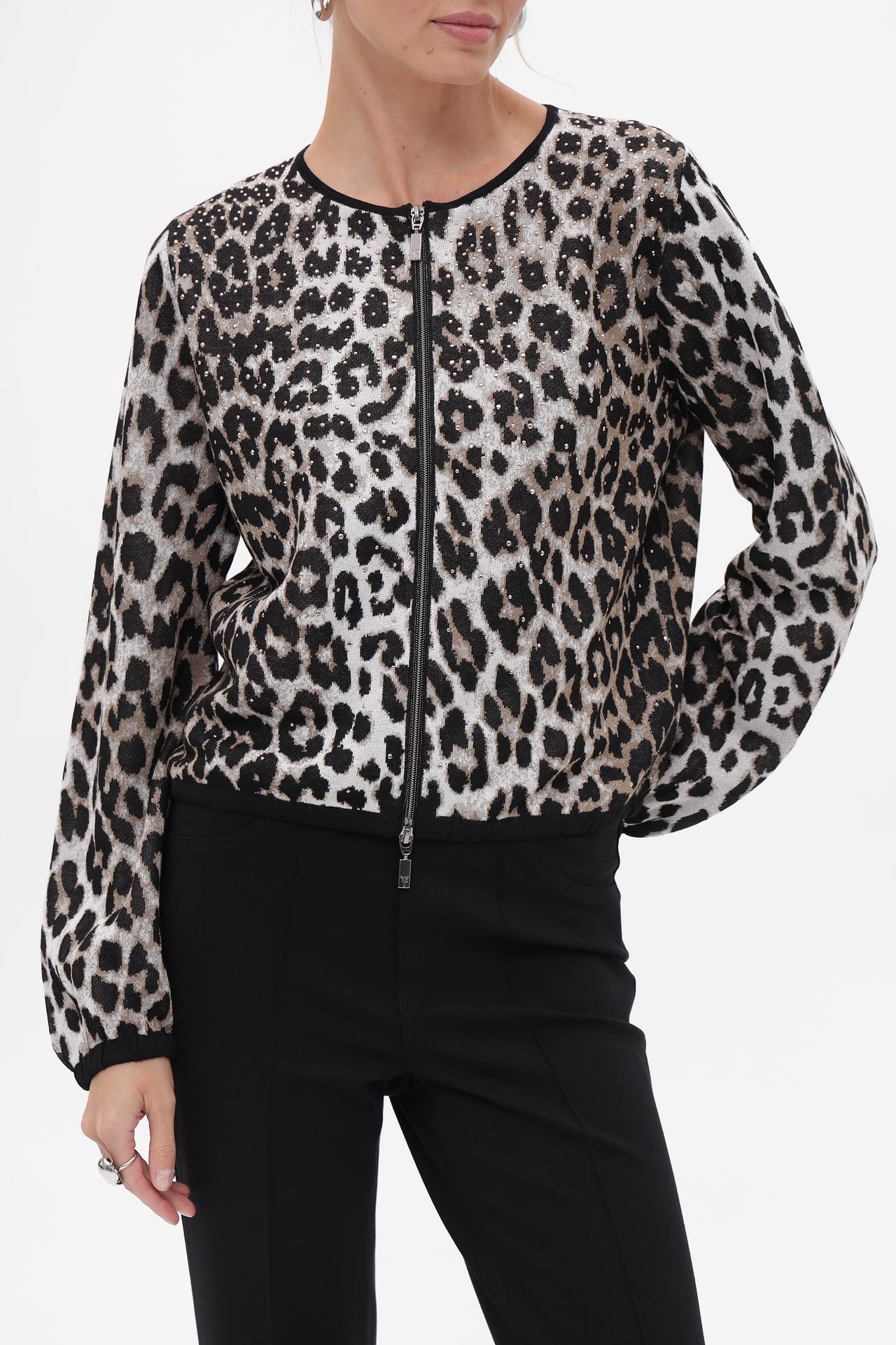 Изысканный женский жакет Monari с актуальным леопардовым принтом станет ярким акцентом гардероба. Эта модель жакета-бомбера выполнена из высококачественной смеси вискозы (75%) и полиэстера (25%), обеспечивая идеальный баланс мягкости и долговечности. Тонкие переливающиеся стразы, искусно расположенные по узору, добавляют изделию роскошное сияние и неповторимый шарм.