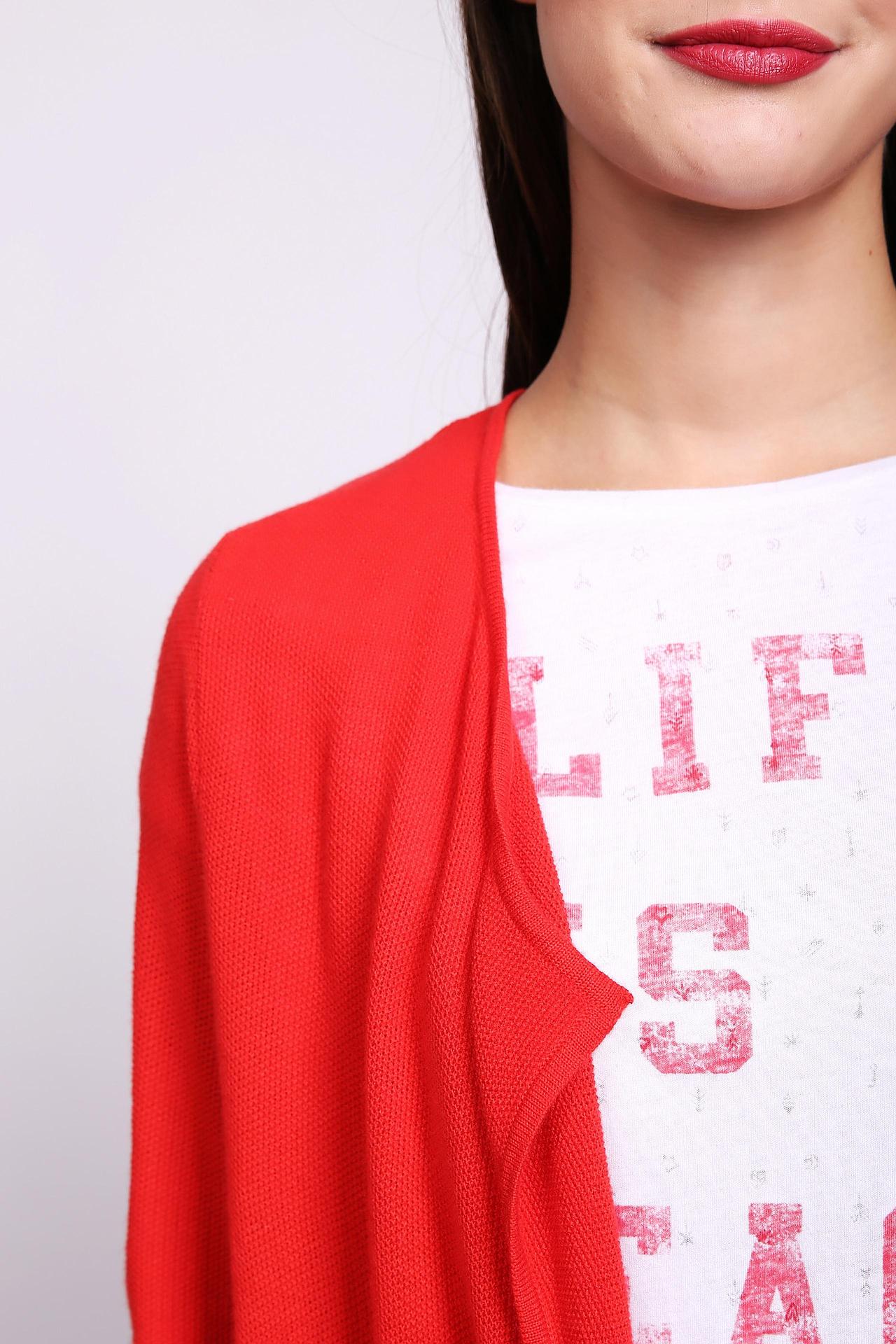 Жакет женский красного цвета фирмы Gerry Weber. Модель выполнена прямым покроем. Изделие дополнено округлым воротом с запахом, длинными, втачными рукавами. Состав ткани состоит из 50% полиакрила, 50% шерсти. Гармонировать можно с различными юбками, брюками, блузами.