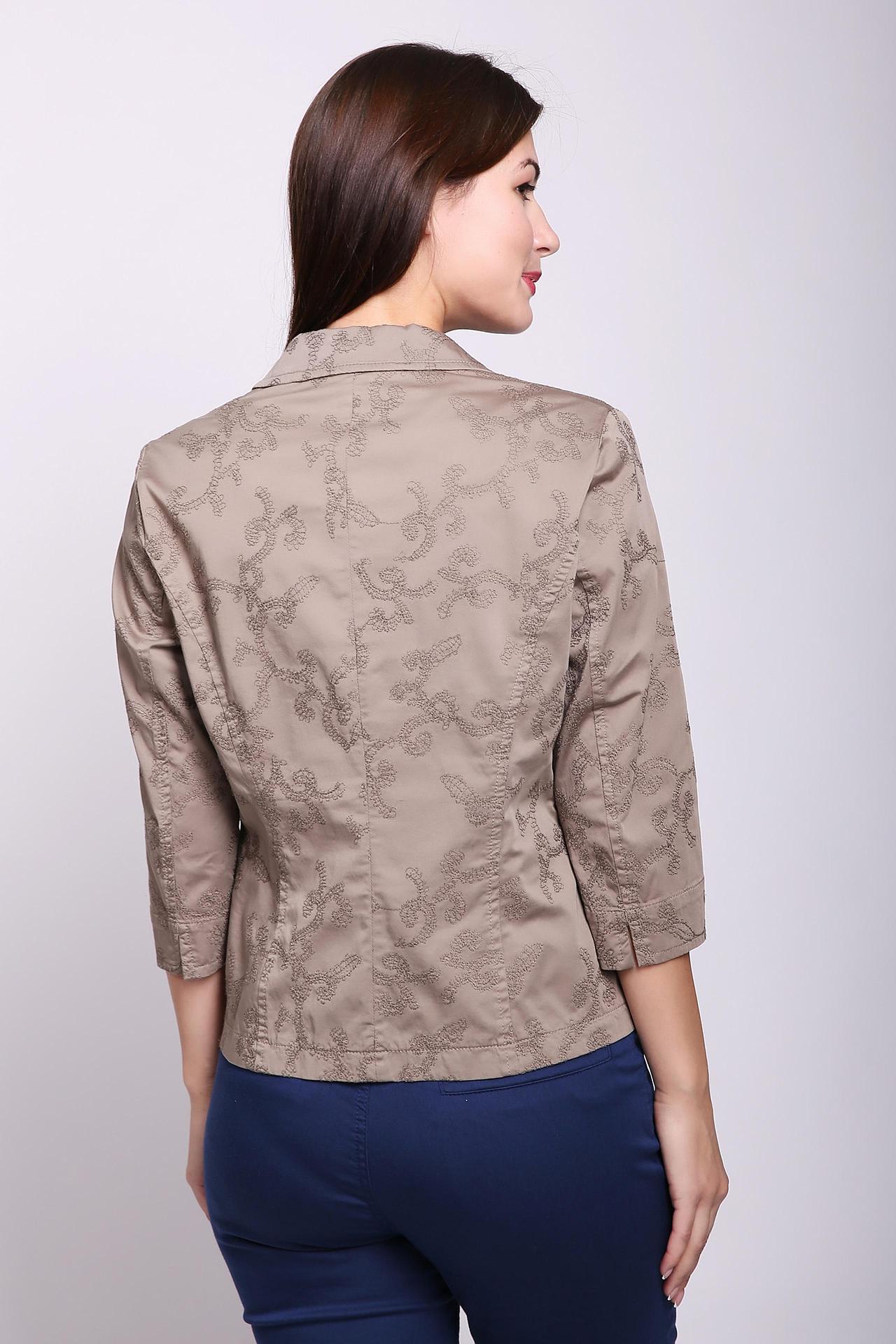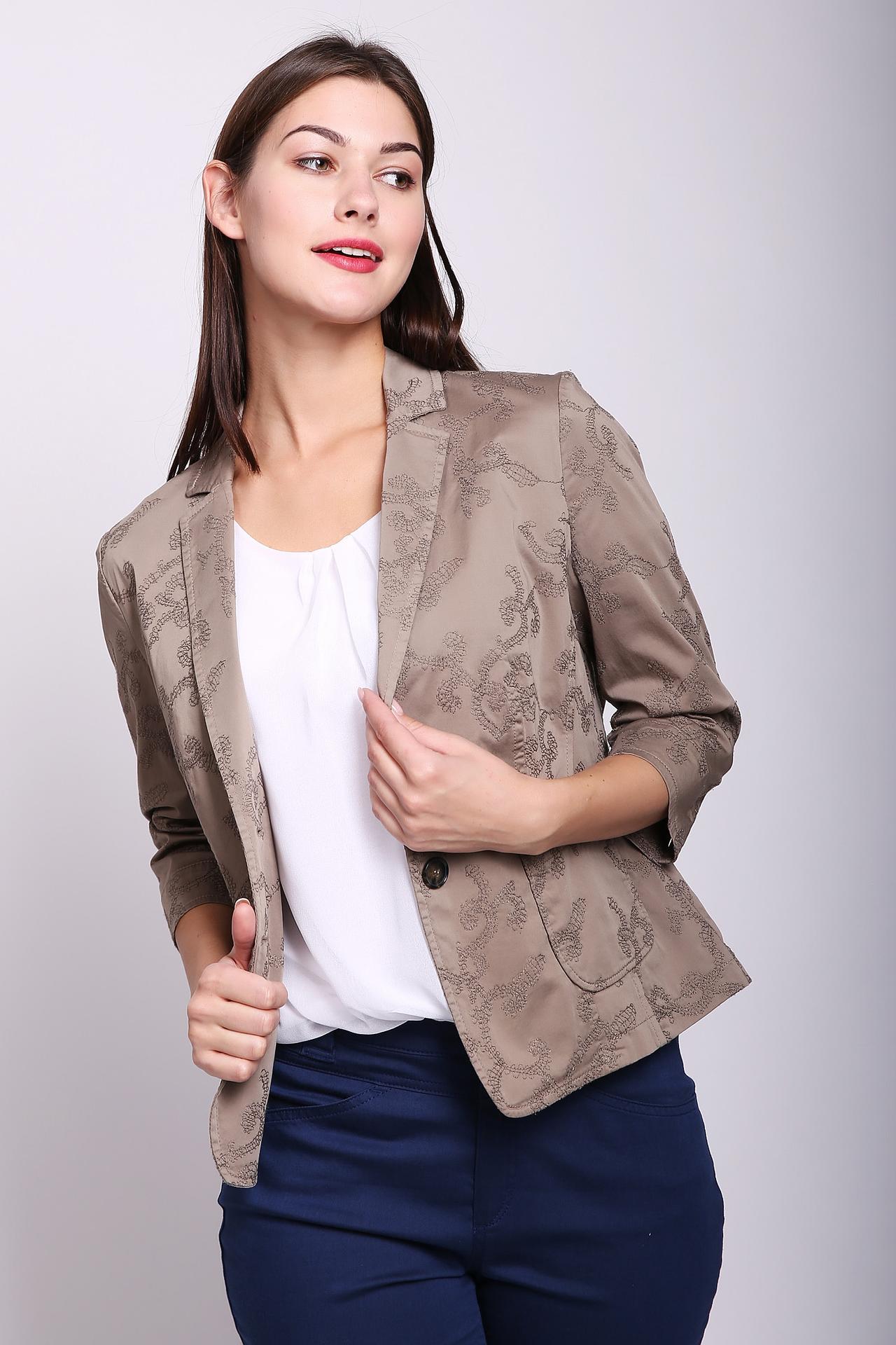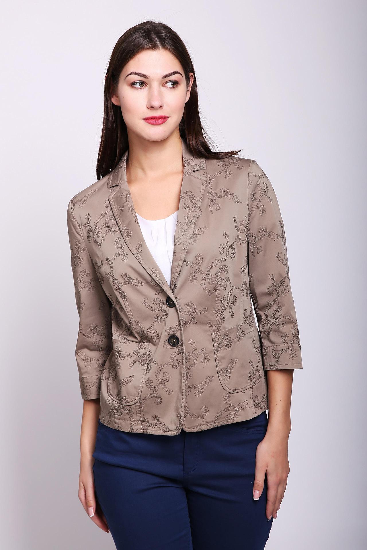 Жакет женский бежевого цвета фирмы Gerry Weber. Модель выполнена приталенным фасоном. Изделие дополнено откладным воротом, застежка на пуговицы, накладные карманы, втачными рукавами 3/4 длинны с манжетами. Приталенный жакет подчеркивает вашу фигуру, благодаря среднему шву и рельефам, выходившие из проймы. Ткань имеет принт. Жакет укороченной длинны. Состав ткани состоит из 3% эластана и 97% хлопка. Гармонировать можно с различными брюками и юбками.