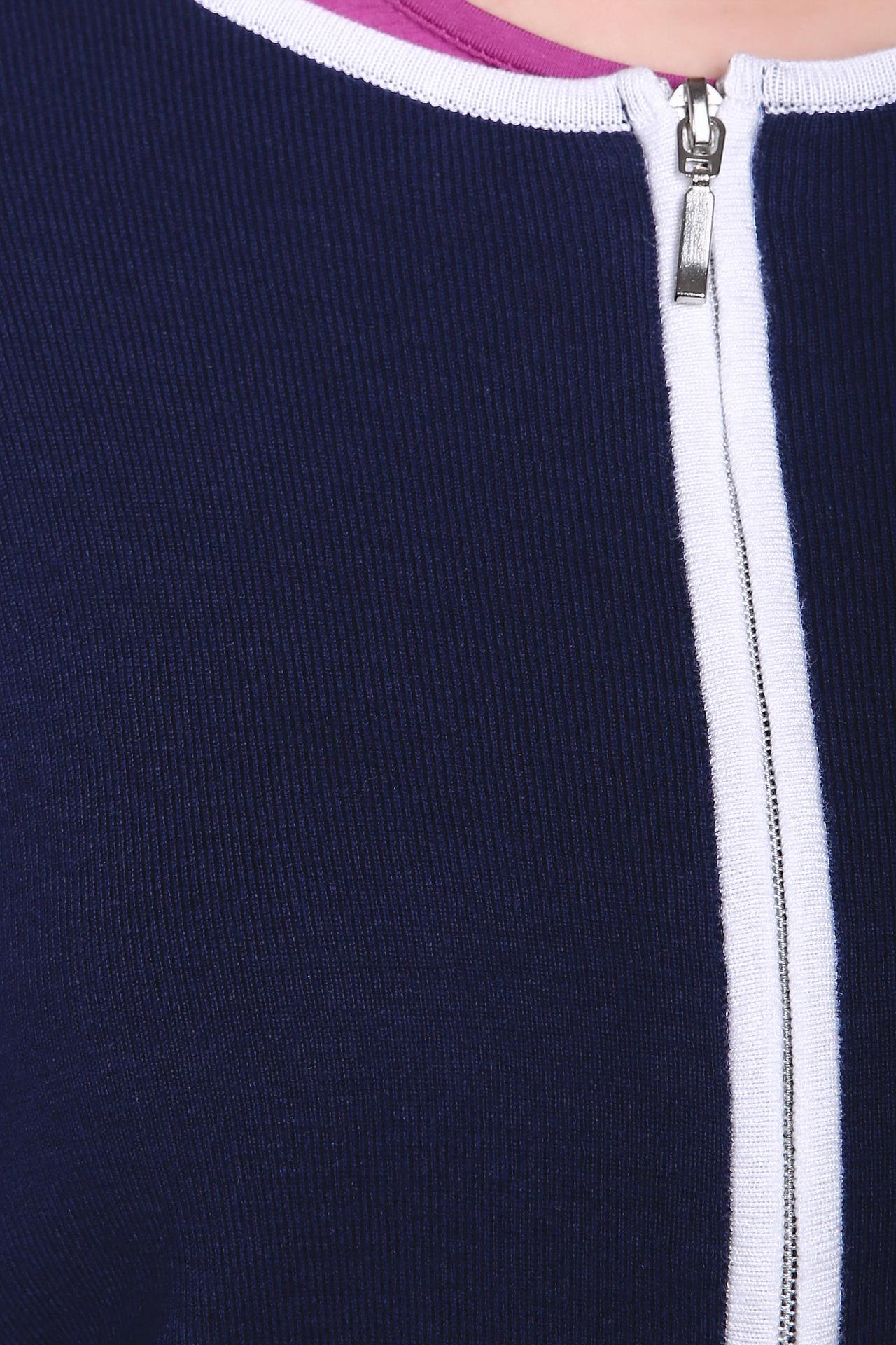 Элегантный жакет от Gerry Weber - идеальное дополнение к вашему повседневному гардеробу. Стильный темно-синий цвет в сочетании с контрастной белой отделкой вдоль молнии и по низу изделия придает жакету особый шарм. Этот жакет прекрасно подойдет как для создания расслабленных образов с джинсами, так и для более утонченных ансамблей.