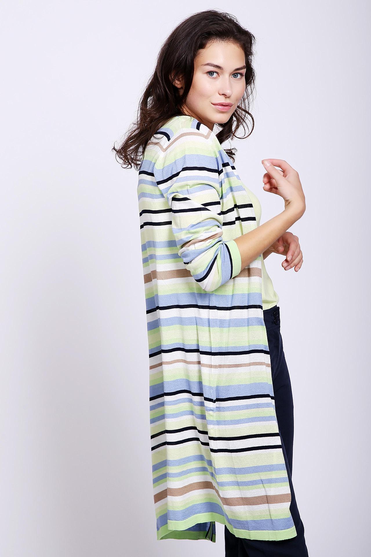 Жакет удлинённого фасона фирмы Gerry Weber. Модель выполнена прямым покроем. Изделие дополнено округлым воротом с запахом, втачными, длинными рукавами. Ткань трикотажная выполнена разноцветными полосами. Такая модель всегда поможет обновить ваш стиль.