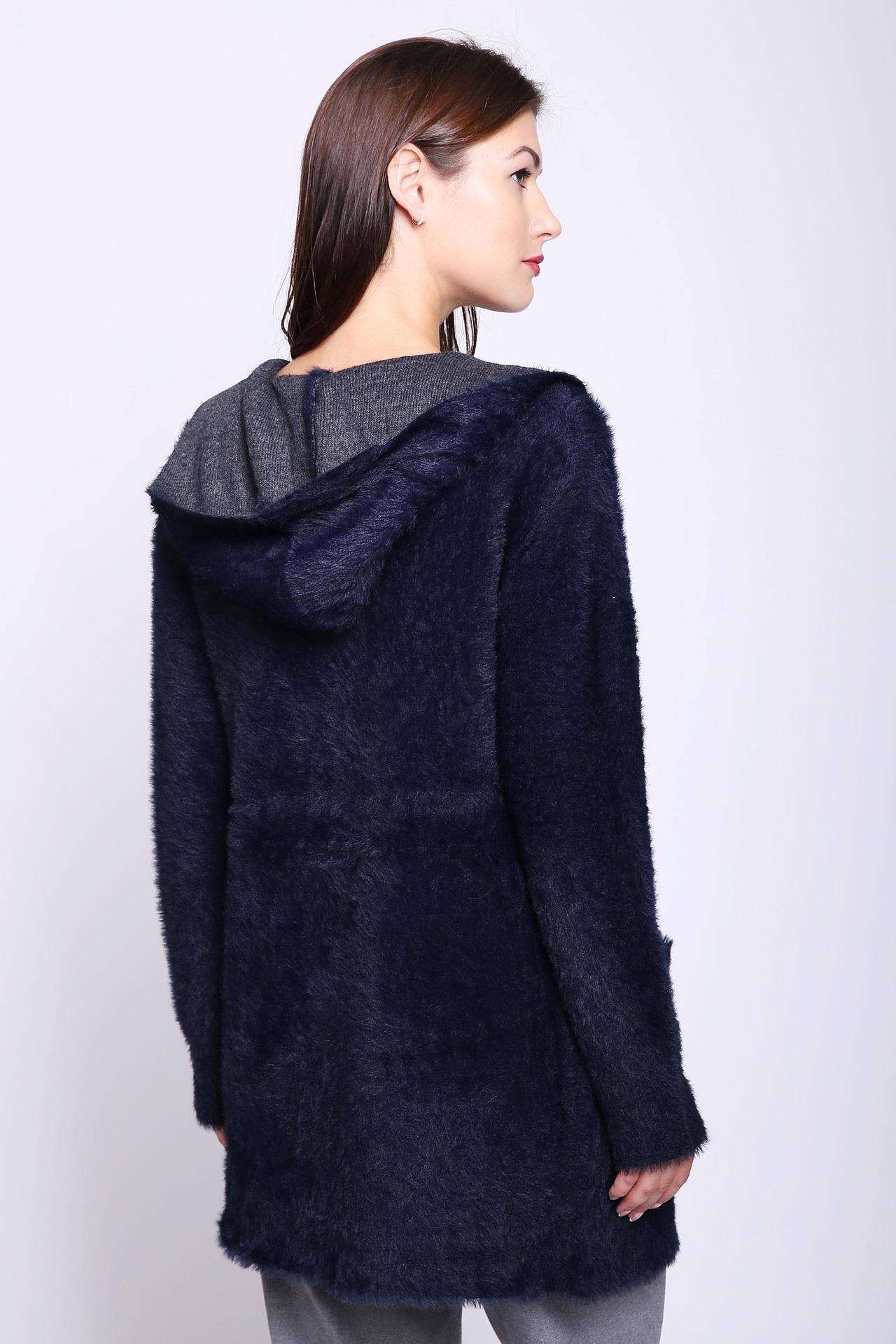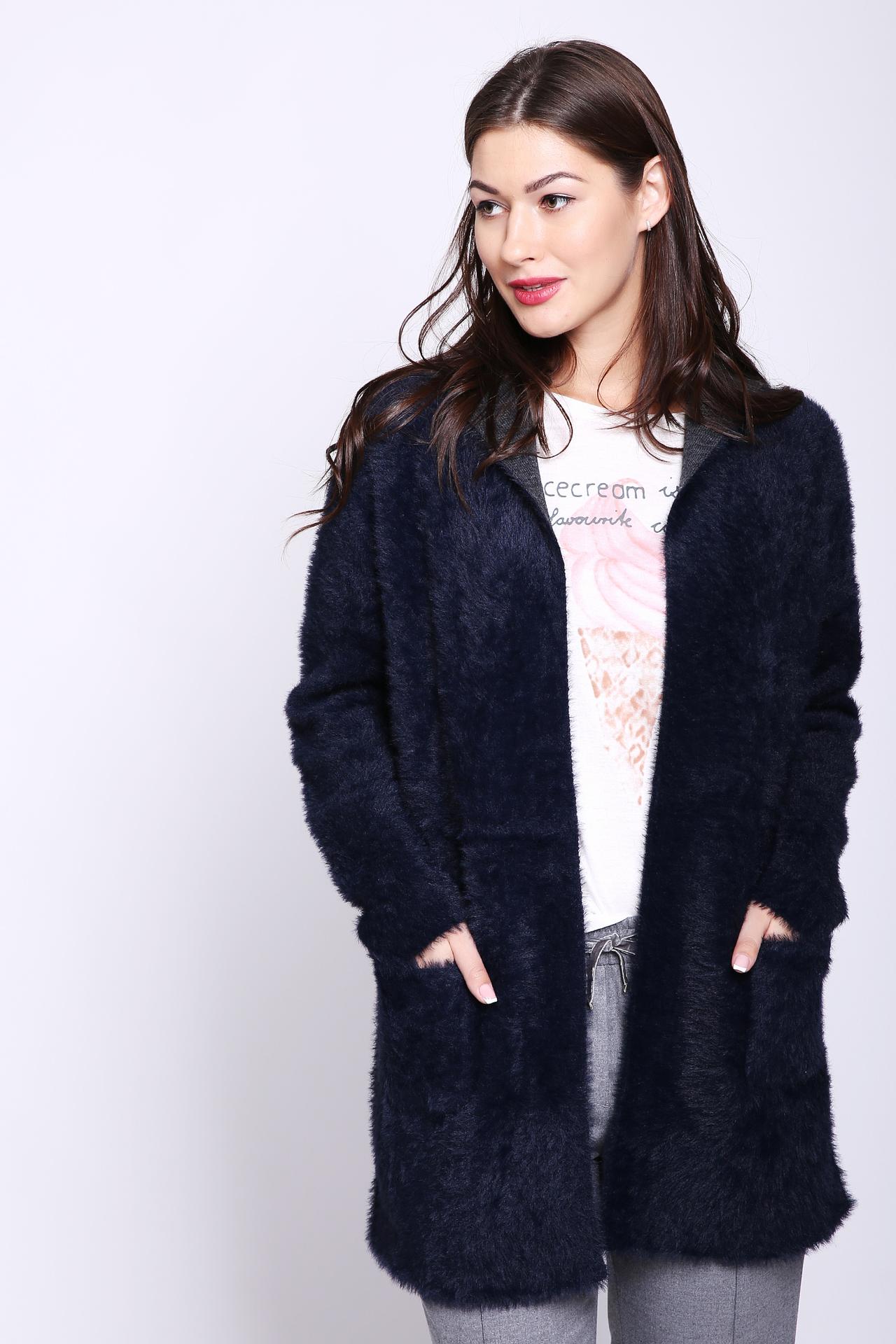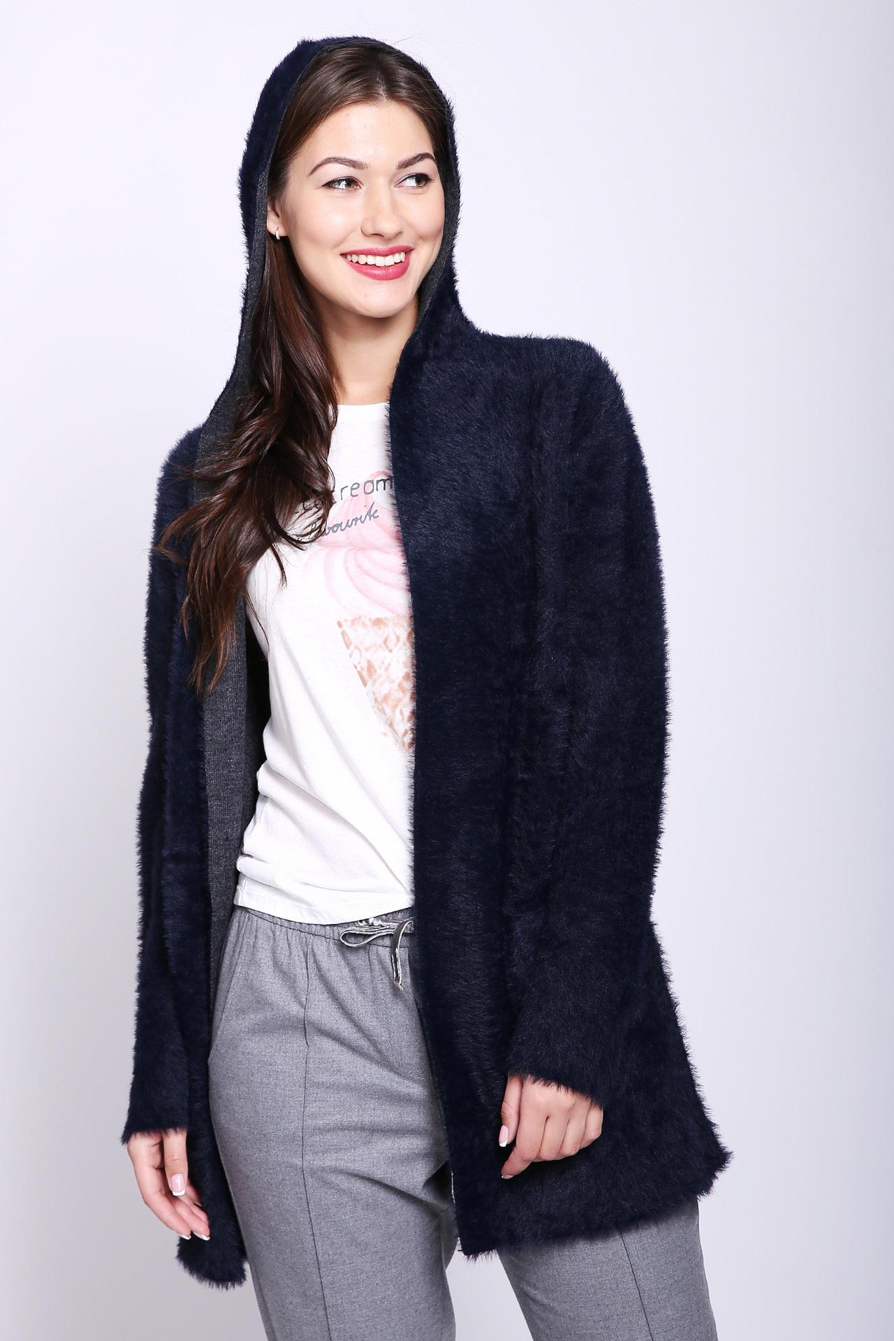 Жакет женский синего цвета фирмы Betty Barclay. Модель выполнена прямым покроем. Изделие дополнено округлым воротом с капюшоном, без застежки, длинными рукавами, прорезными карманами. Жакет удлиненного фасона. Гармонировать можно с различными брюками.