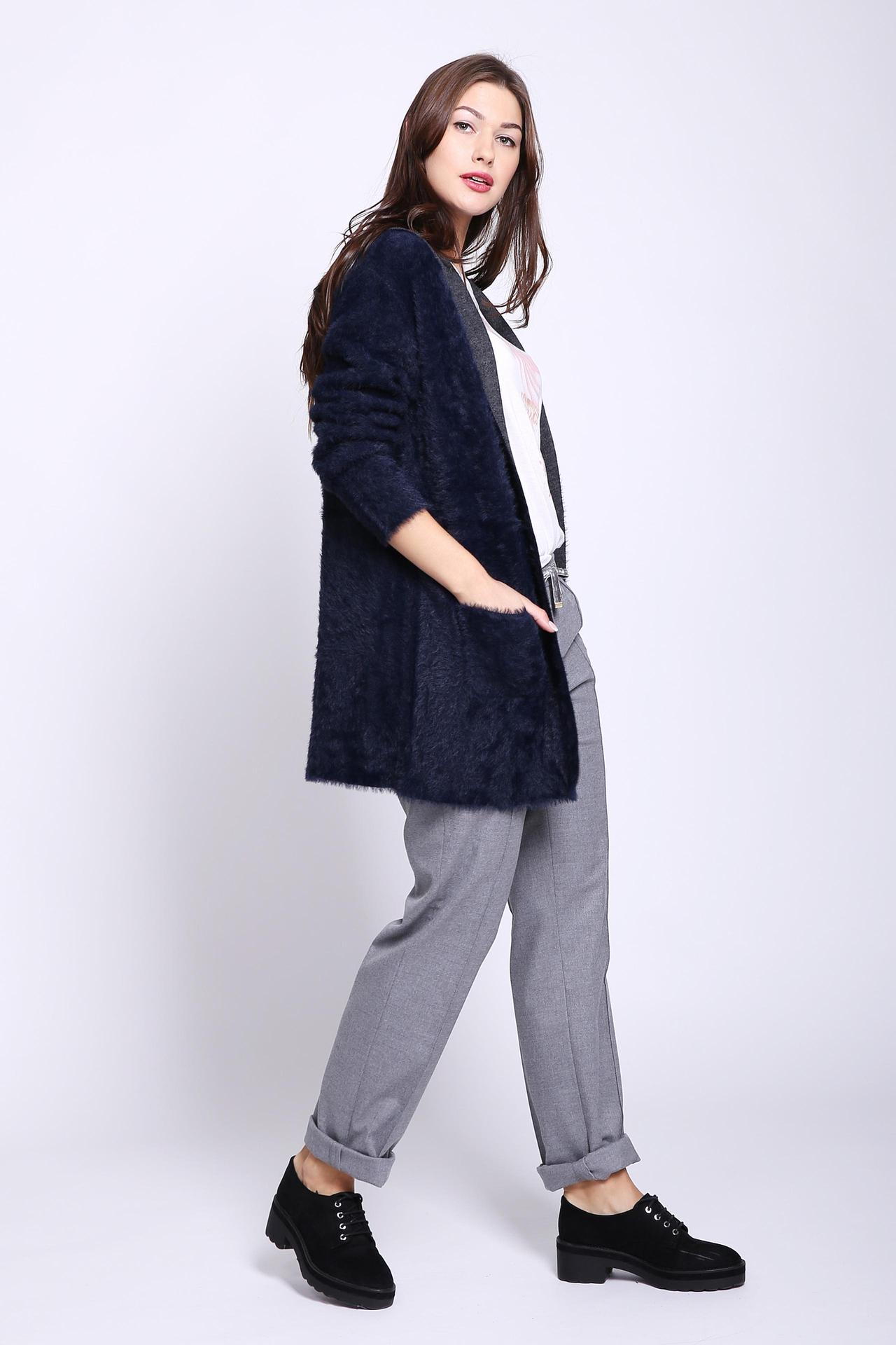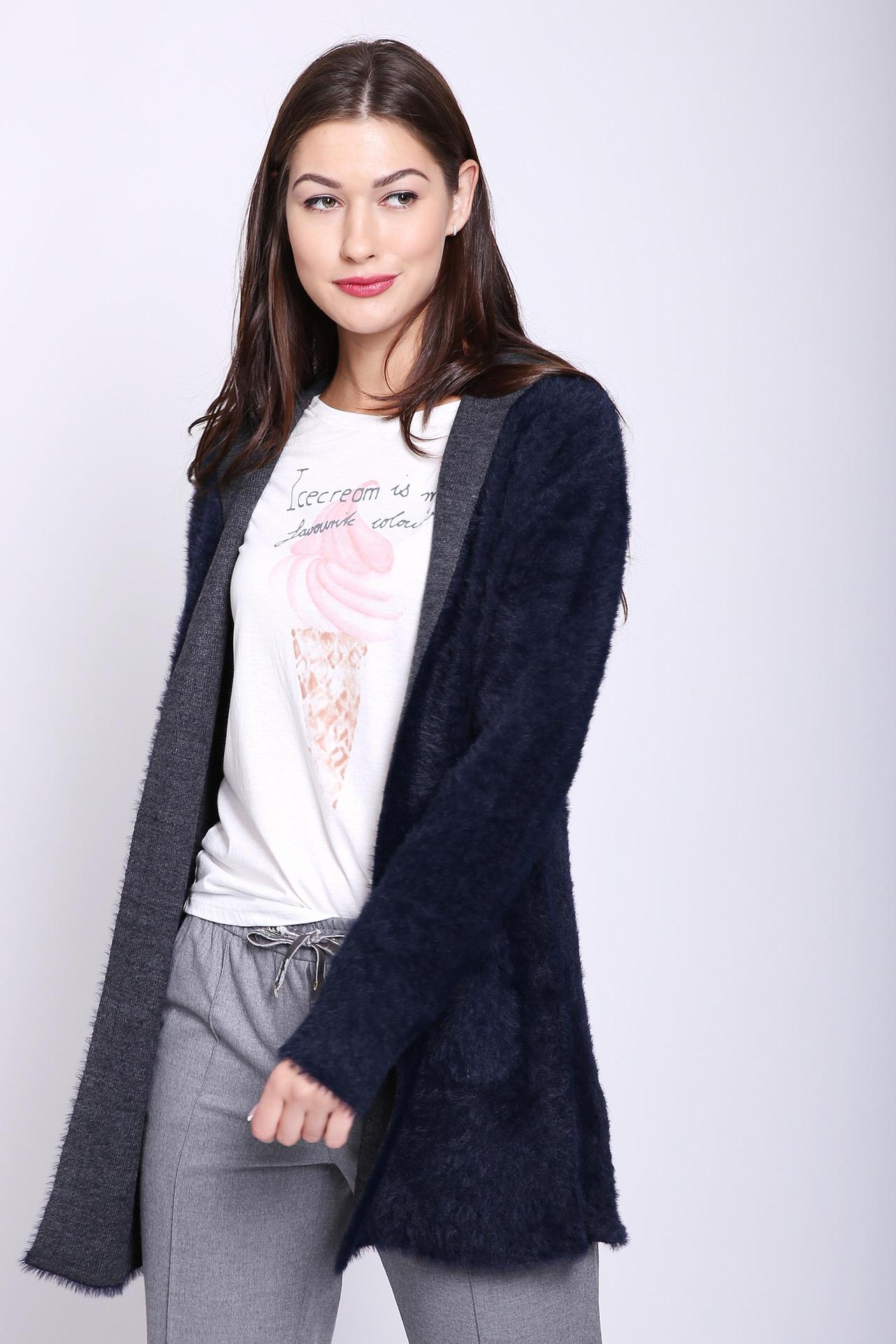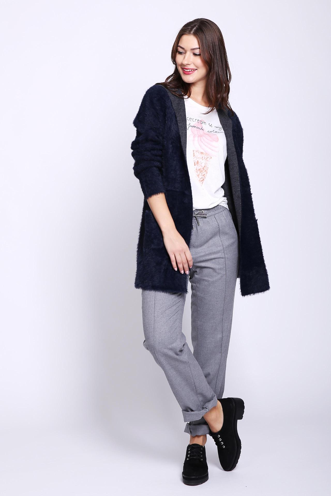 Жакет женский синего цвета фирмы Betty Barclay. Модель выполнена прямым покроем. Изделие дополнено округлым воротом с капюшоном, без застежки, длинными рукавами, прорезными карманами. Жакет удлиненного фасона. Гармонировать можно с различными брюками.