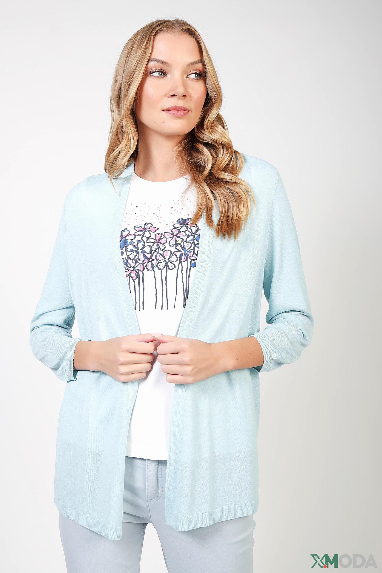 Жакет женский голубого цвета от бренда Gerry Weber. Модель выполнена прямым фасоном. Изделие дополнено V - образным вырезом с запахом, втачными рукавами 3/4 длины, боковыми разрезами. Состав: 89% вискоза, 11% полиамид. Гармонировать можно с различными деталями вашего гардероба.