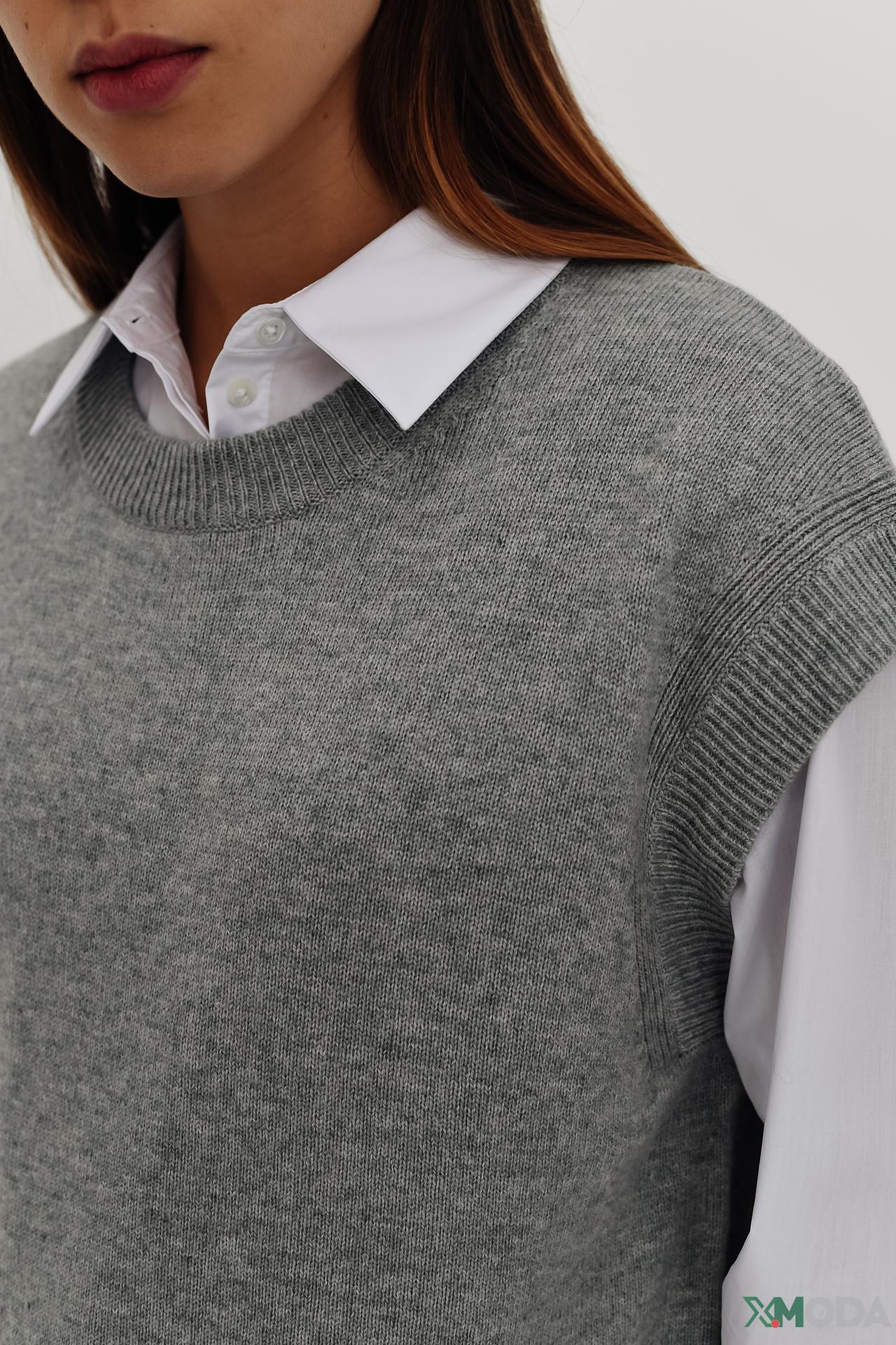 Жилет выполнен из высококачественной смесовой пряжи, включающей шерсть, полиамид и модал. Эта комбинация обеспечивает отличные теплоизоляционные свойства, износостойкость и мягкость при прикосновении. Универсальный серый цвет делает жилет легким в сочетании с другими предметами одежды.