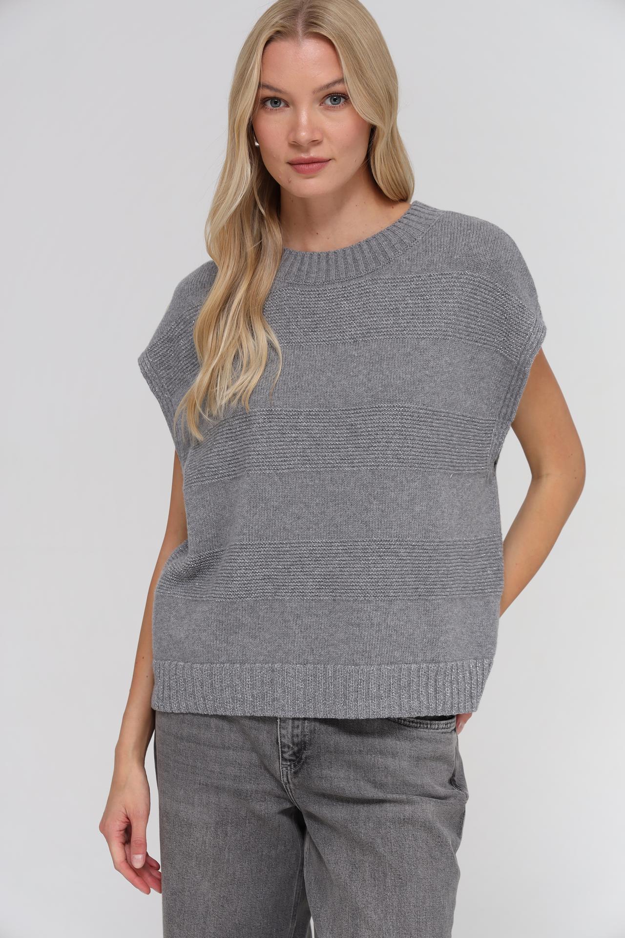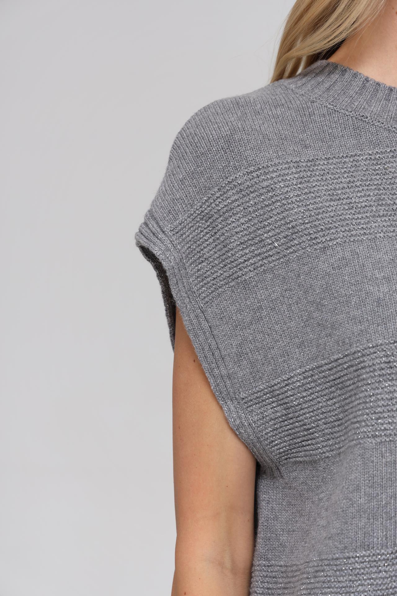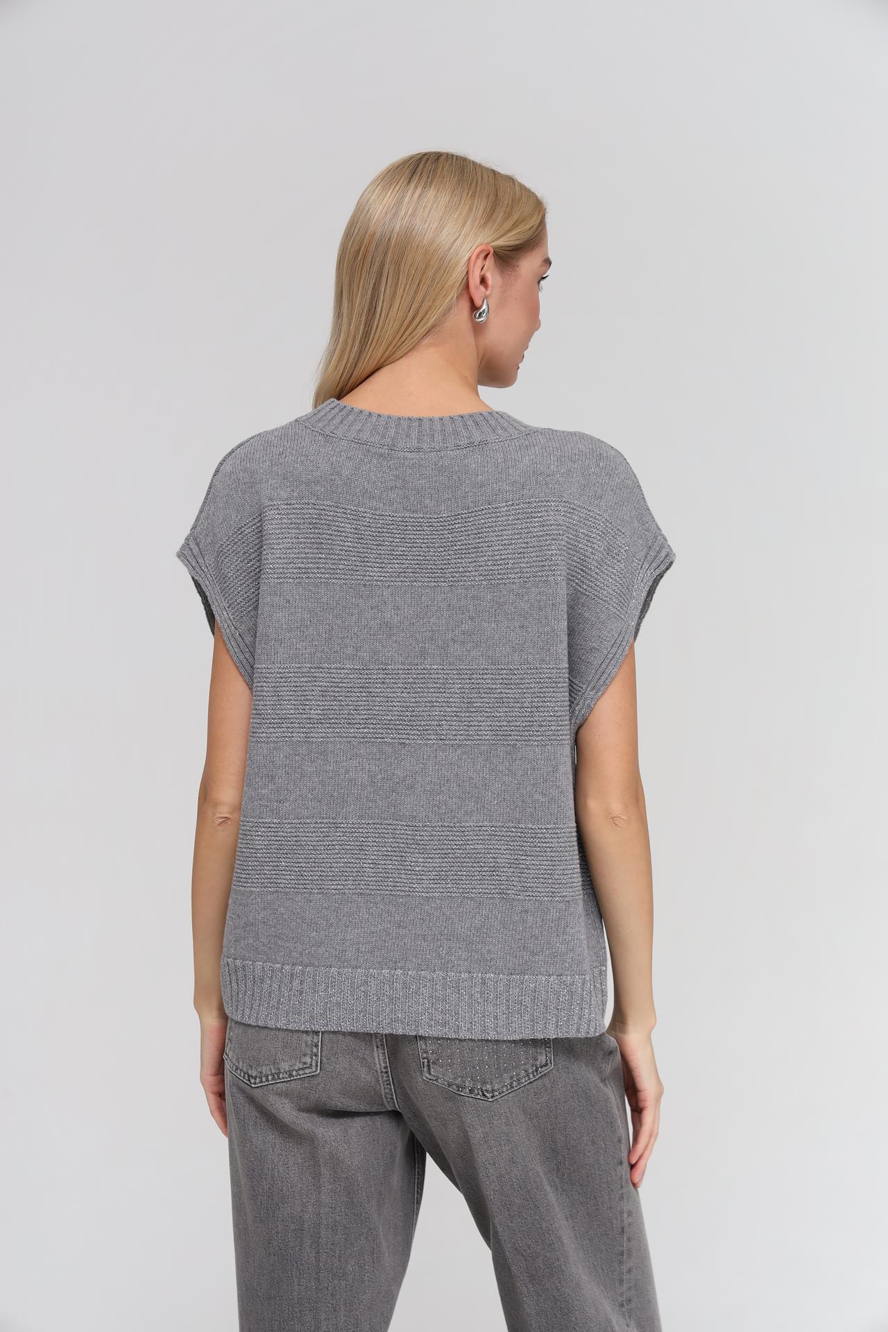 Декоративные горизонтальные полосы с деликатным блеском придают изделию изысканность и утонченность. Жилет отлично подойдет как для создания многослойных образов с рубашками и блузками, так и для самостоятельного ношения в более теплую погоду. Это стильная и практичная вещь, которая подчеркнет ваш безупречный вкус.