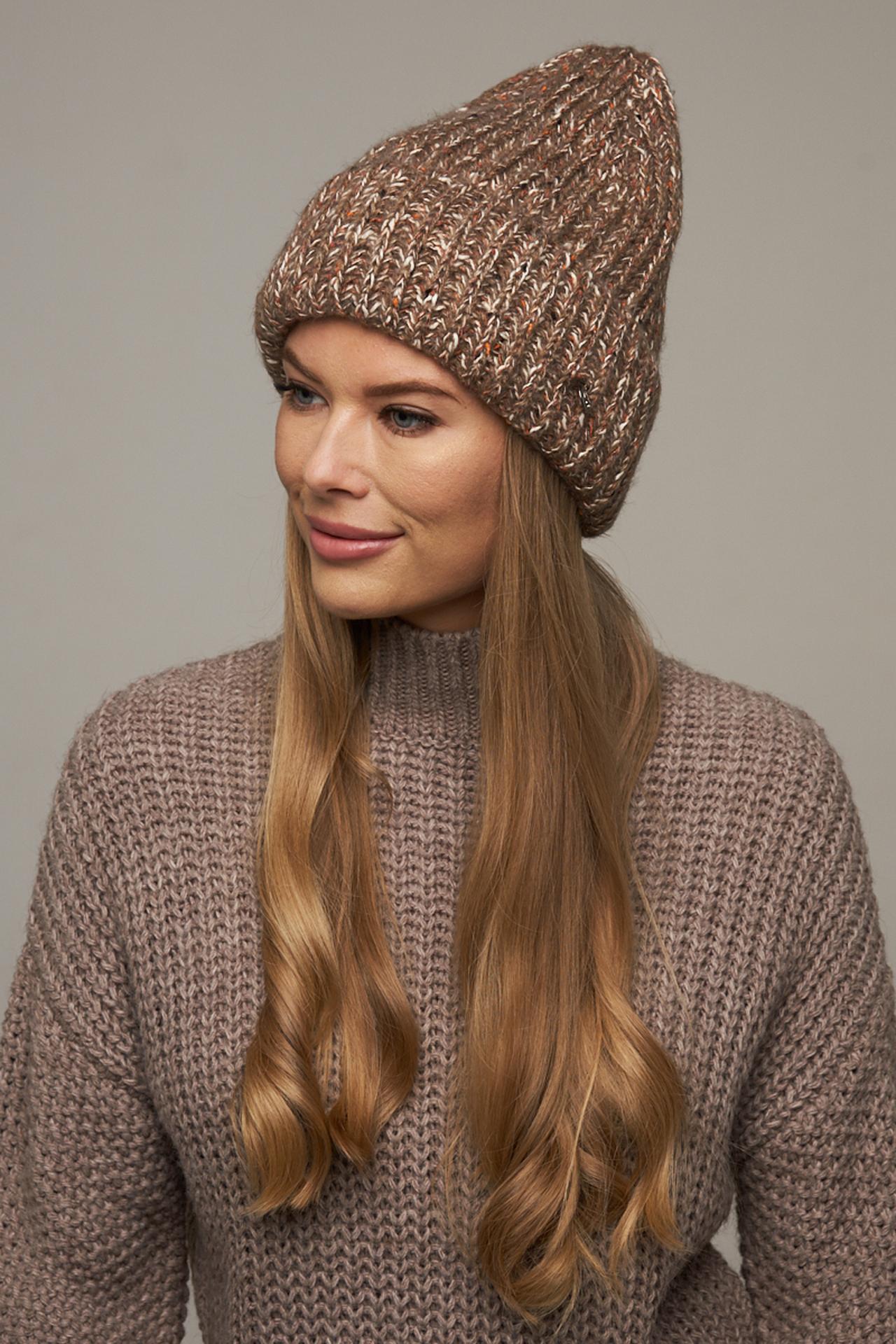 Шапка вязаная VAY коричневая с меланжевым эффектом