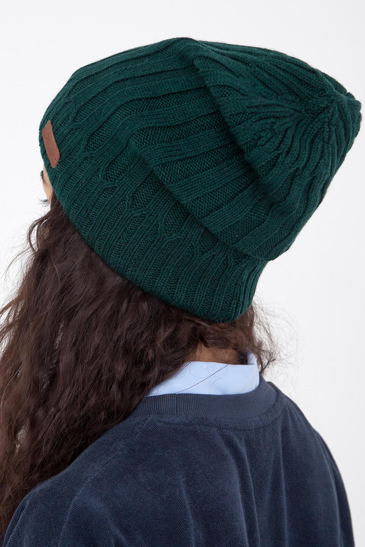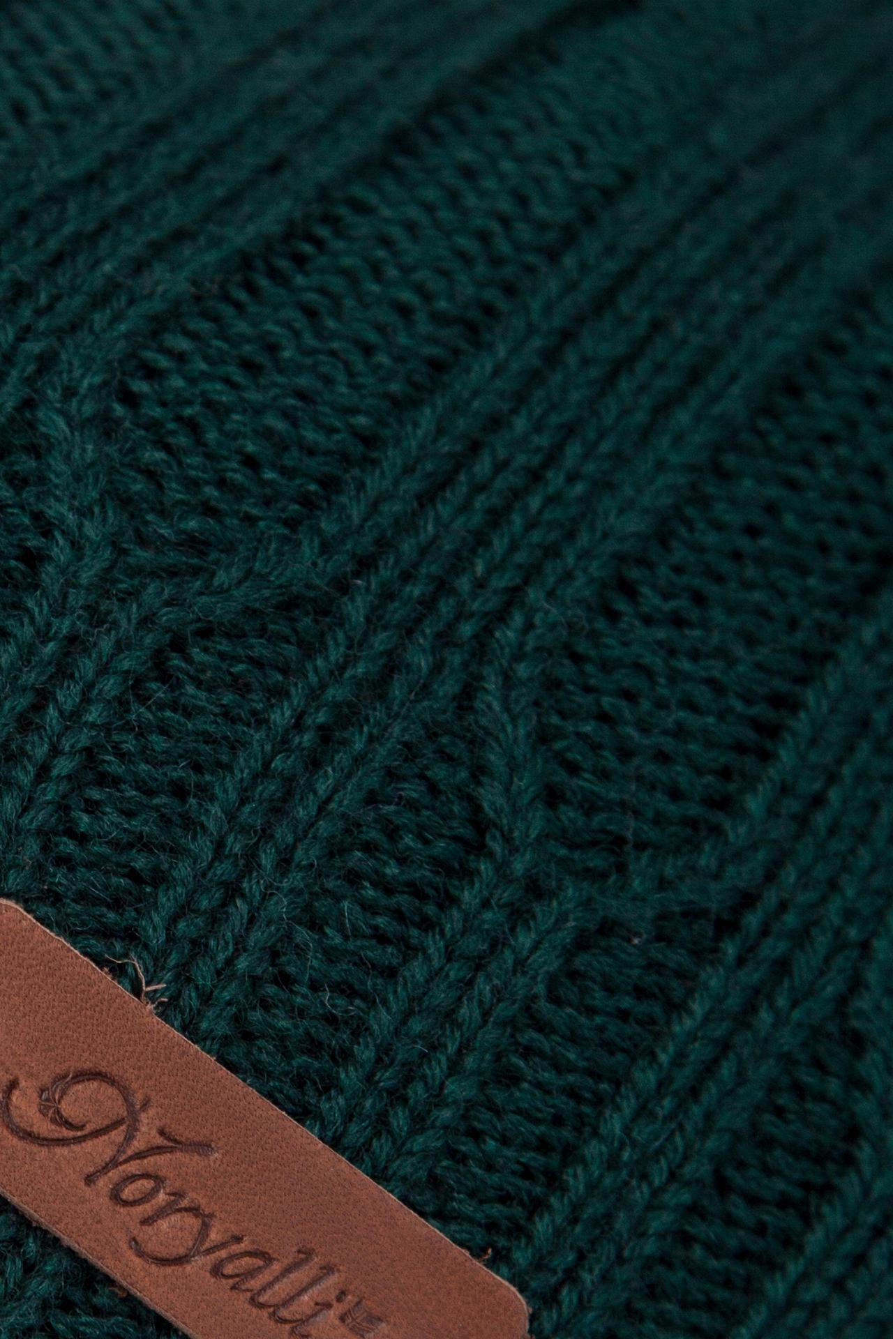 Шапка двойная мягкой формы с широкой резинкой в основании. Выполнена из полушерстяной пряжи. Украшена фирменным пришивным логотипом Noryalli из натуральной кожи.