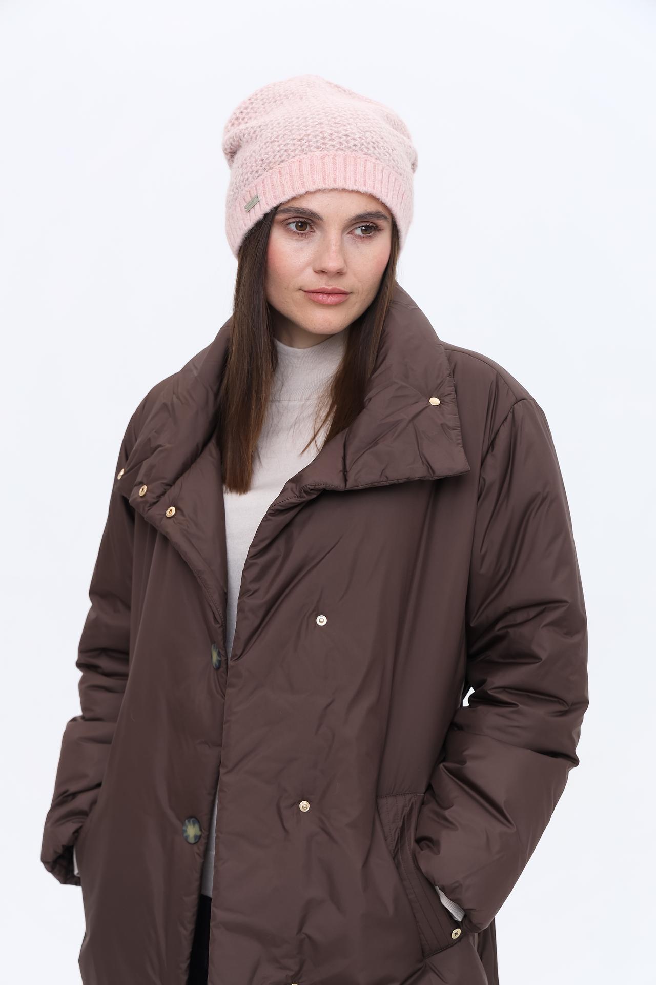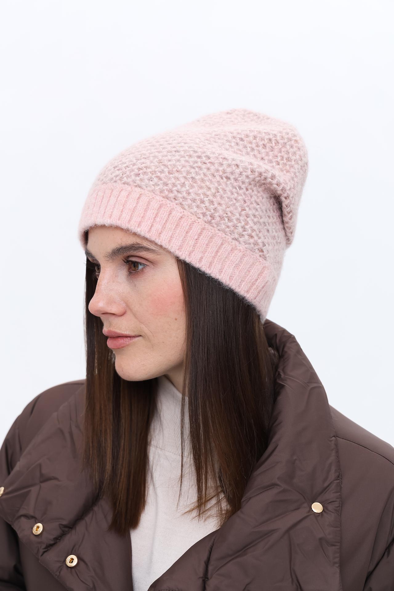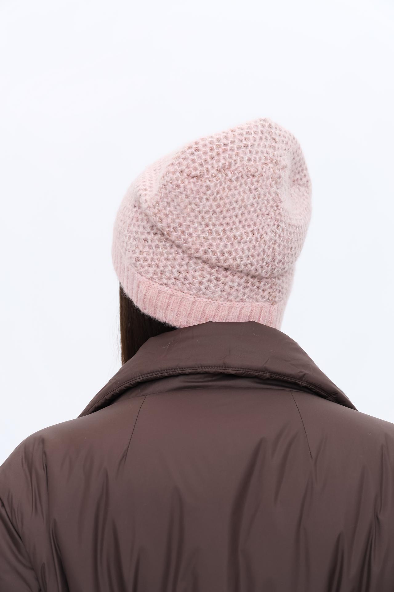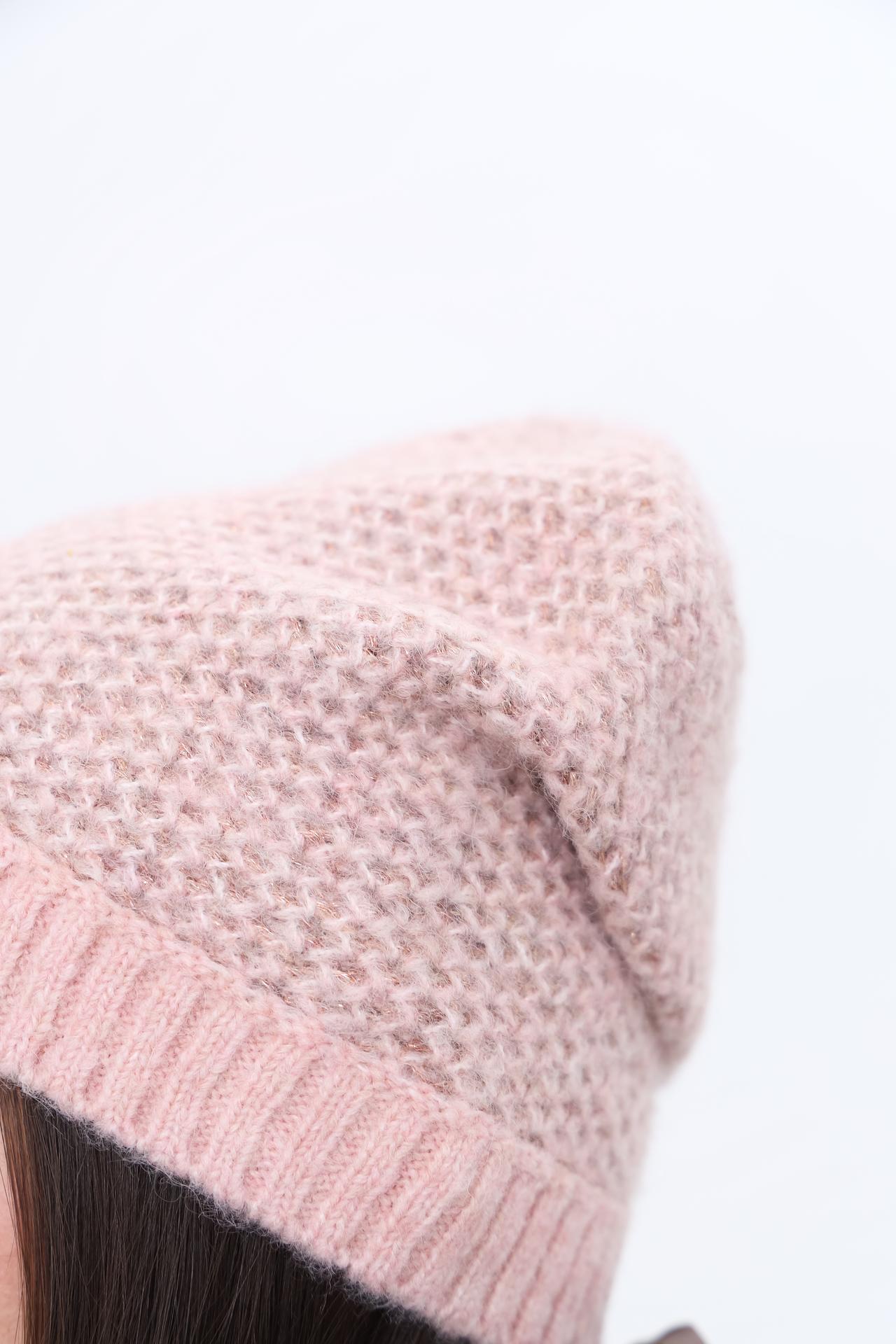 - Универсальный дизайн. Нежный розовый цвет и классическая вязка позволяют сочетать шапку с различными стилями одежды.
