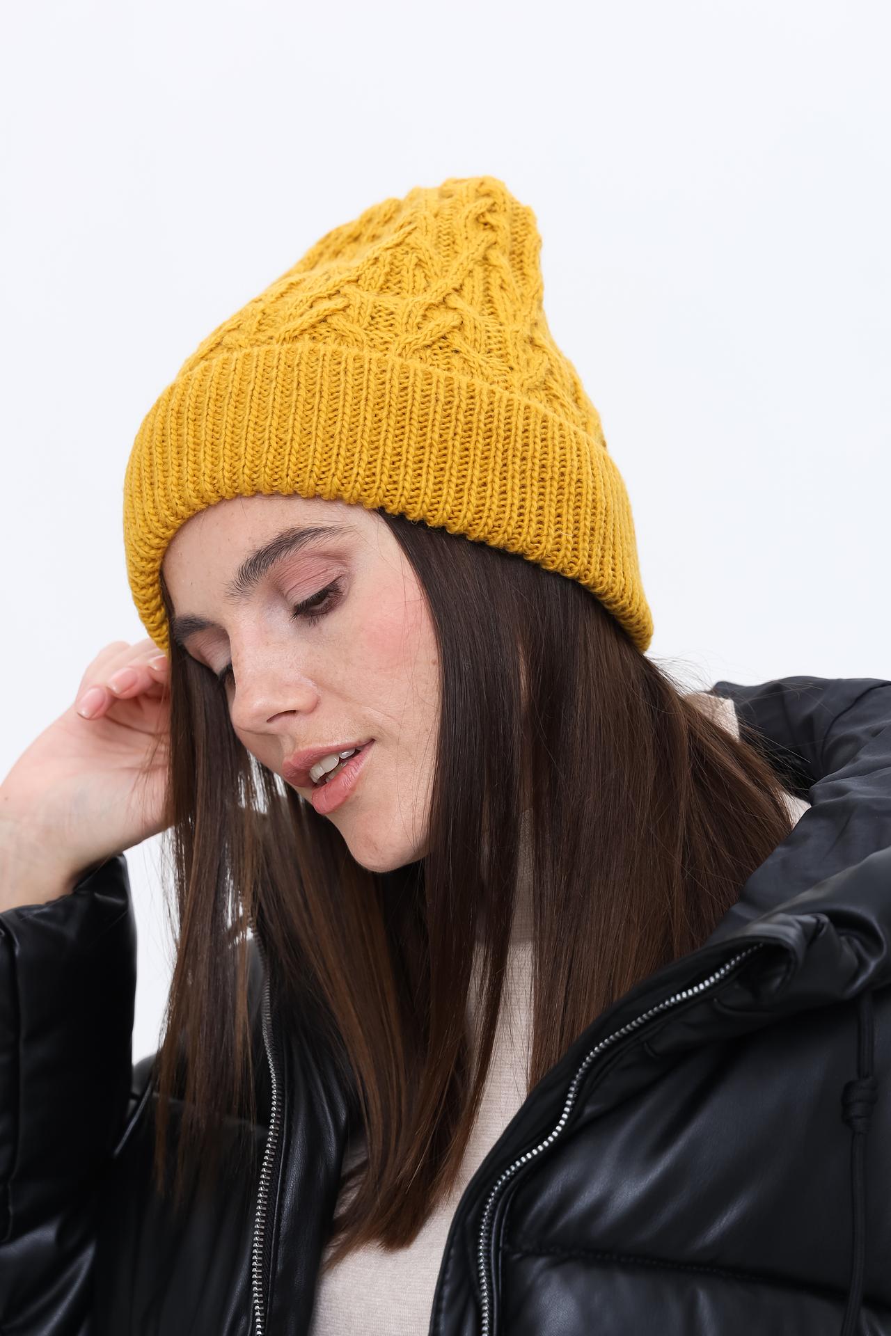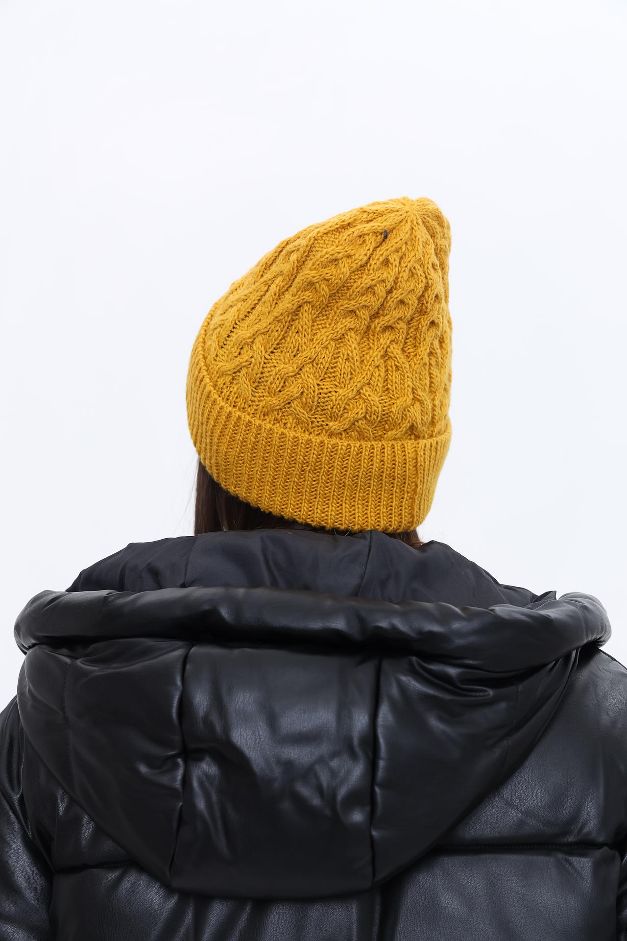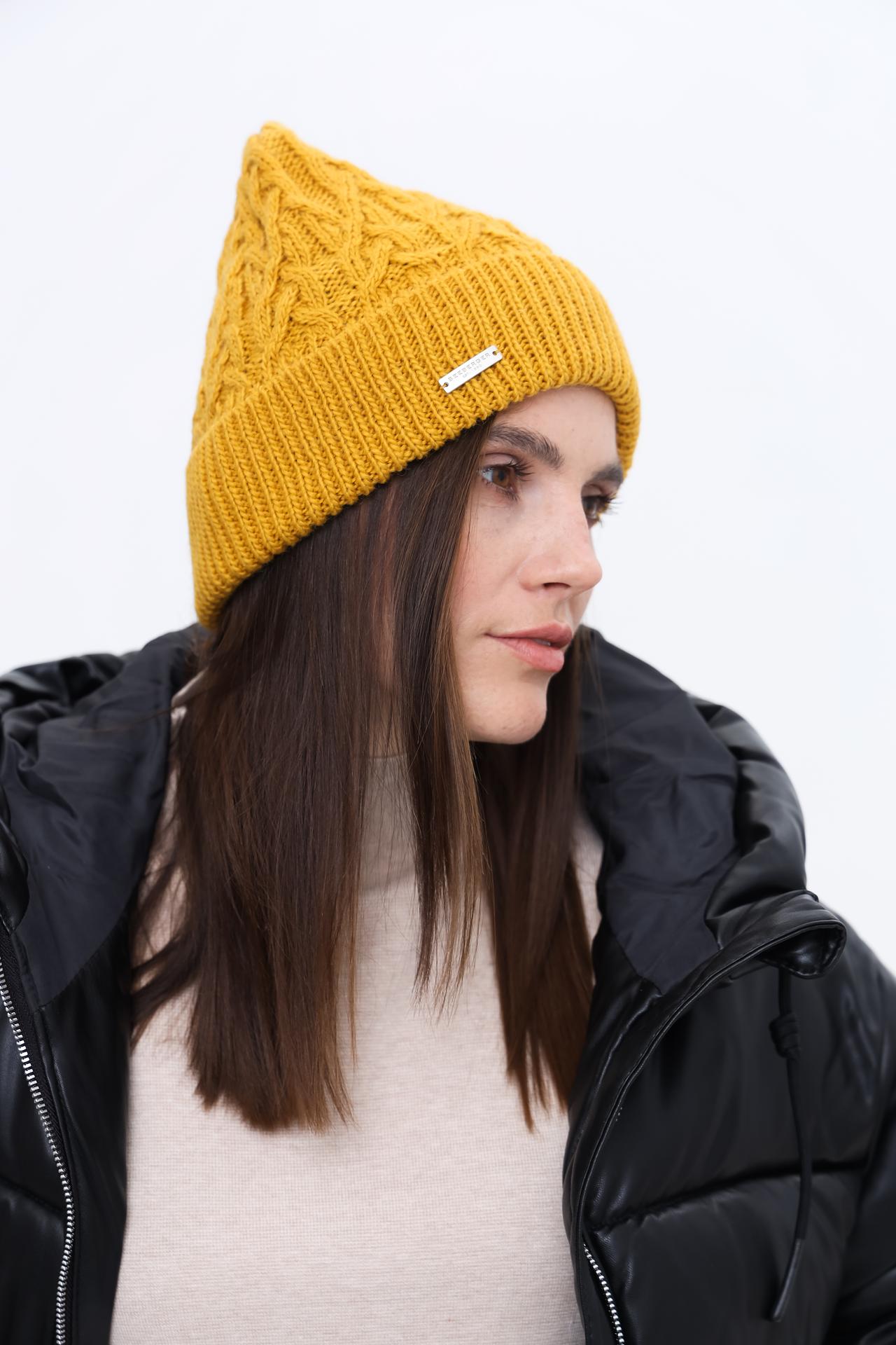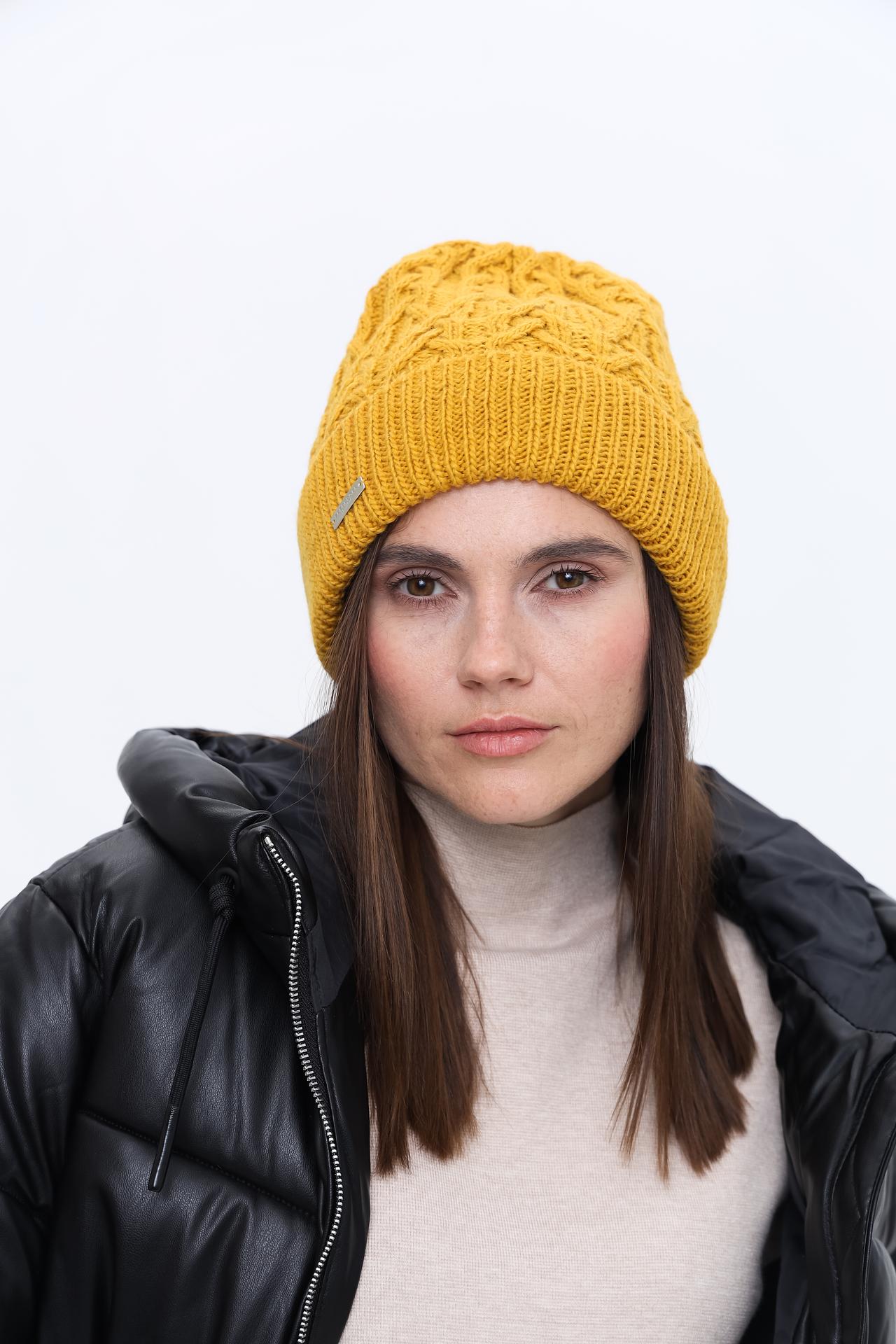 Шапка Seeberger жёлтая вязаная с косами и эмблемой