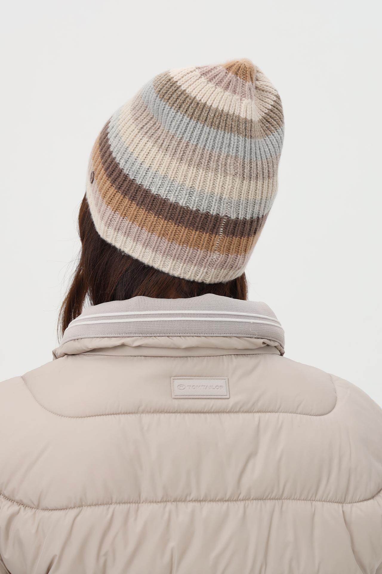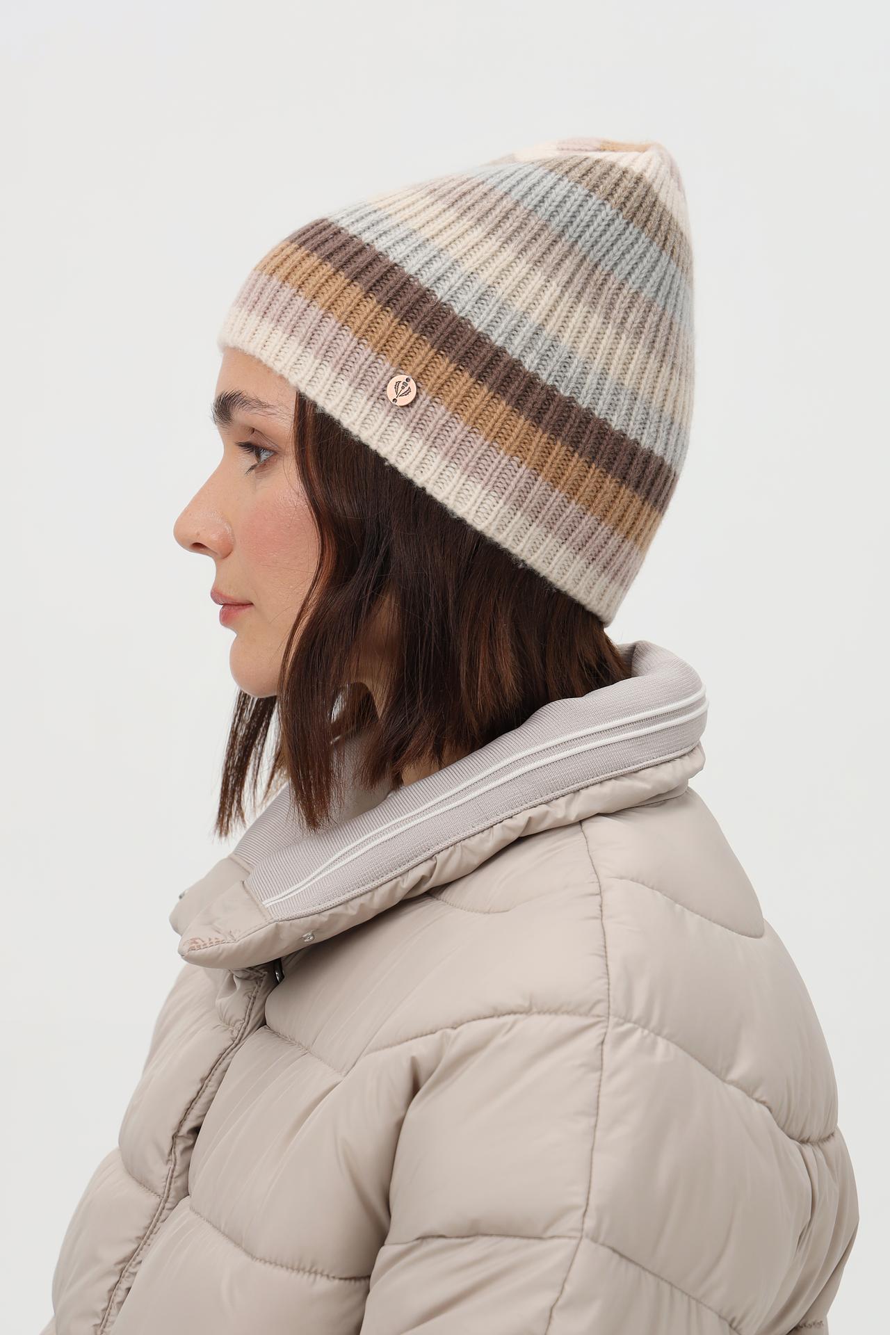 - Дизайн: Современный и лаконичный. Шапка украшена горизонтальными полосами в спокойных природных оттенках и дополнена элегантным металлическим логотипом бренда.