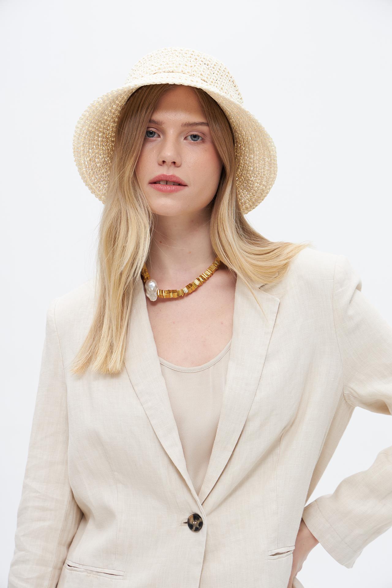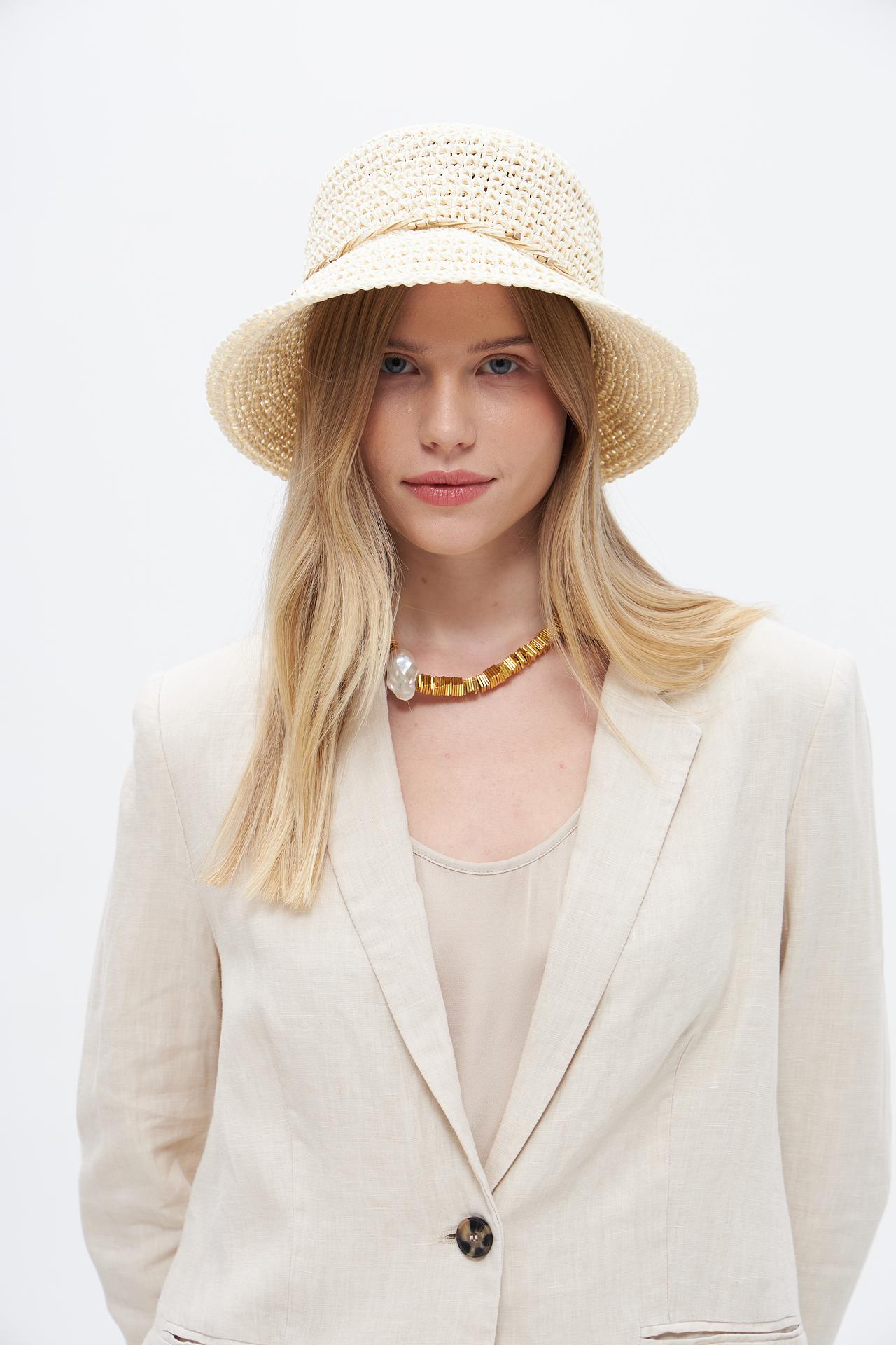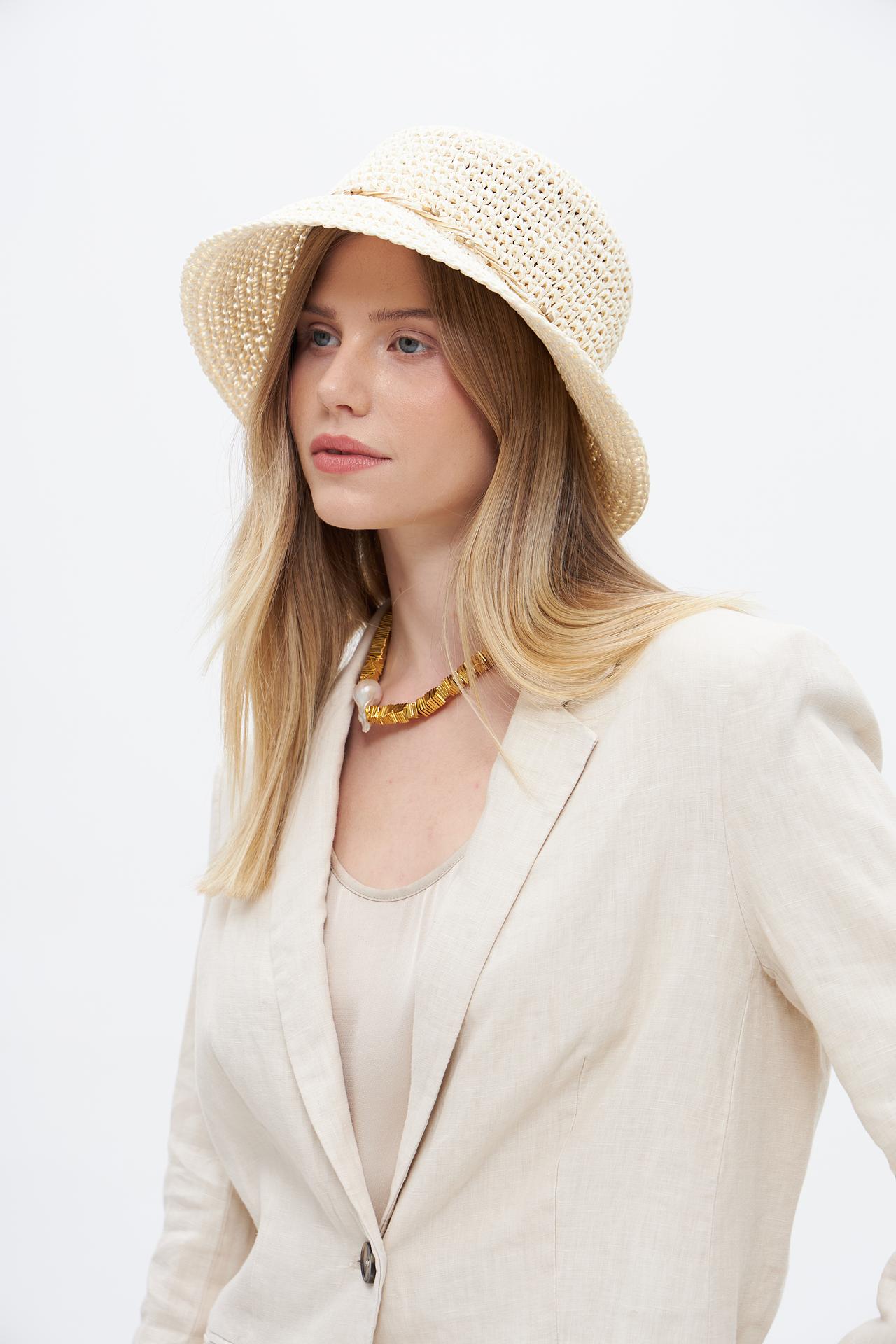 - Универсальный дизайн: Классическая форма и нейтральный бежевый цвет делают эту шляпу универсальным дополнением к летнему гардеробу. Тонкая декоративная лента вокруг тульи добавляет изящный акцент.